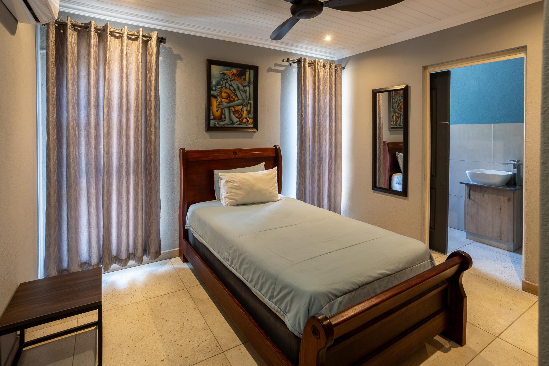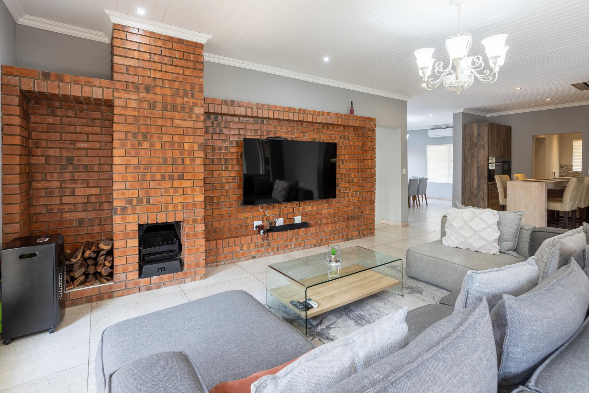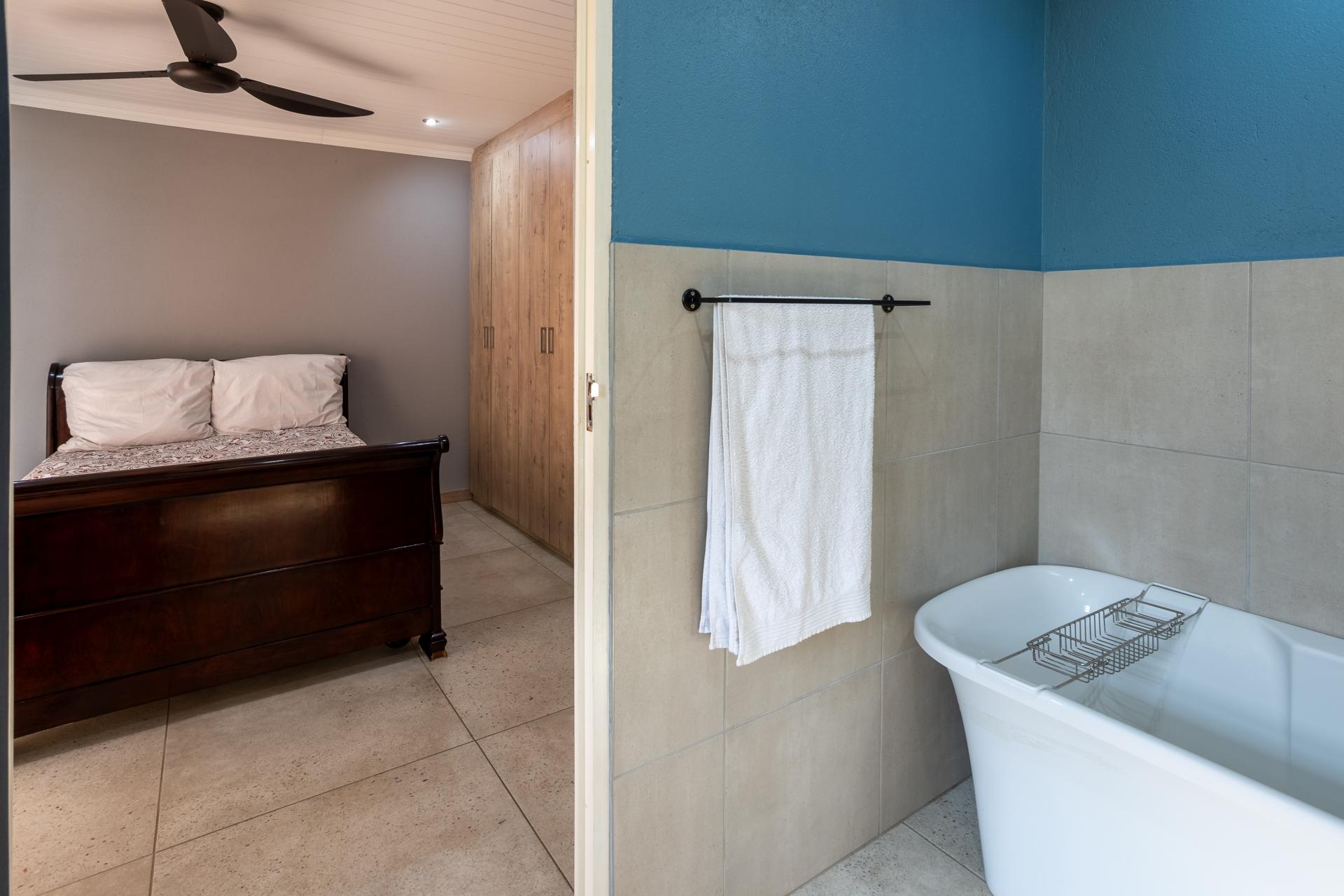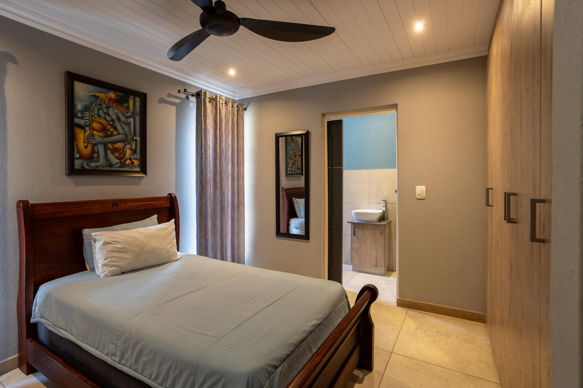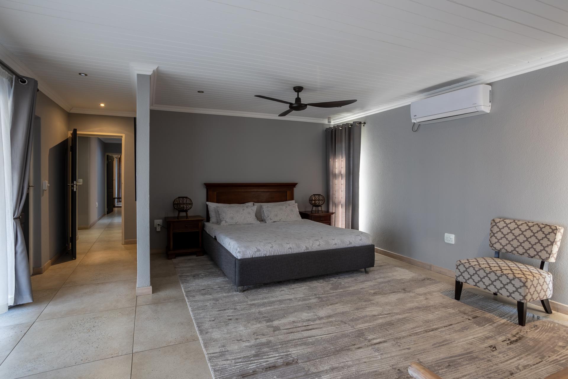 Located in one of the Lowveld’s most sought-after lifestyle estates offers luxury, comfort,sophistication, and safety. Each bedroom is en-suite, with the main featuring a dressing room and full bathroom with double basins. The open-plan living, dining, and kitchen areas flow seamlessly to a covered balcony with breathtaking views, while a central swimming pool is accessible from both the main bedroom and living area. Additional features include a study, cinema, guest ablution, staff quarters, storeroom, scullery, pantry, and garage for four vehicles. With solar, water tank, and premium finishes, this beautifully planned home epitomizes modern estate living.