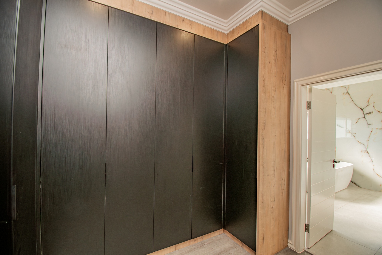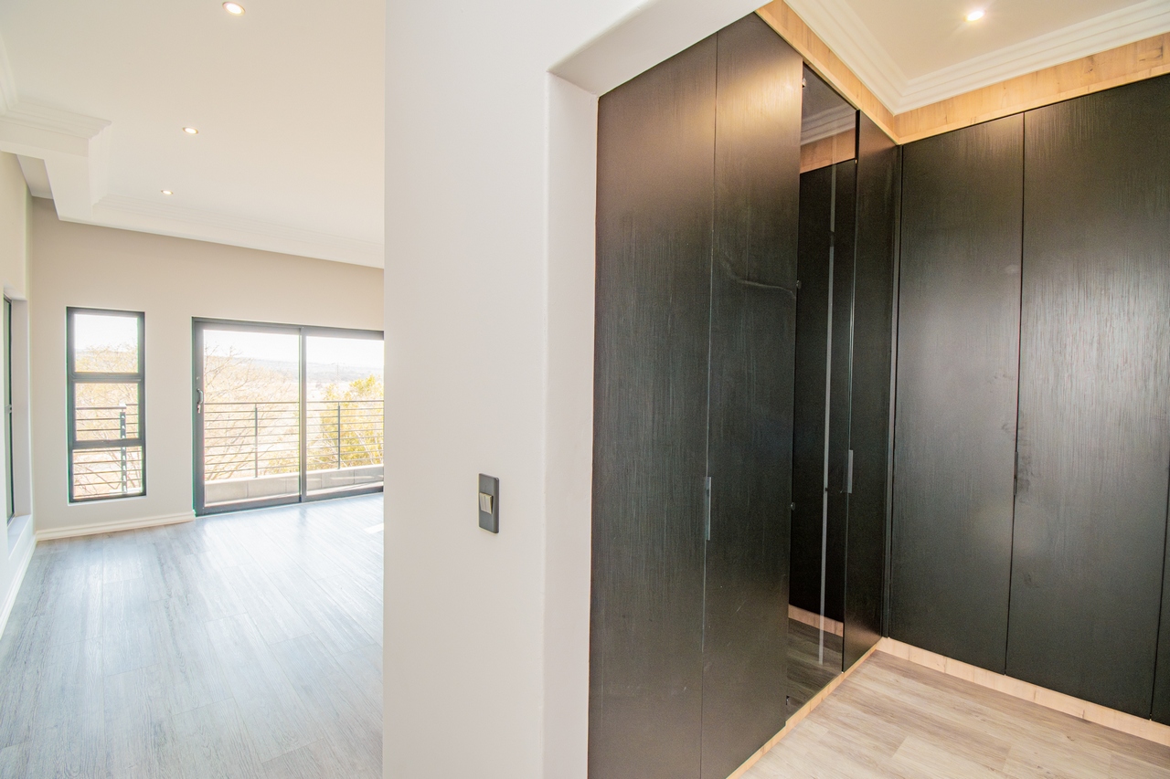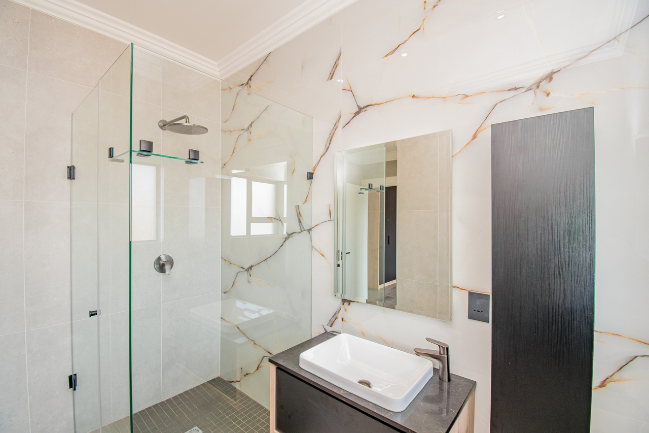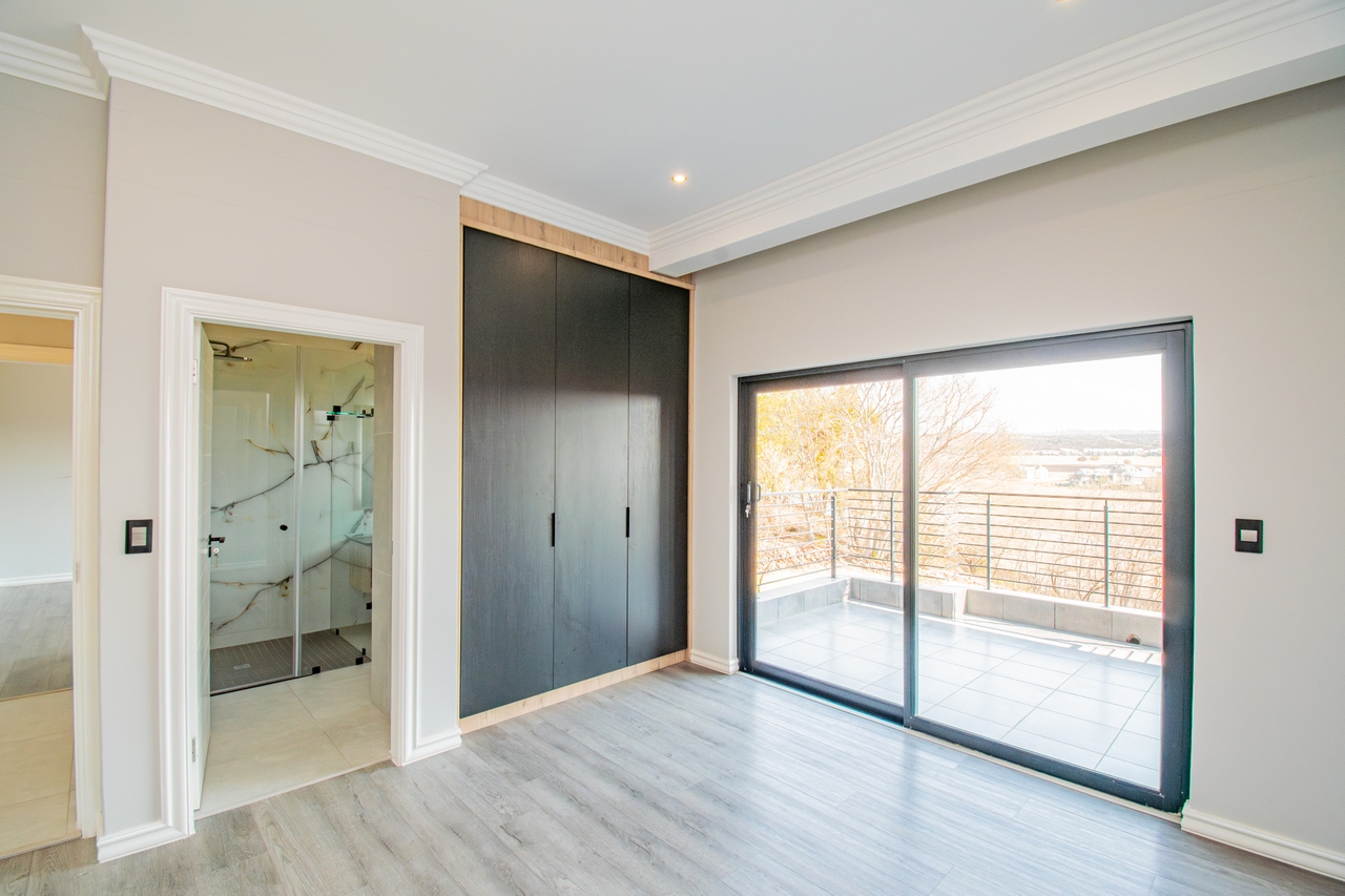 This home features four generously sized bedrooms, each with its own en-suite bathroom, providing a perfect blend of sophistication and comfort. The upstairs main bedroom is a luxurious sanctuary, opening onto a large balcony that captures stunning views of the surrounding landscape. Adjacent to the main bedroom, the PJ lounge offers a cozy space for relaxation, also leading onto the expansive balcony. The bedrooms are thoughtfully designed with ample cabinet space, meeting both aesthetic and practical needs.