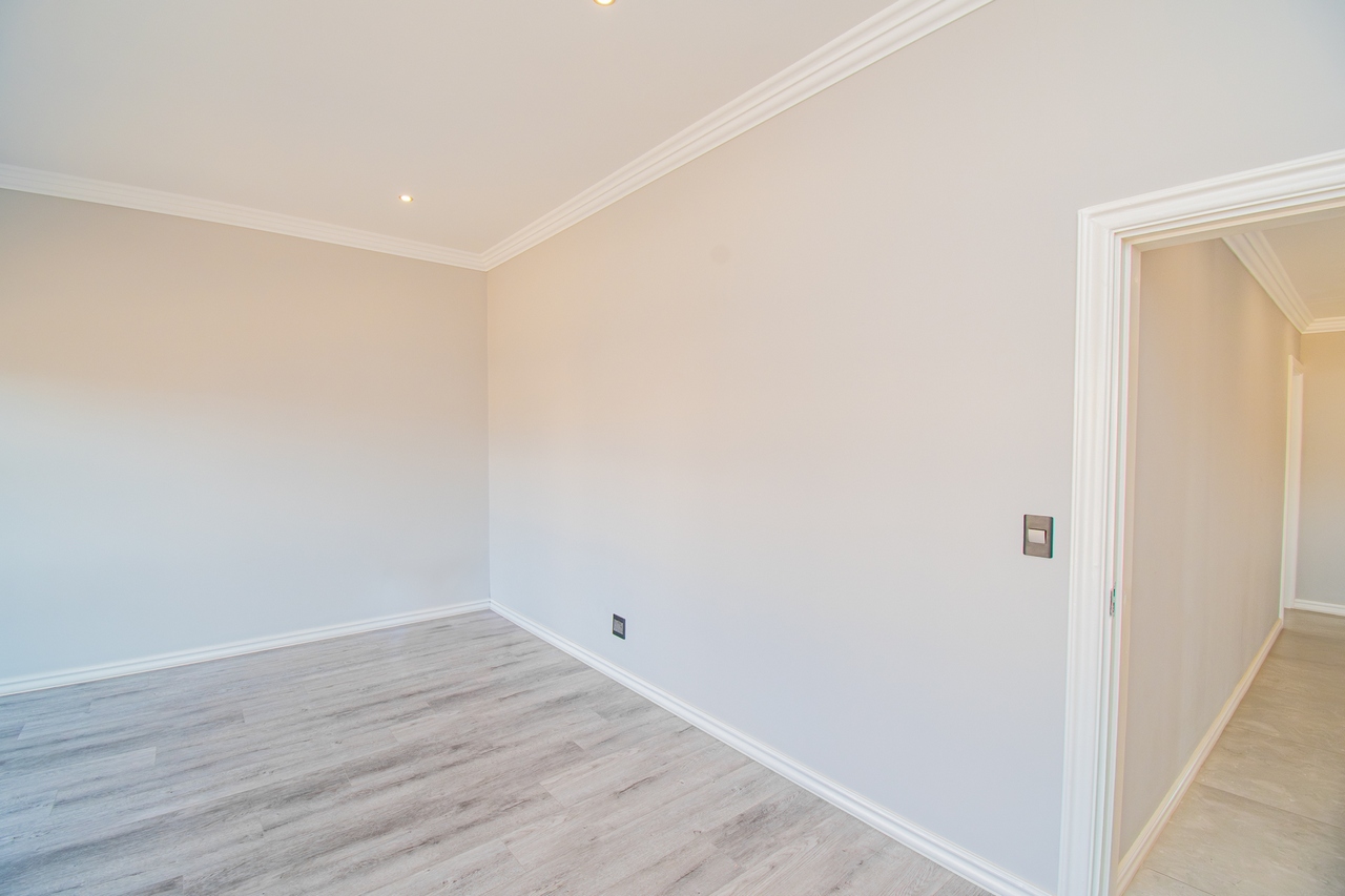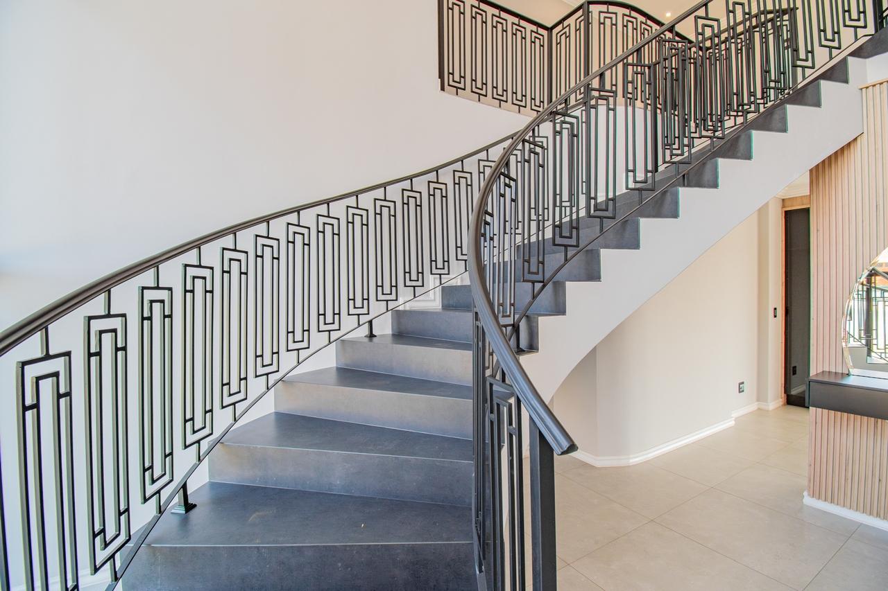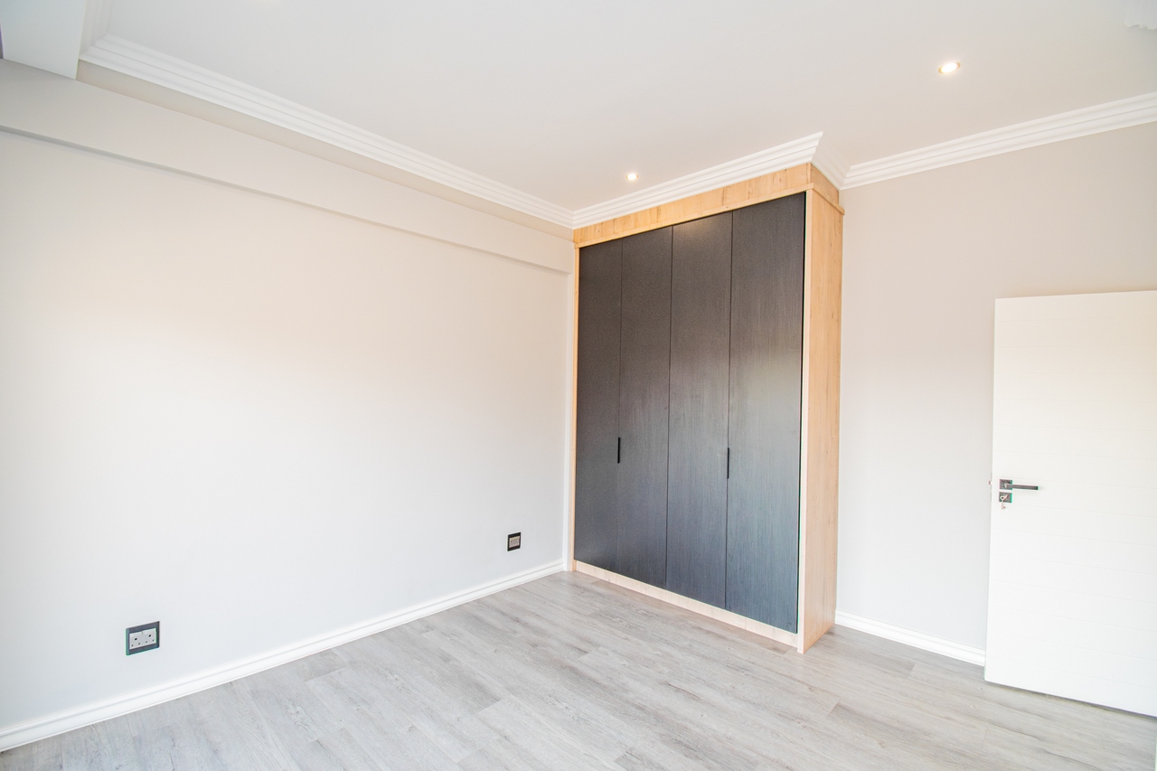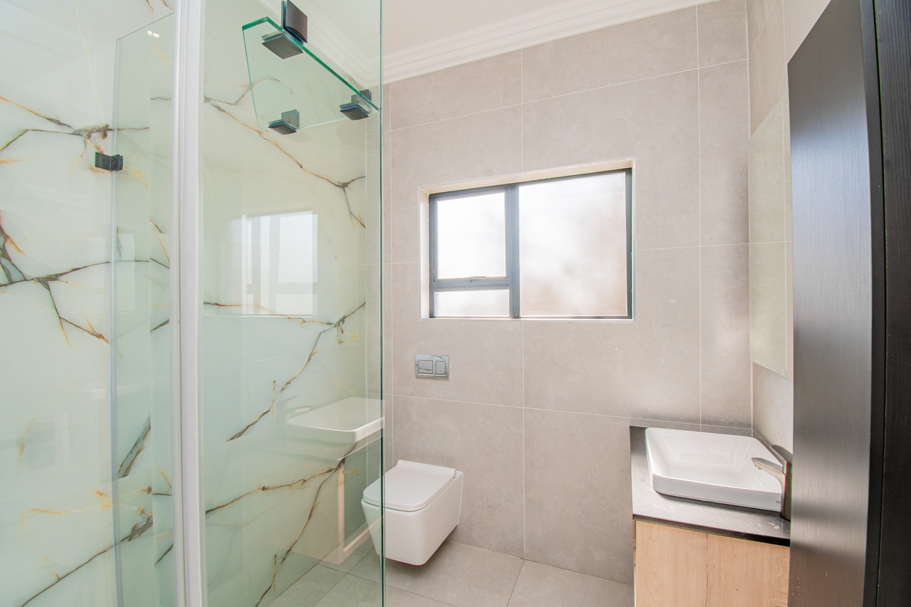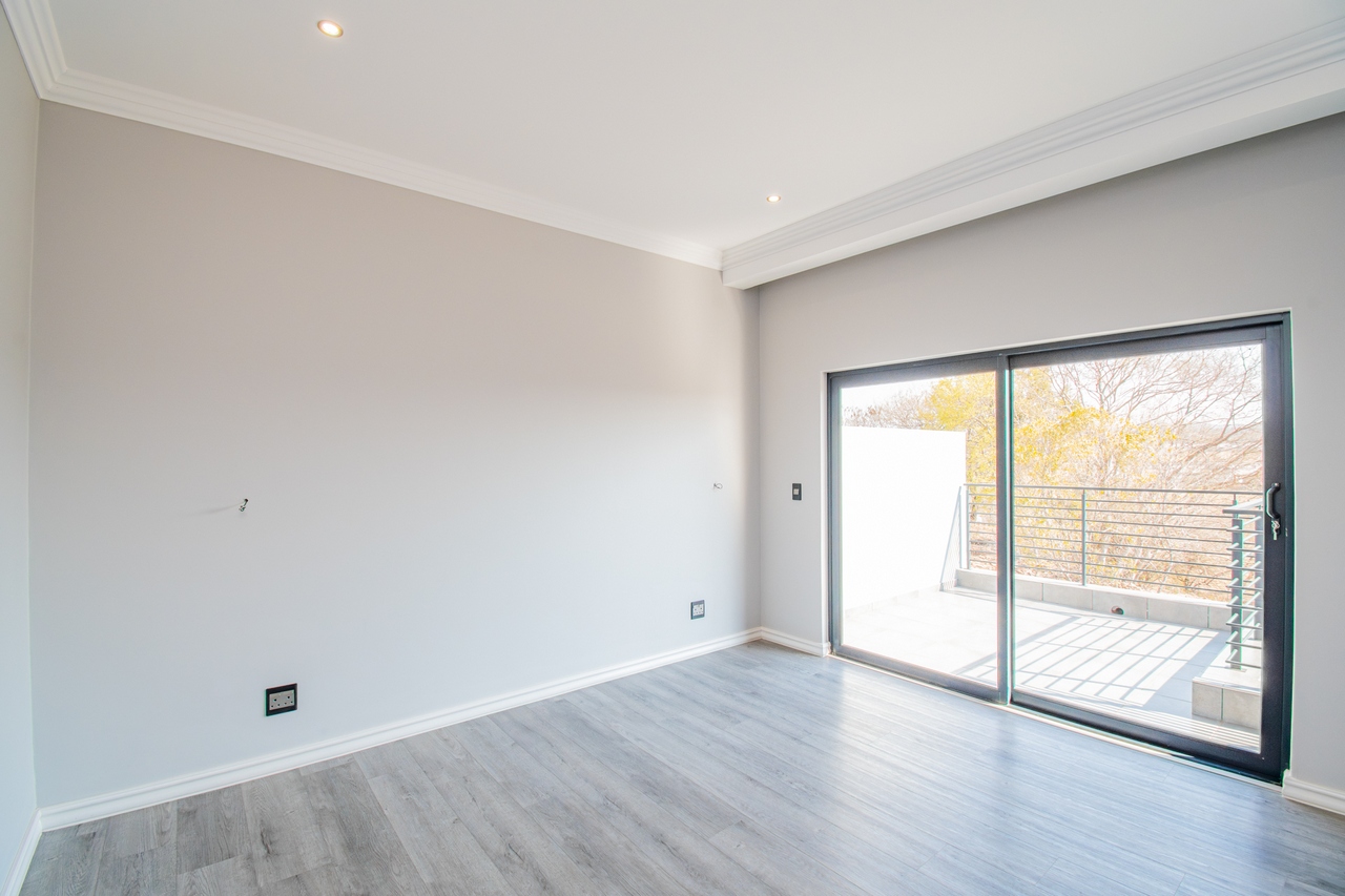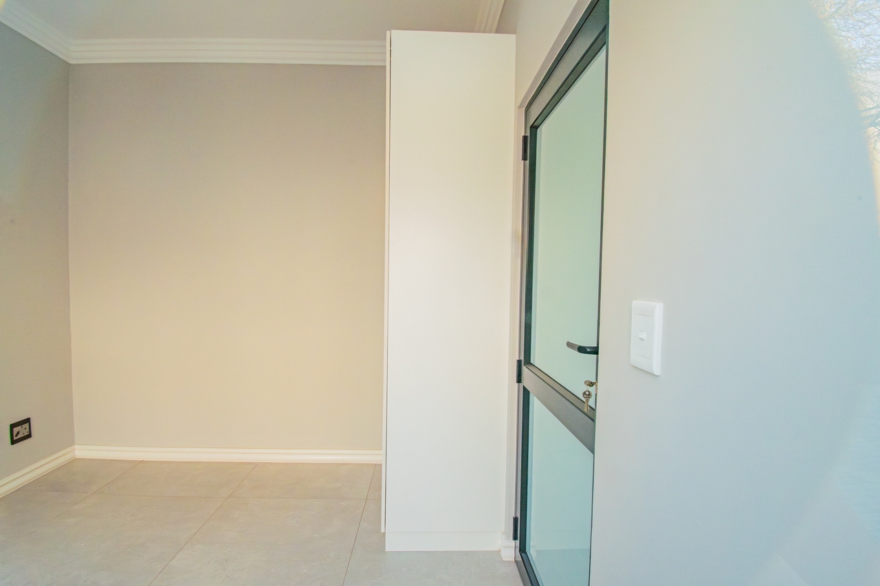 The open-concept kitchen is a chef’s dream, featuring a full suite of high-end Siemens appliances, including a built-in refrigerator, freezer, microwave with warming drawer, and a gas range with a top-of-the-line under-counter Siemens extractor. The kitchen flows effortlessly into the living areas, enhancing the sense of space and connectivity. A separate scullery adds convenience and practicality to this beautifully designed space.