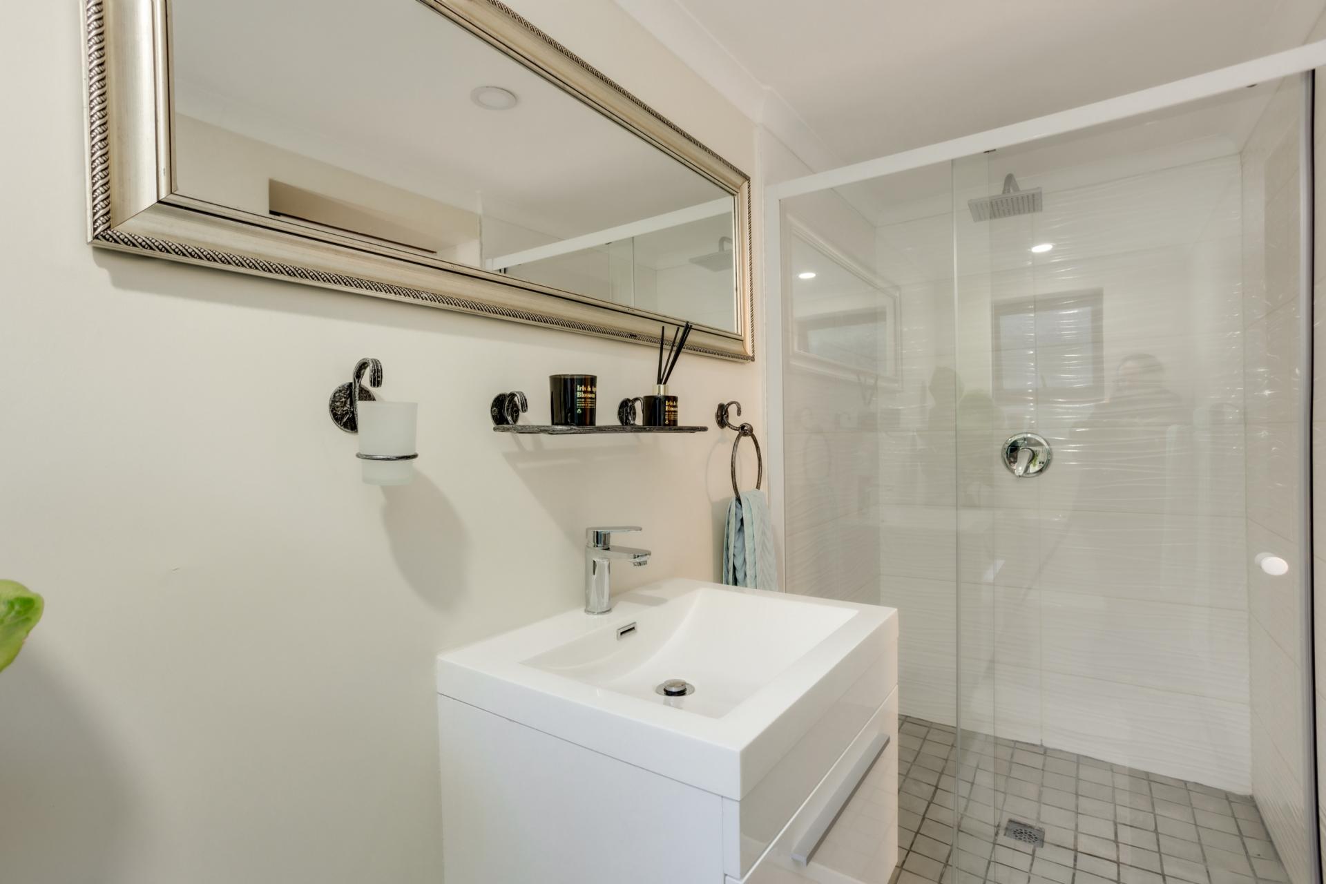 A generously sized downstairs guest suite offers visiting family or friends a private retreat, complete with an en-suite bathroom. Practical elements include triple garaging, three covered carports, ample visitor parking, a gardener’s toilet and storeroom, full solar installation and a substantial domestic suite with a private bedroom, lounge, kitchen area, and bathroom—ideal for live-in staff or extended utility.