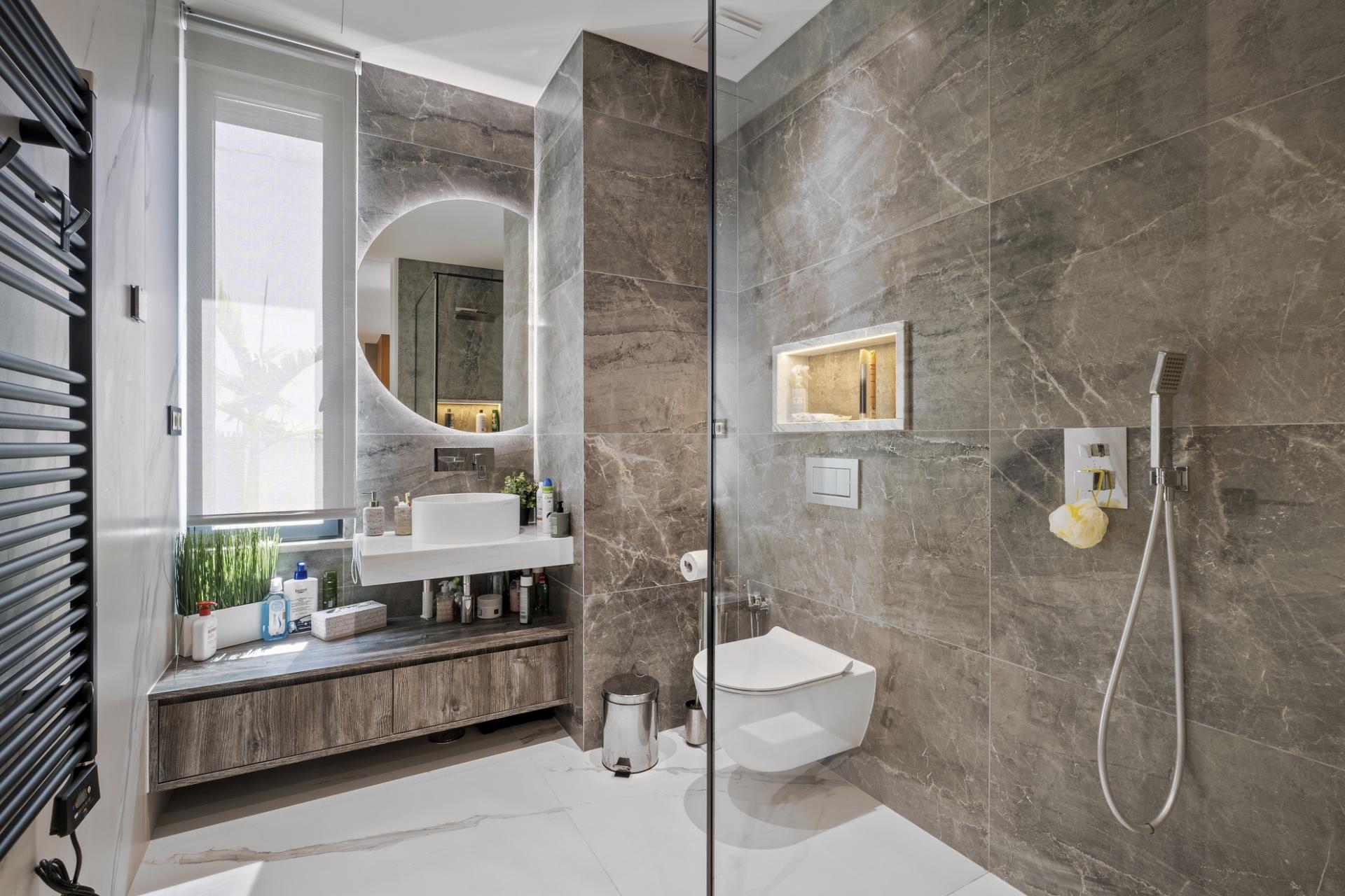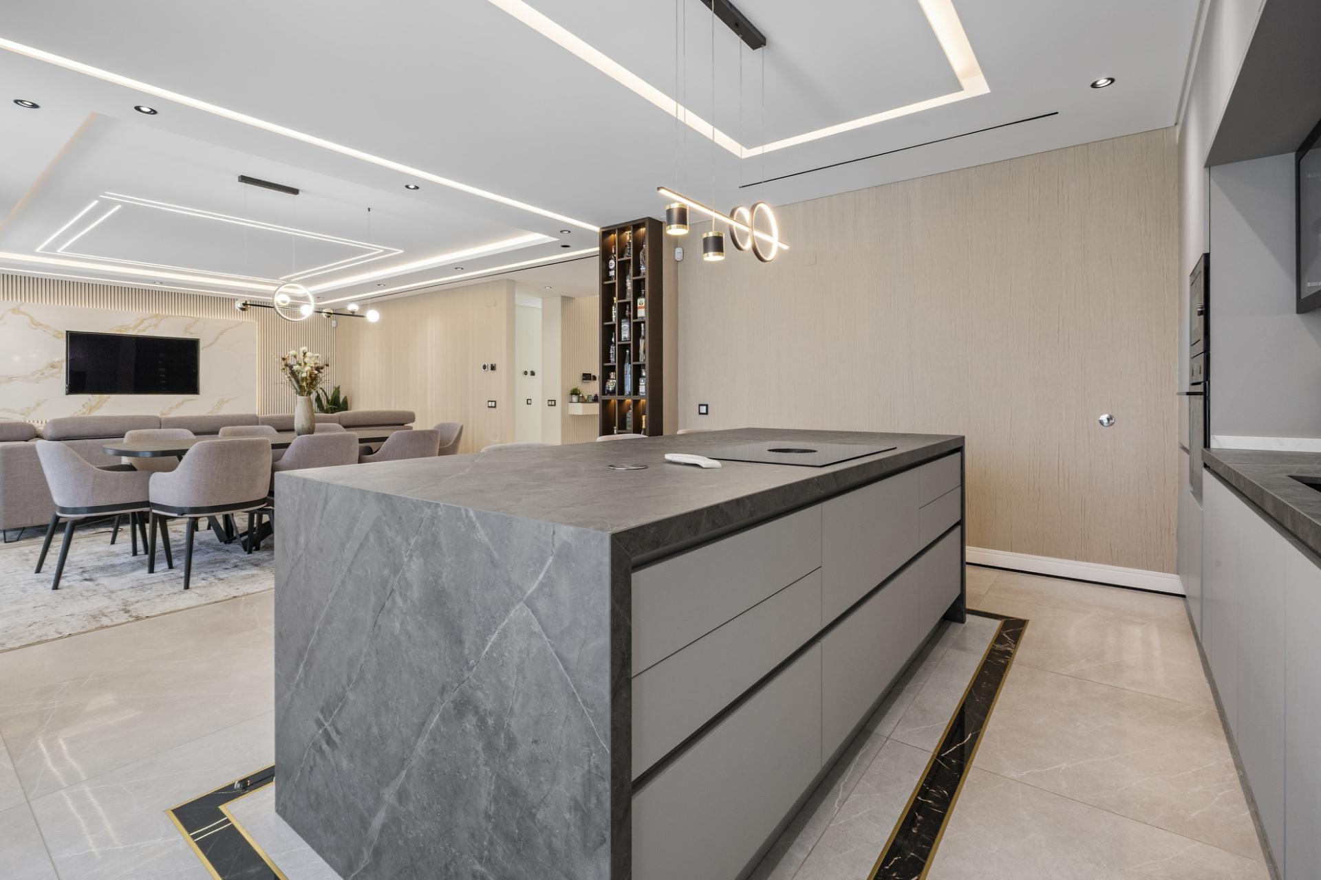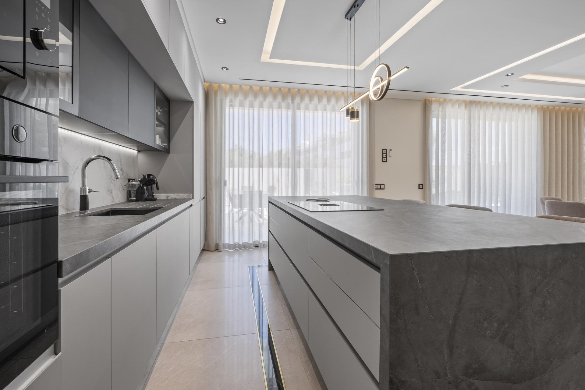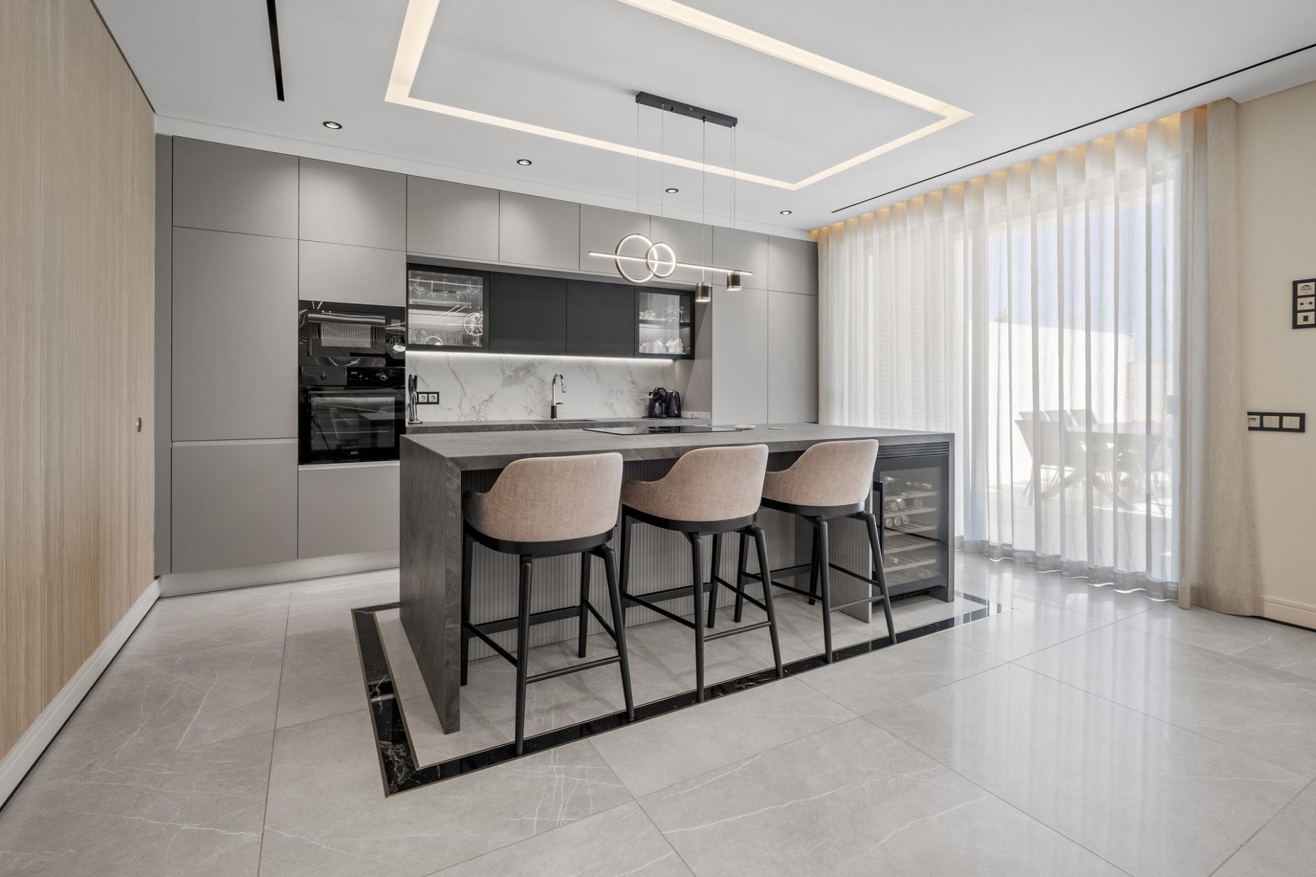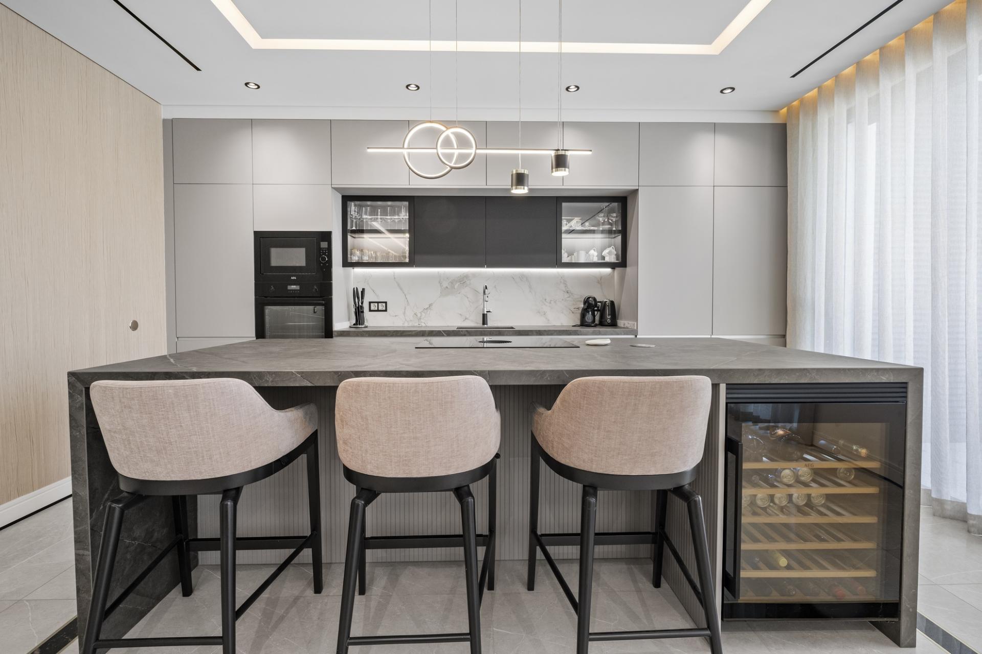Designed with convenience and security in mind, the villa includes underfloor hydraulic heating powered by a high-efficiency heat pump, air conditioning throughout, and high-spec insulation. Electric shutters and fire-resistant curtains can be individually adjusted, and dimmable lighting helps set the ideal mood in each space. Acoustic glazing, thermal breaks, video intercom, and a reinforced entrance door provide peace of mind.