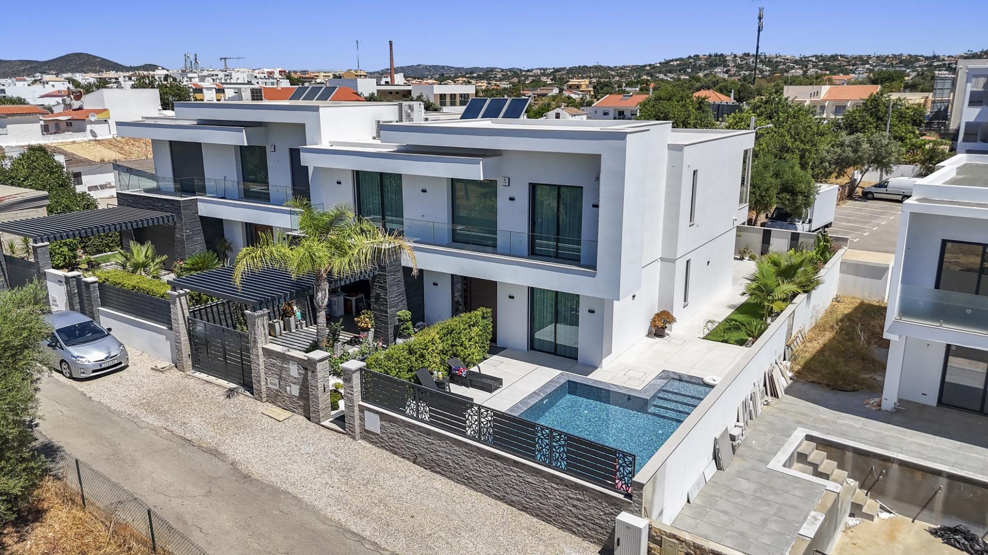 No exterior, a piscina de água salgada com pré-instalação para aquecimento está inserida num jardim de baixa manutenção e terraço soalheiro, ideal para refeições ao ar livre e convívio. A garagem e o carport coberto oferecem estacionamento para dois veículos e o portão automático garante acesso seguro. Esta moradia chave-na-mão combina estilo moderno e tecnologia de ponta numa das localizações mais cobiçadas do Algarve.