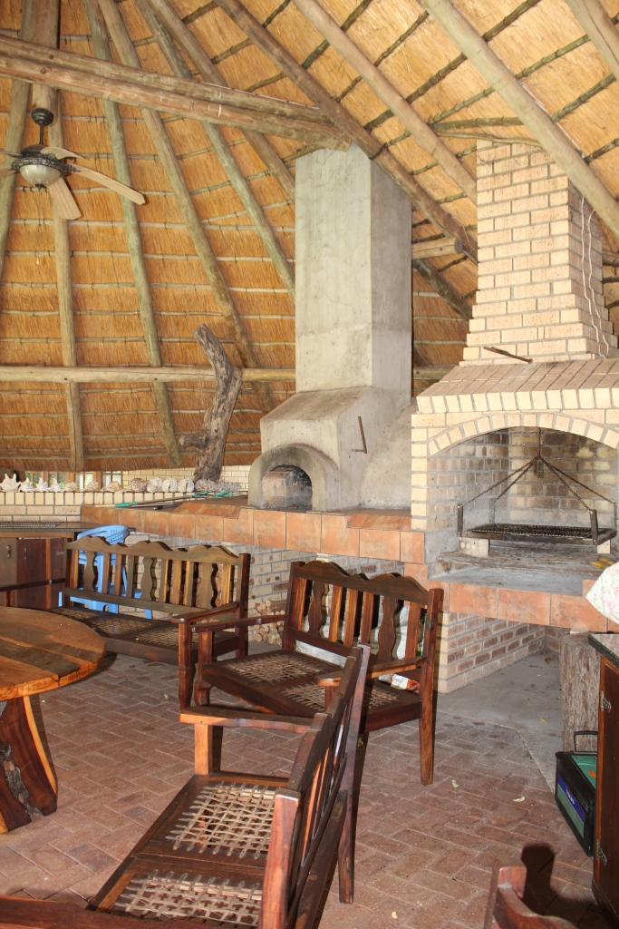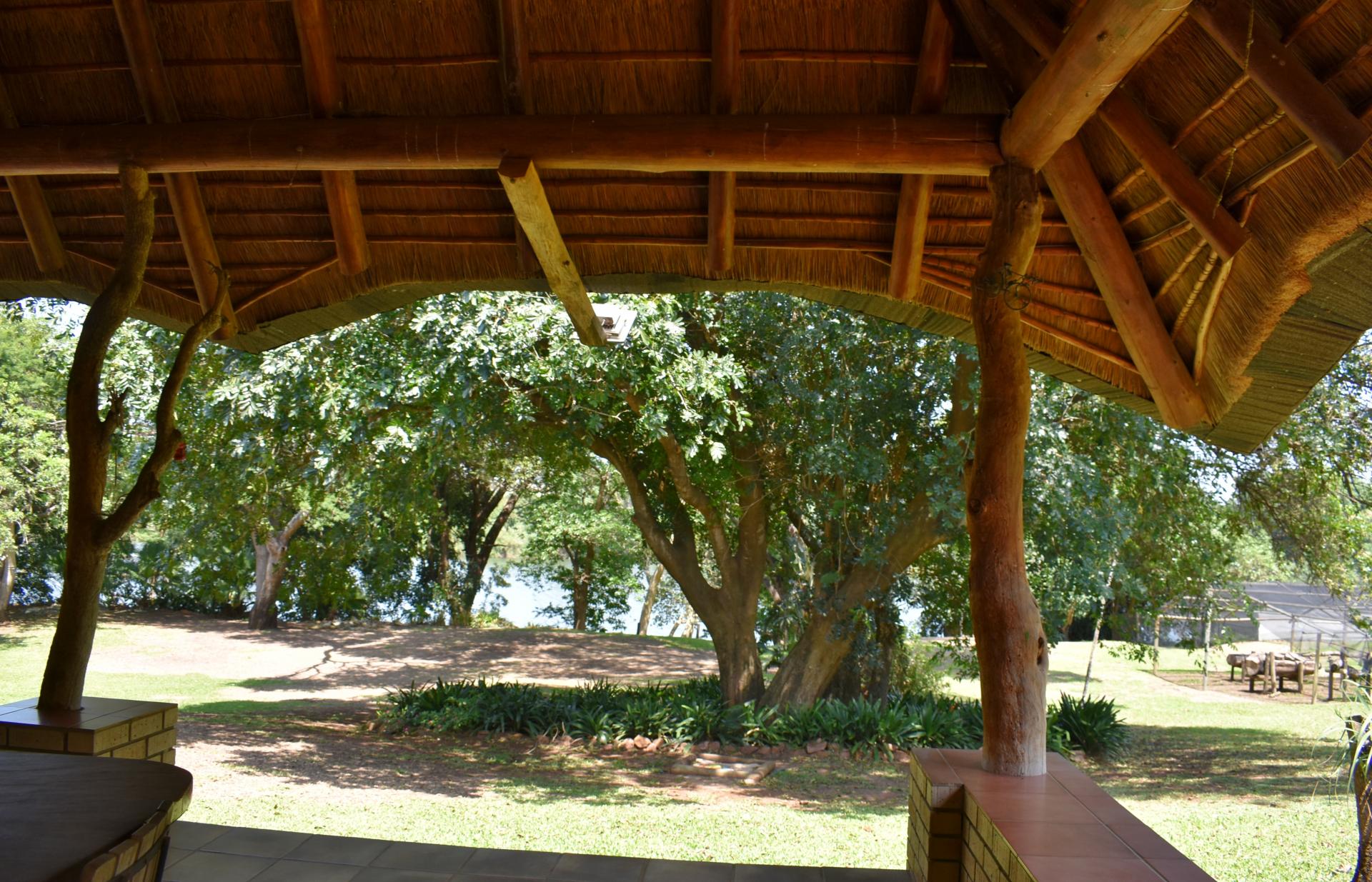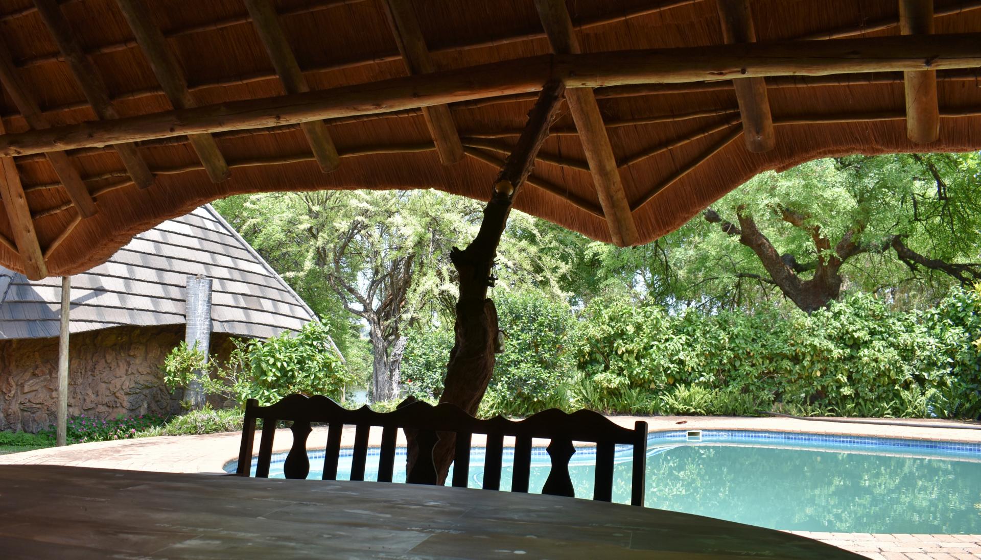 The braai room overlooks the river, across the swimming pool. A pizza oven is a built-in feature.