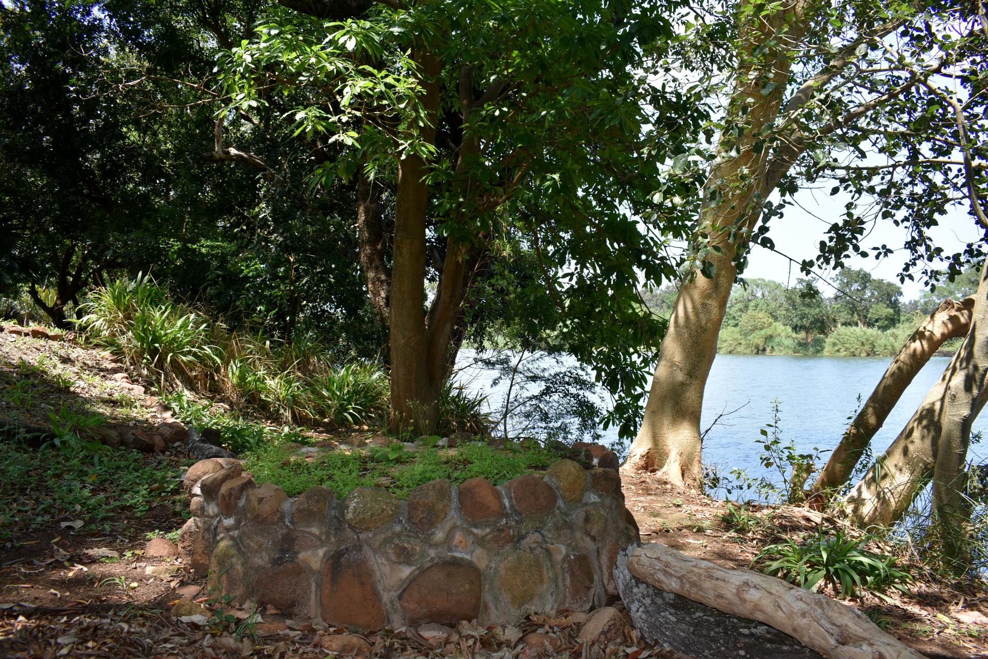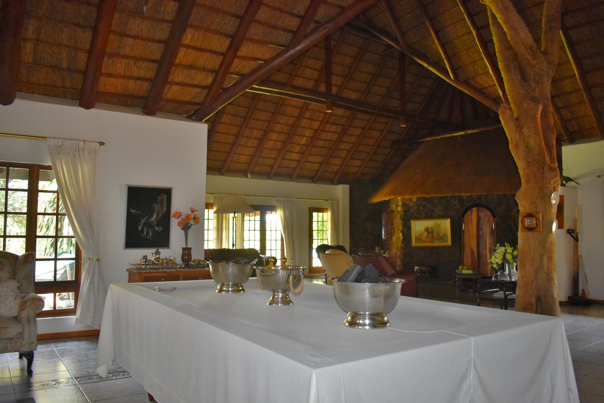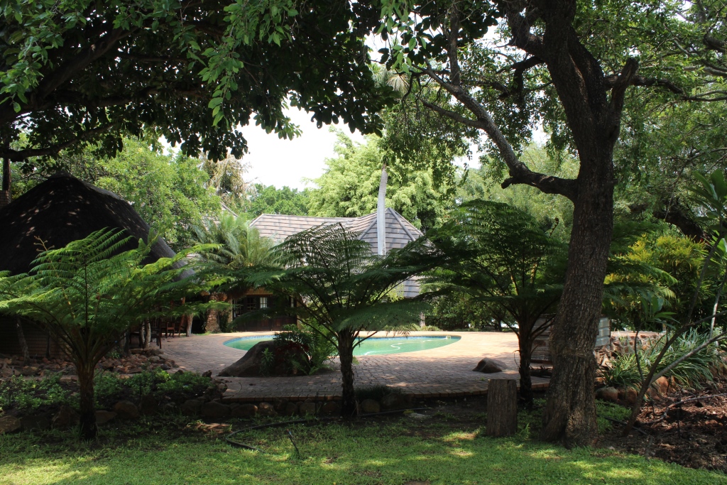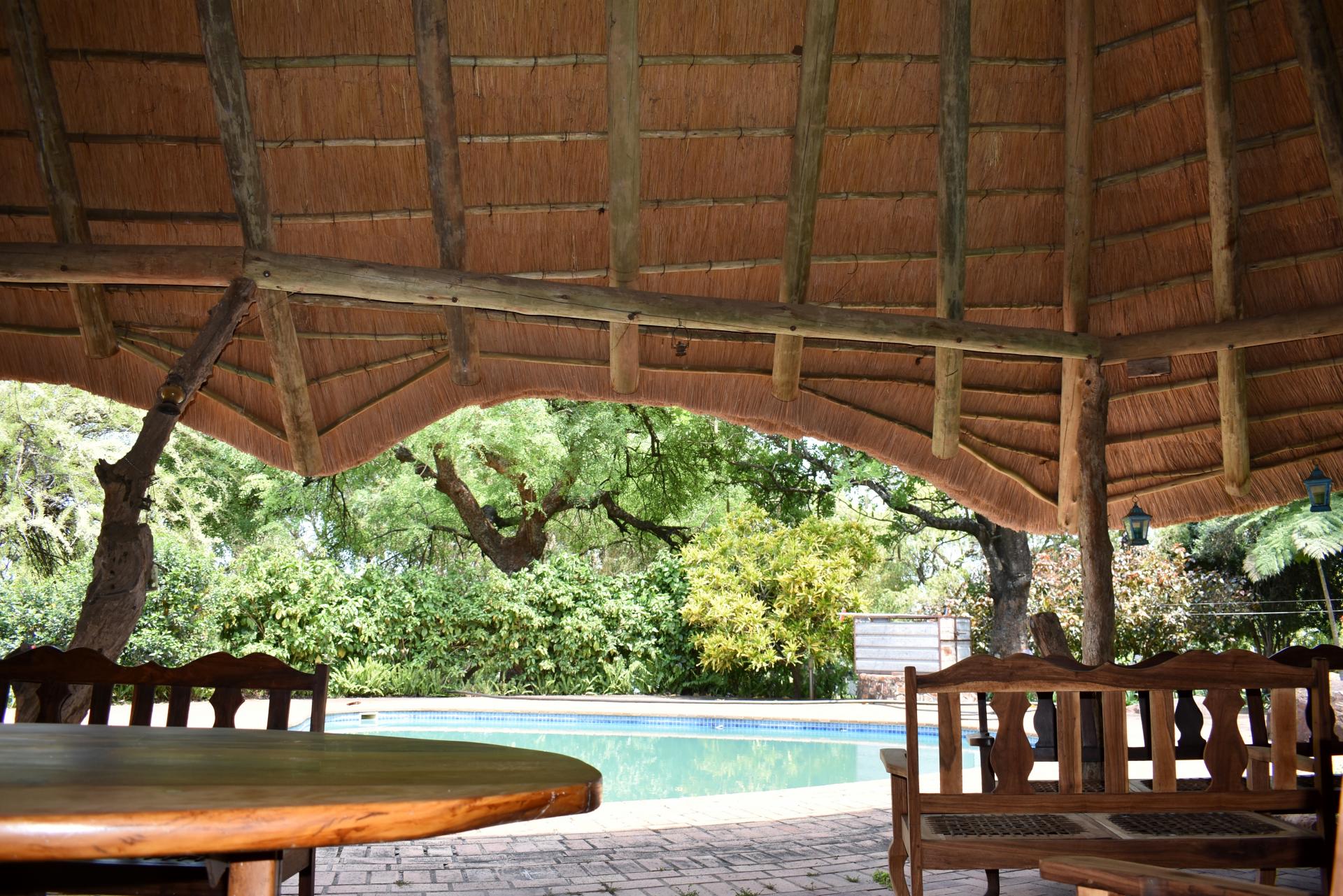 The braai room overlooks the river, across the swimming pool. A pizza oven is a built-in feature.