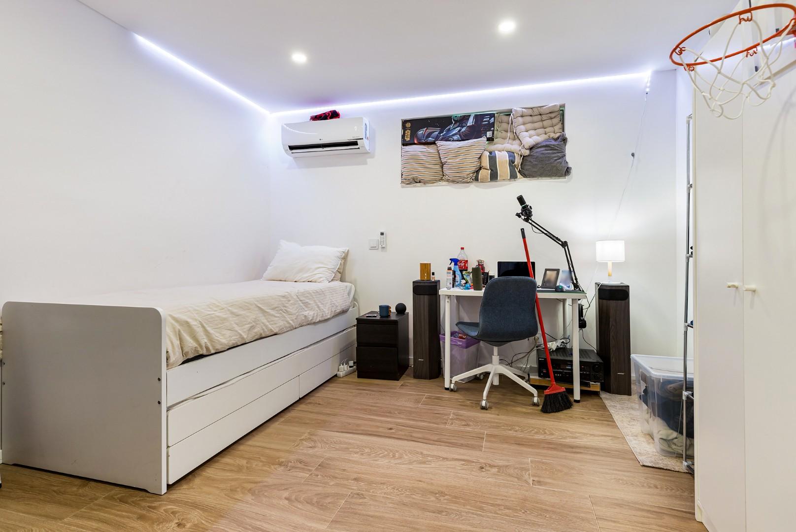 On the lower floor, there is a large room with the possibility of building another kitchen. It has large windows and direct access to the pool. Large terraces with views of the sea and the Sintra mountains. Two additional bedrooms, one full bathroom, and a laundry room.