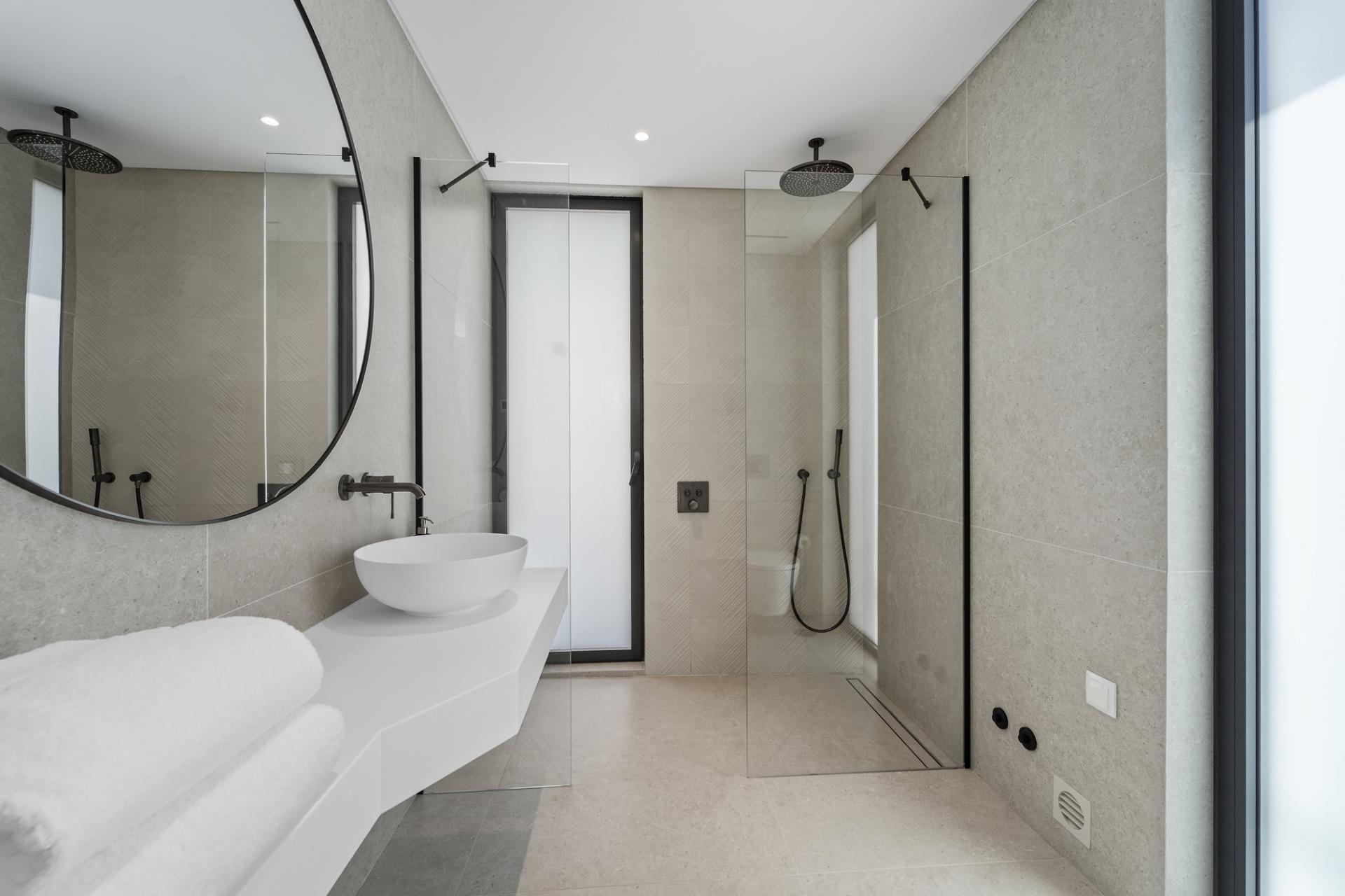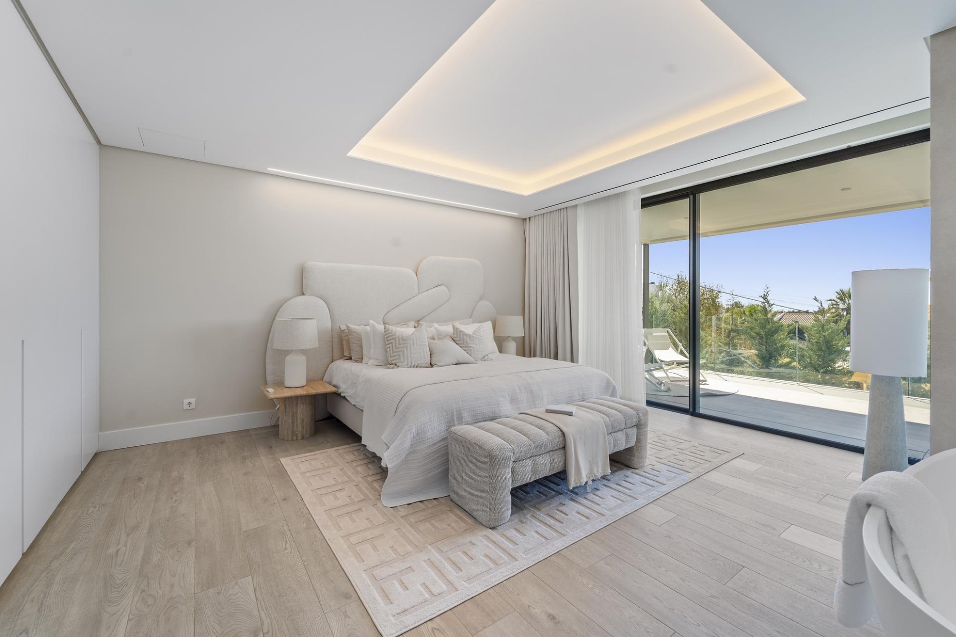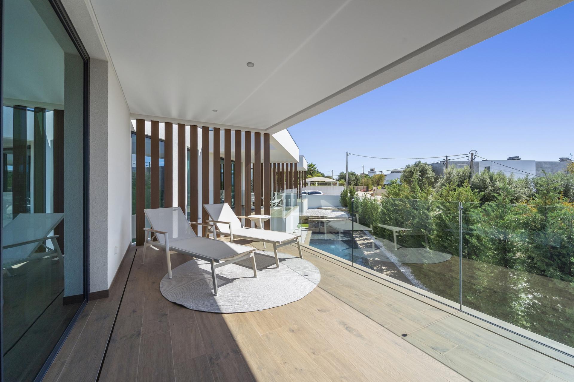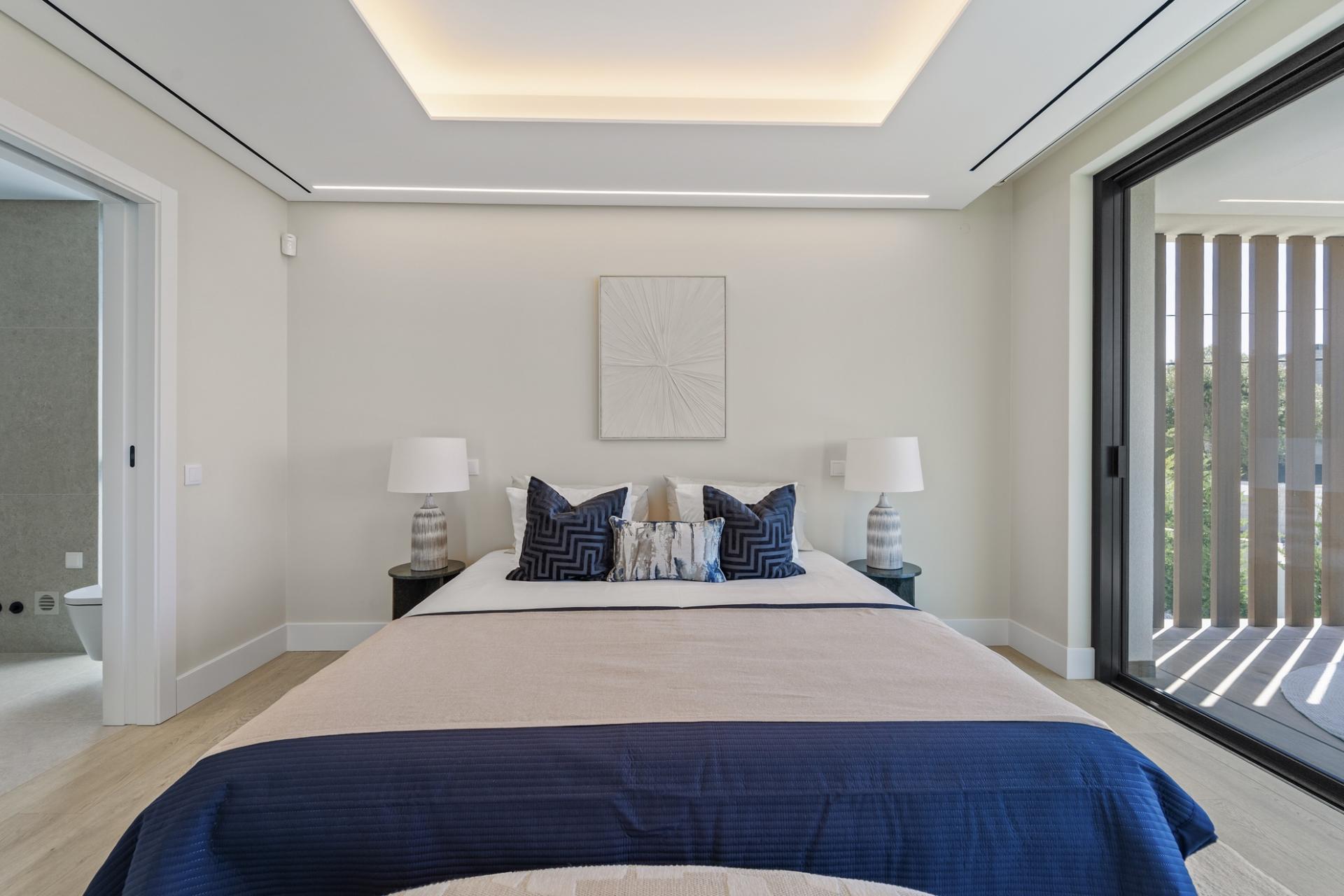 Os quatro quartos são todos em suite, incluindo uma impressionante master suite no piso superior. Esta dispõe de um terraço privativo, closet com ilha central e casa de banho ao estilo spa. No piso inferior, a moradia oferece uma ampla garagem, WC de apoio, lavandaria e áreas adicionais – perfeitas para criar uma sala de cinema, ginásio, spa ou garrafeira.