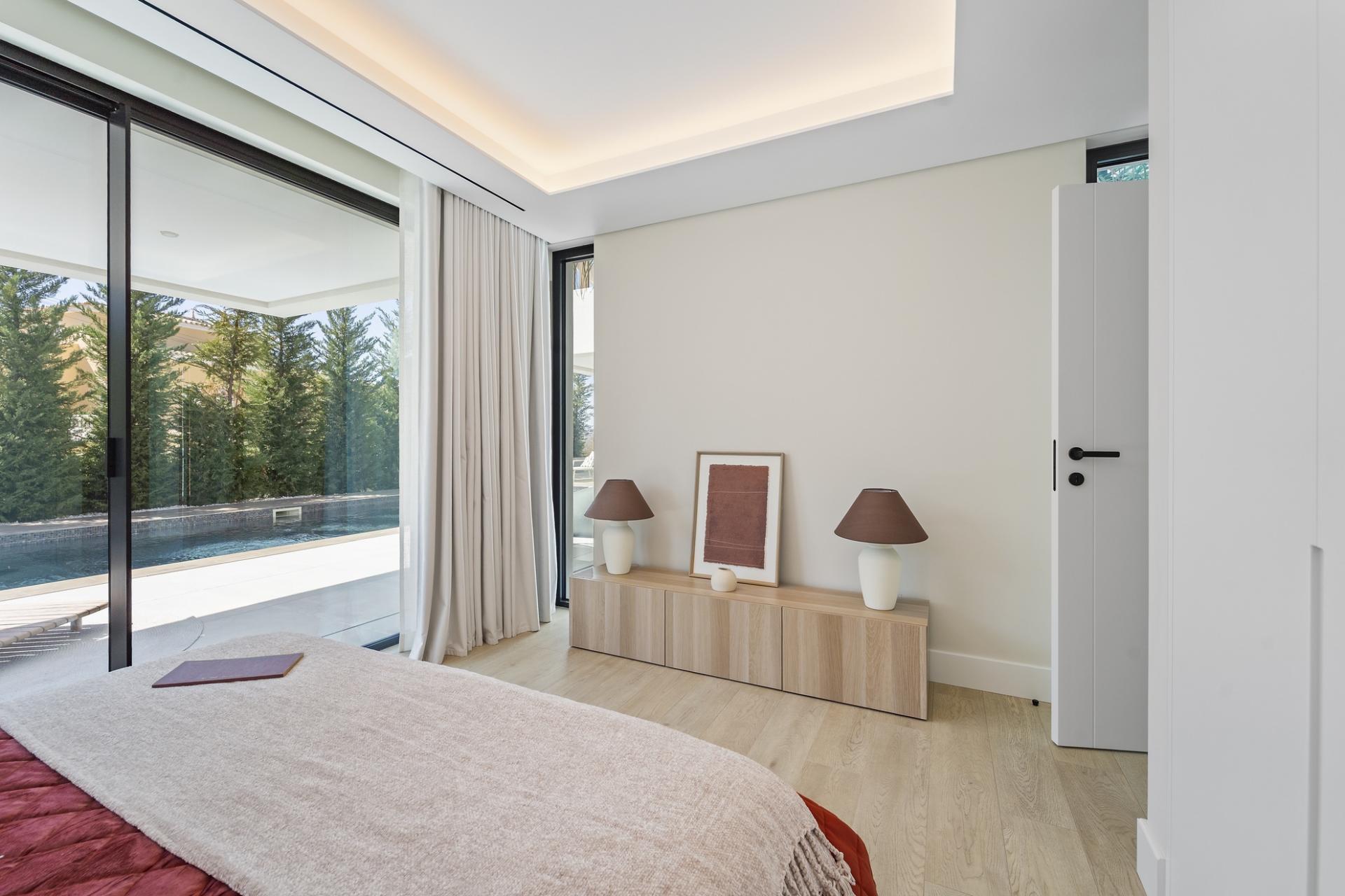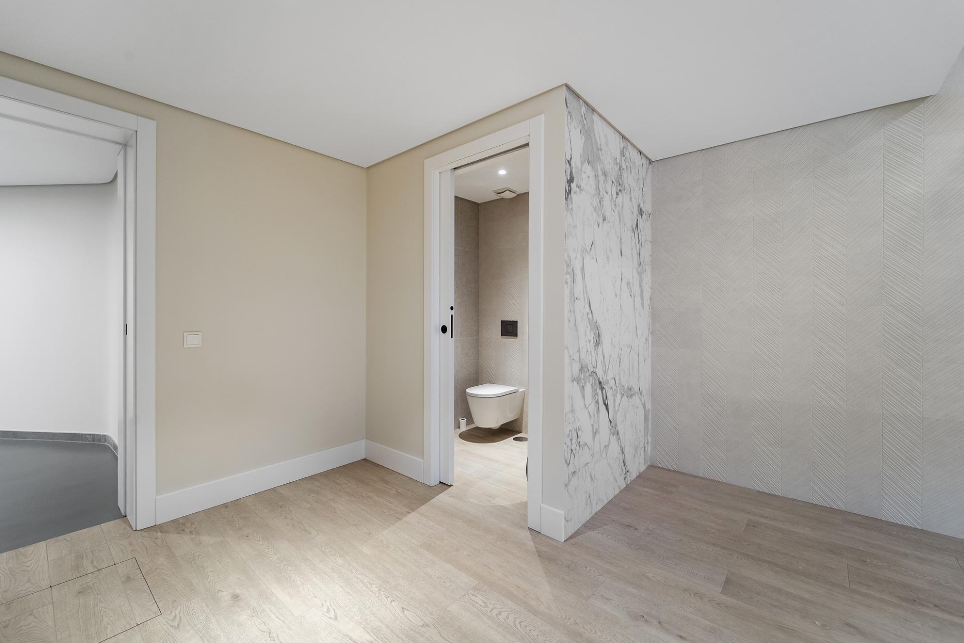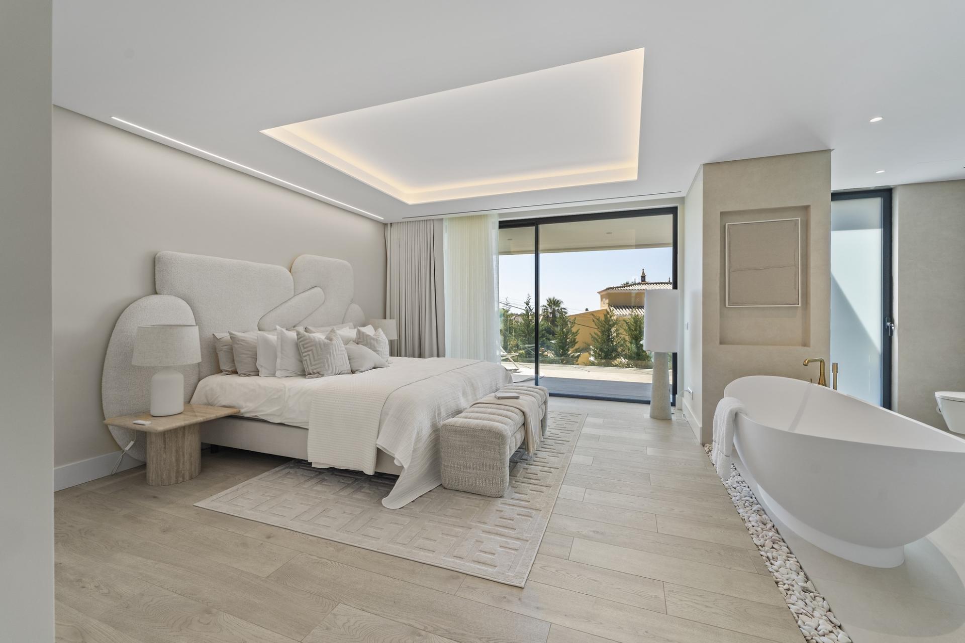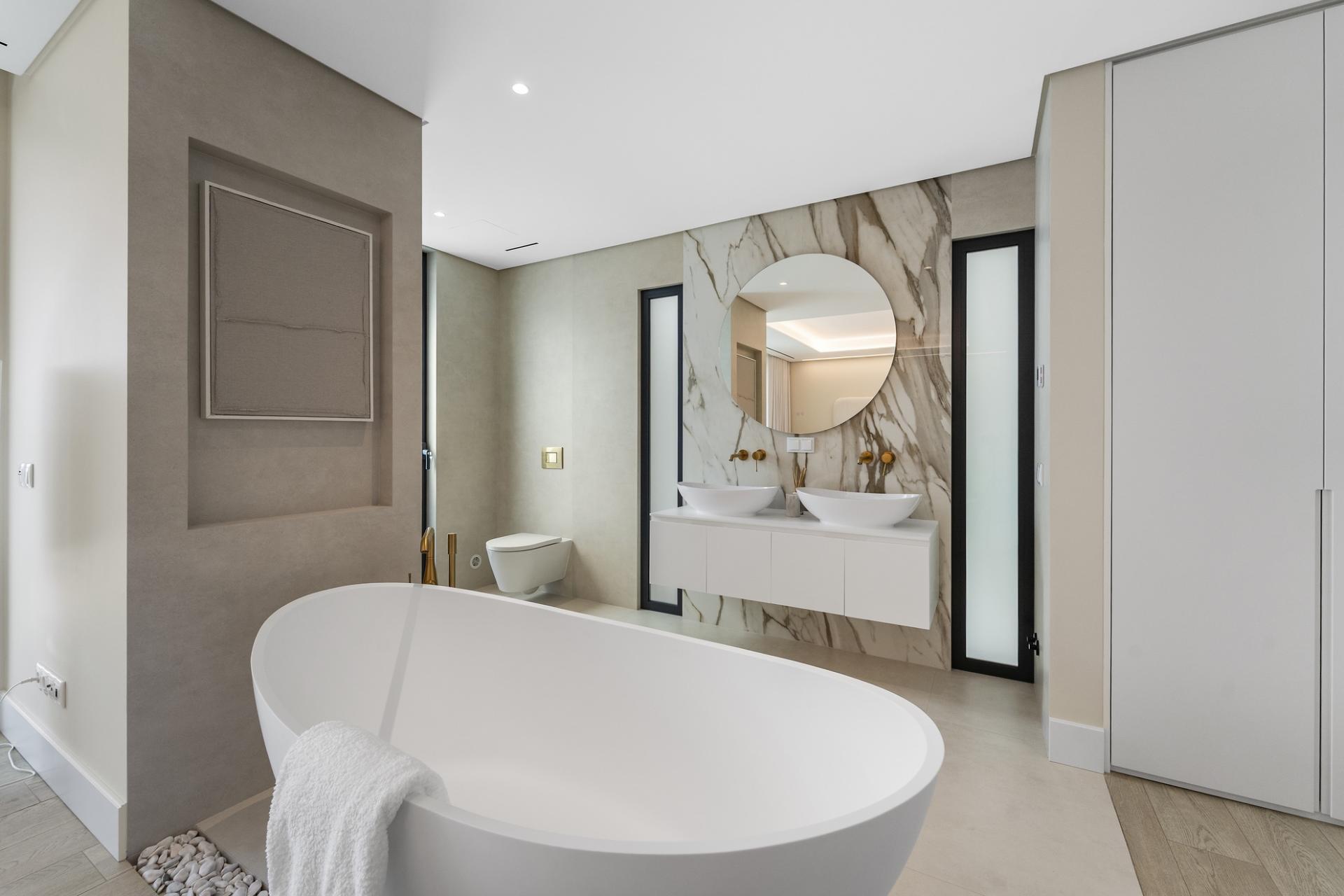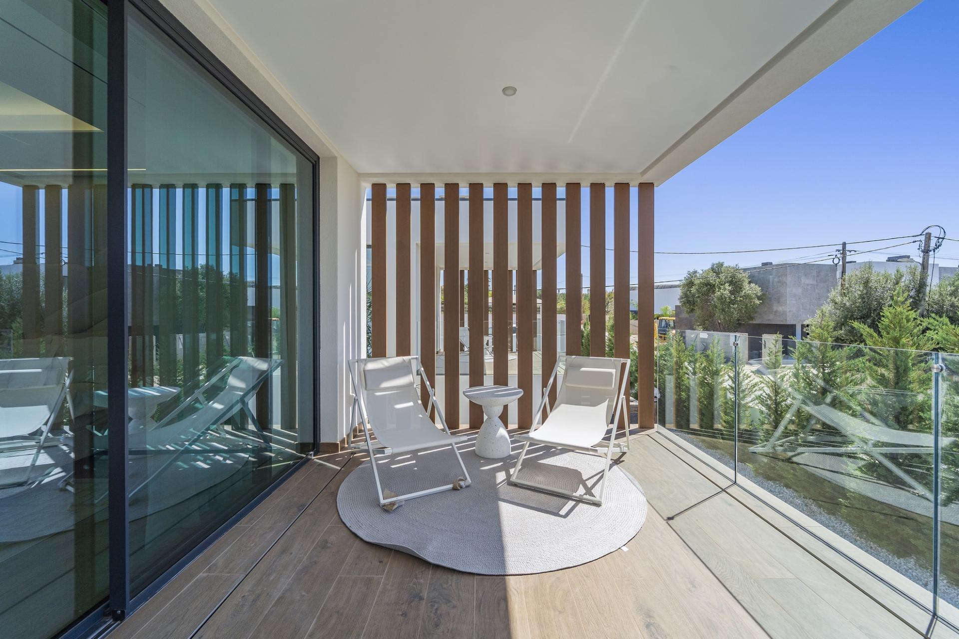 Os quatro quartos são todos em suite, incluindo uma impressionante master suite no piso superior. Esta dispõe de um terraço privativo, closet com ilha central e casa de banho ao estilo spa. No piso inferior, a moradia oferece uma ampla garagem, WC de apoio, lavandaria e áreas adicionais – perfeitas para criar uma sala de cinema, ginásio, spa ou garrafeira.