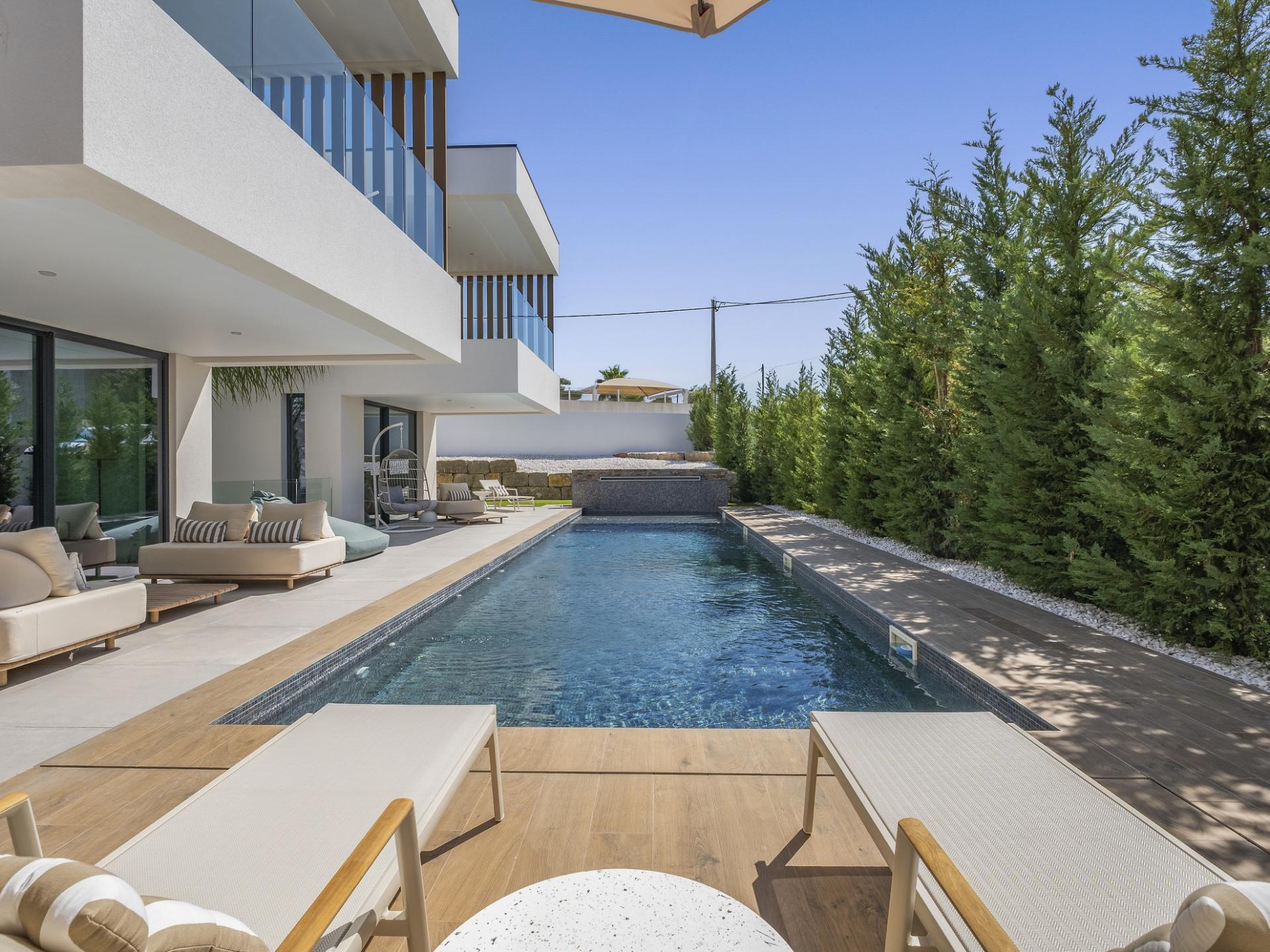 Im prestigeträchtigen Viertel Sítio dos Quartos in Almancil gelegen, bietet diese neu erbaute Villa mit vier Schlafzimmern eine außergewöhnliche Kombination aus modernem Design und ruhigem Wohnen. Auf einem erhöhten Grundstück von 2.141 m² genießt das Haus einen Panoramablick sowie ein hohes Maß an Privatsphäre, nur wenige Minuten von allen Annehmlichkeiten, internationalen Schulen, Golfresorts und nur 25 Minuten vom Flughafen Faro entfernt. Die markante Architektur und der offene Grundriss schaffen einen nahtlosen Übergang zwischen Innen- und Außenbereichen – ideal für moderne Familien oder anspruchsvolle Investoren.