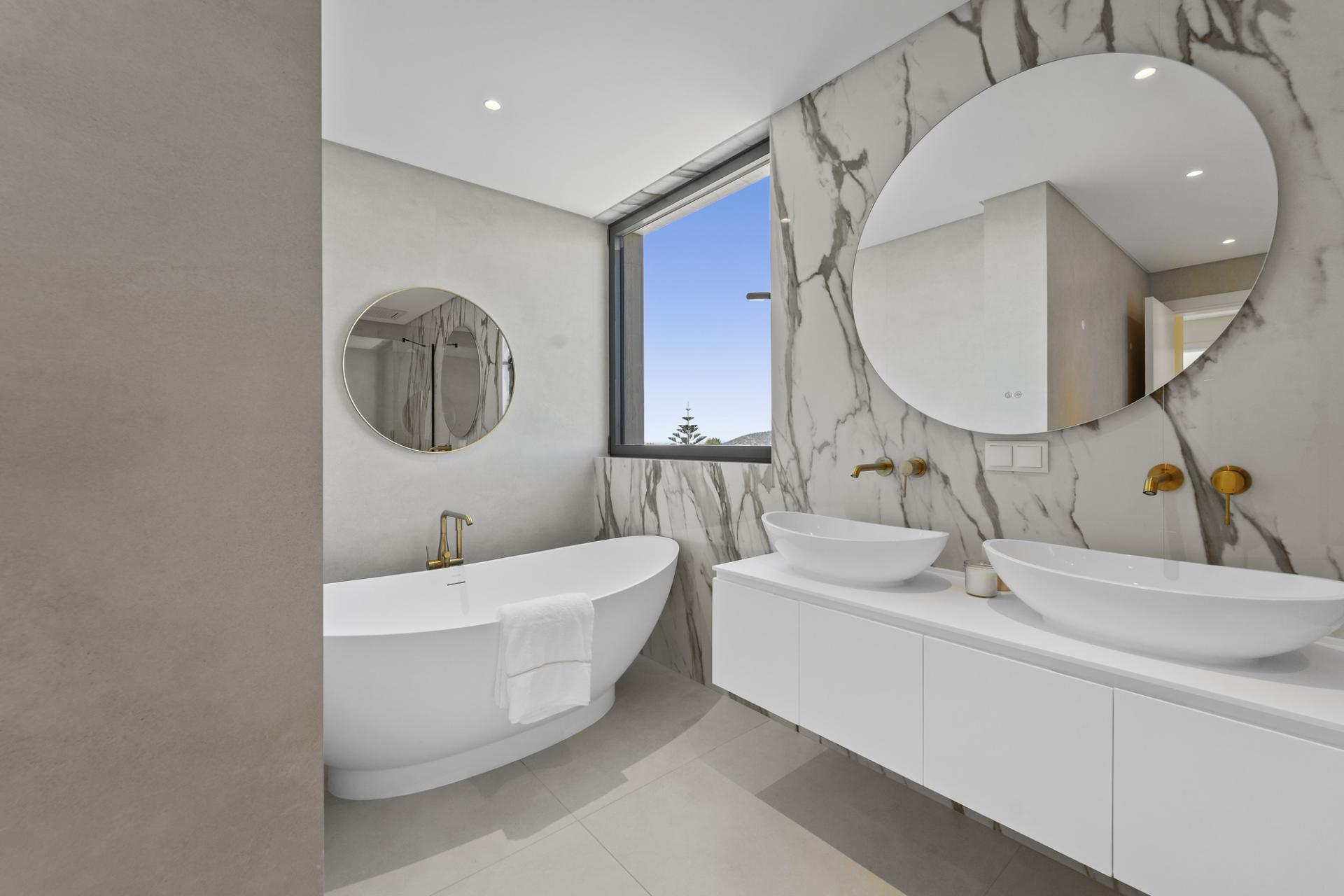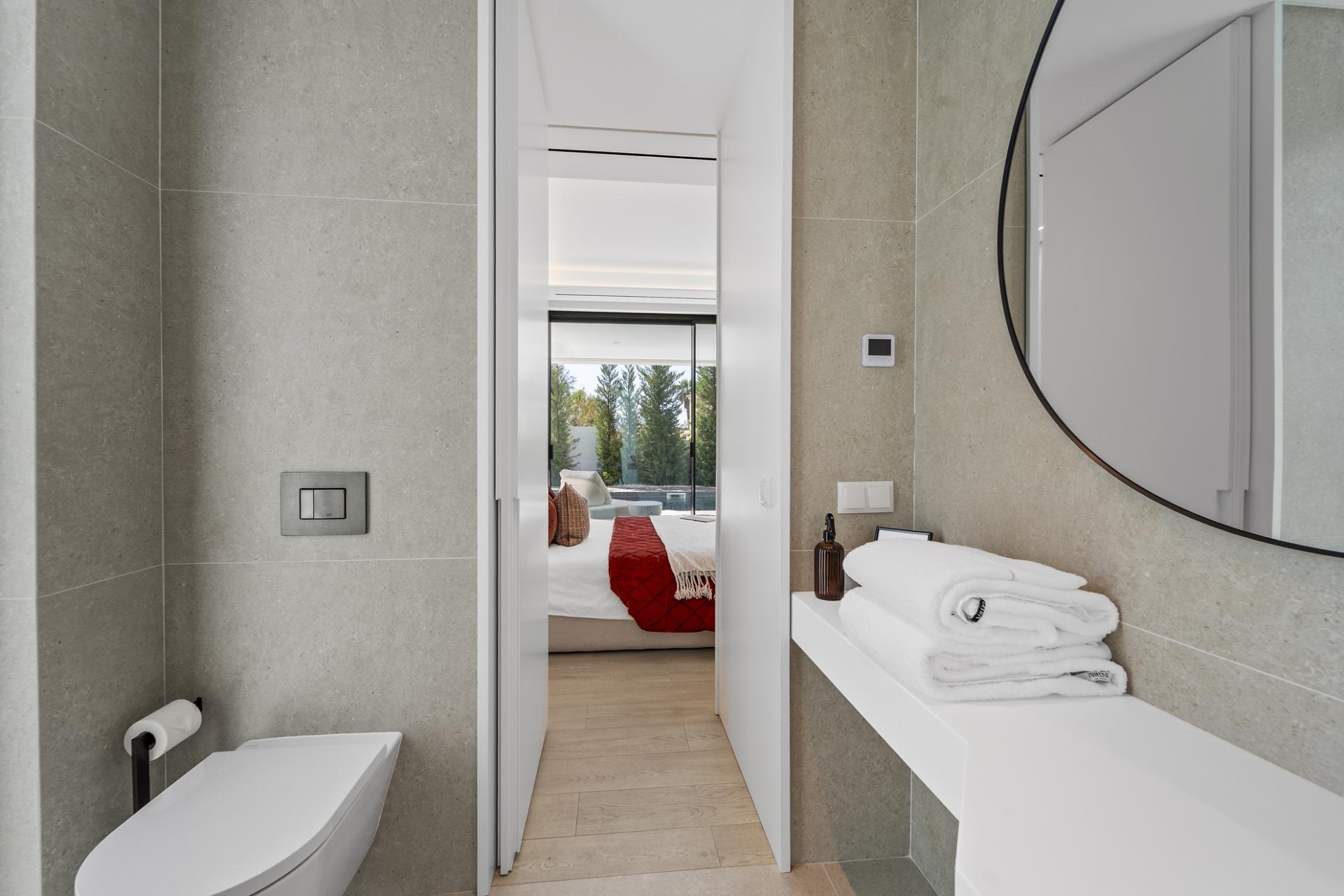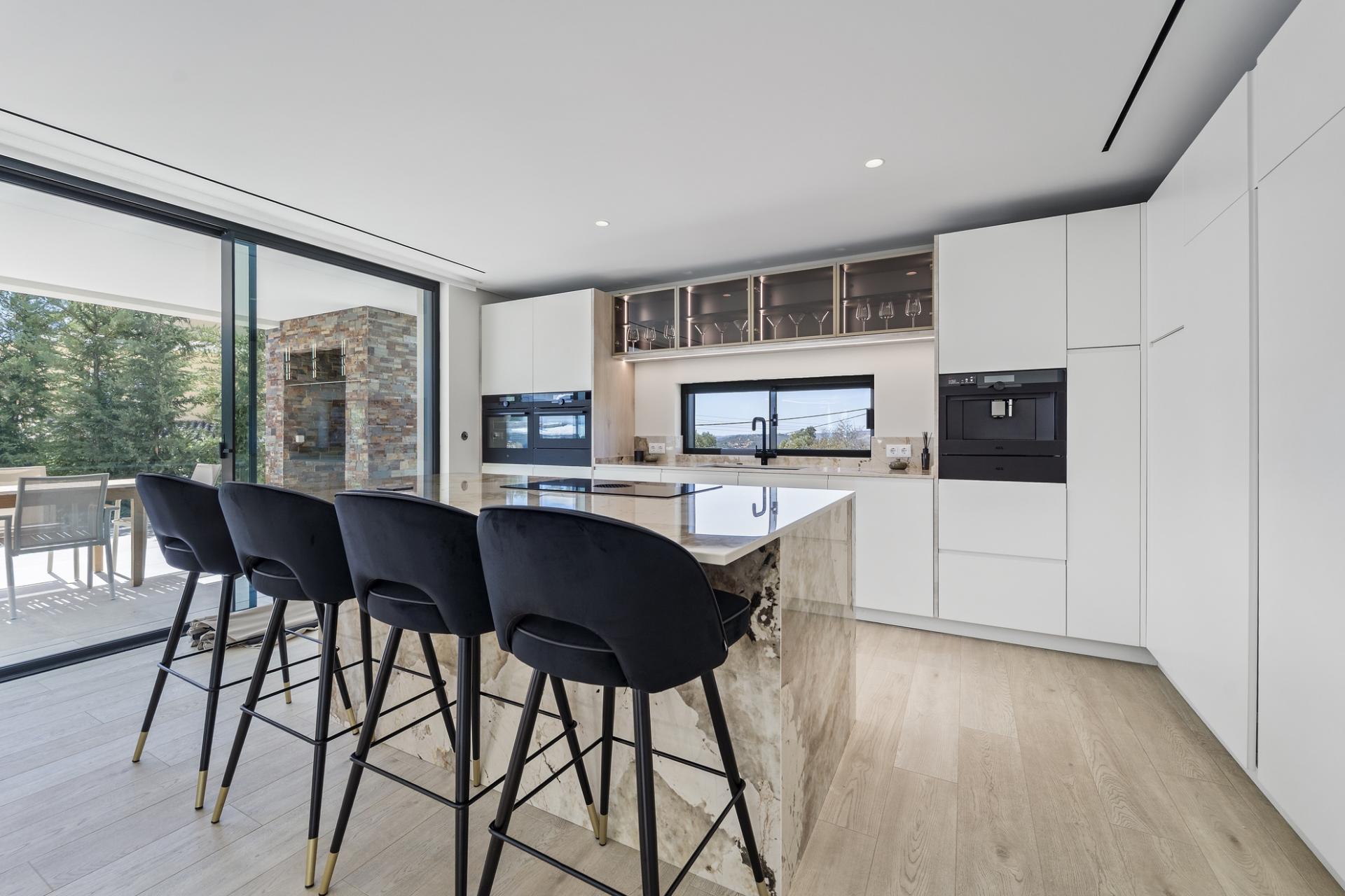 Les quatre chambres, toutes en suite, comprennent une superbe suite parentale occupant l’étage supérieur. Celle-ci dispose d’une terrasse privée, d’un dressing avec îlot central et d’une salle de bain au style spa. Le niveau inférieur abrite un grand garage, une buanderie, des toilettes invités et des espaces modulables, parfaits pour une salle de cinéma, un spa, une salle de sport ou une cave à vin.