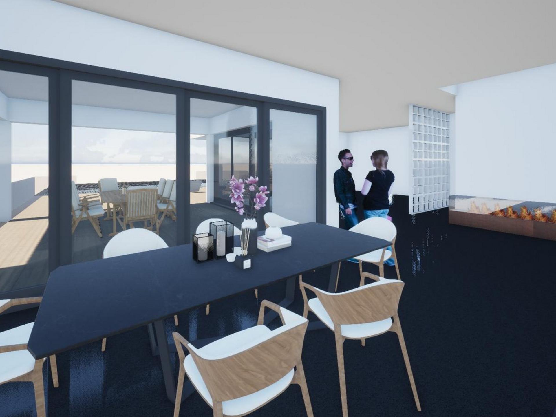 Spanning multiple levels, all connected by a lift, the villa features four spacious en-suite bedrooms, including one on the ground floor, ensuring both comfort and privacy for its residents. The interior architecture highlights generous volumes, with a luminous living and dining area seamlessly blending into an open-plan kitchen fitted with state-of-the-art appliances. Outside, the heated infinity pool with a cascading waterfall and LED lighting sits beautifully within a landscaped garden, creating the perfect setting for relaxation.