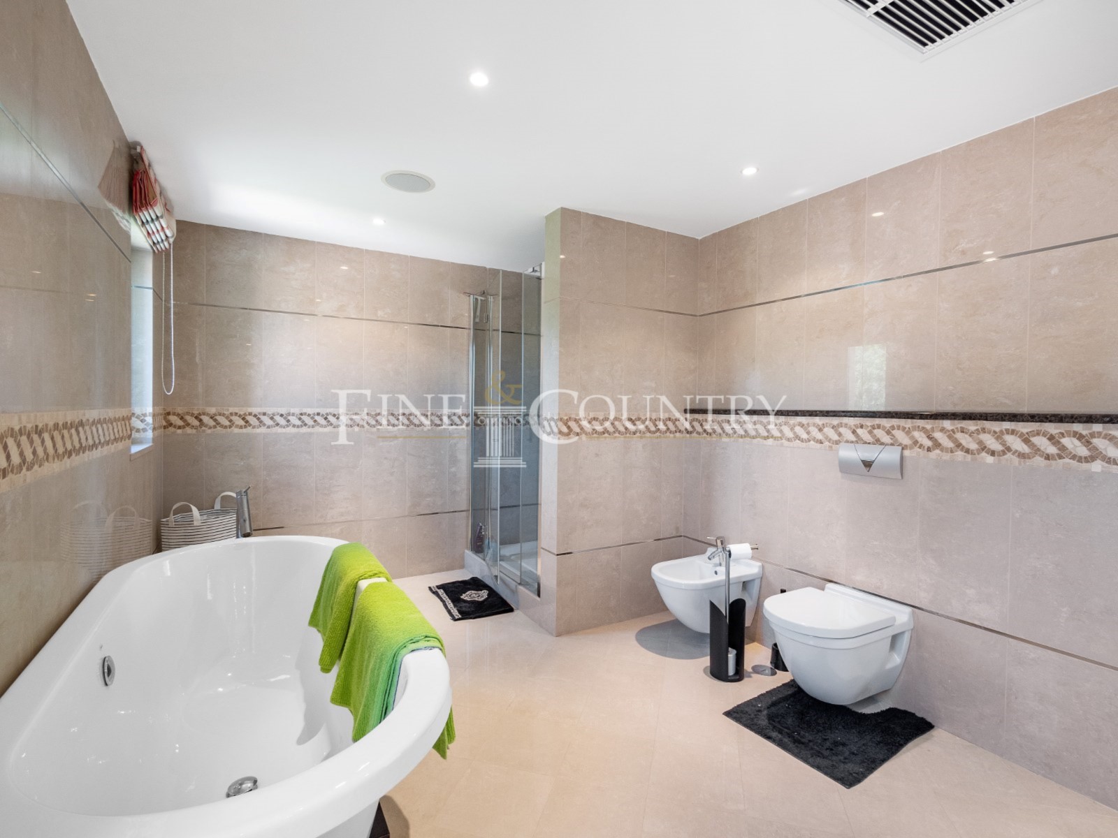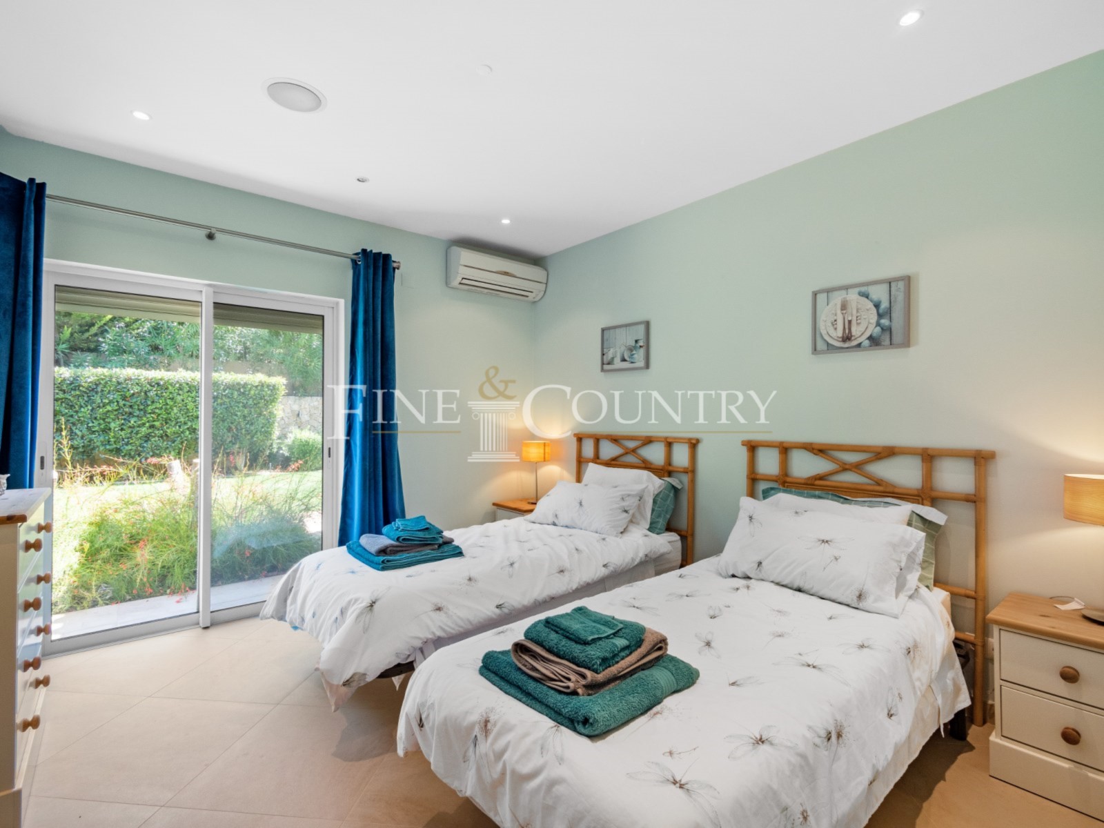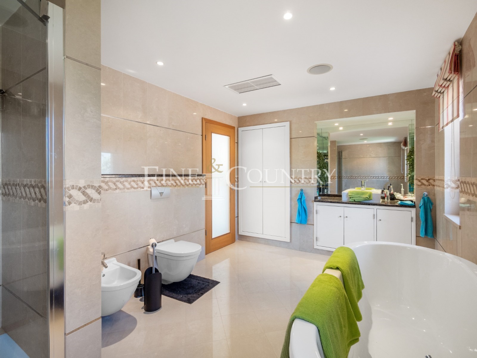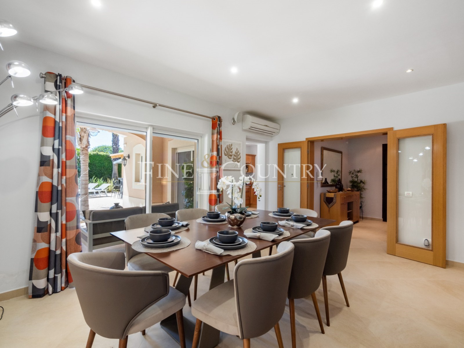 This spacious 4-bedroom villa with 260m2 with mature gardens on a plot of 1292m2, pebble pool and garage, high standard with electric shutters, electric underfloor heating, natural stone floors, sound system and great outdoor private spaces with mature gardens and much more.