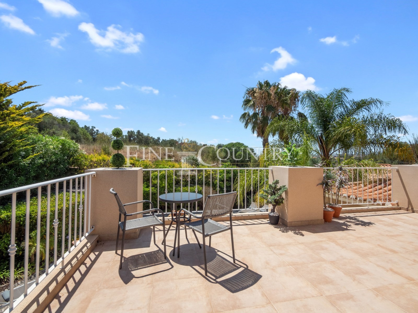 It comprises of 4 bedrooms, 3 of which are en-suite (main bedroom on the 1st floor with a great outdoor terrace with views to the countryside), a further full family bathroom, storage room, lounge, dining area, a fully fitted kitchen and pantry/laundry area plus a 1 car garage. It is totally fenced and gated with a fully landscaped mature gardens that give you total privacy and a pebble pool with an outdoor BBQ/Bar/Entertaining areas.