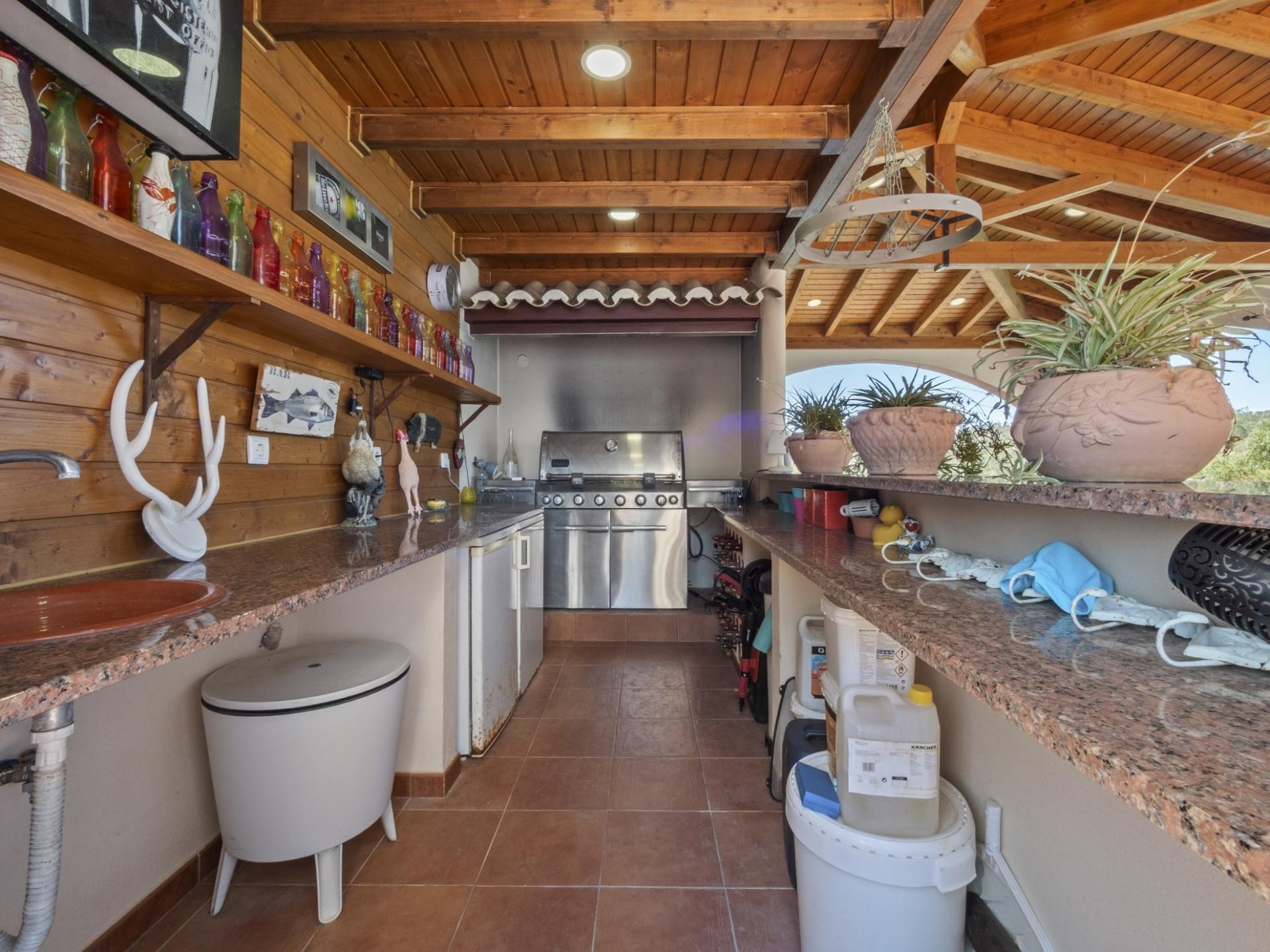 Additional highlights include a jacuzzi, wine cellar, and a three-car drive-through garage, plus ample exterior parking. The outdoor areas are ideal for entertaining and relaxation, with a swimming pool, large covered patio, and an integrated gas BBQ. The property benefits from its own borehole, septic tank, and solar panels.
