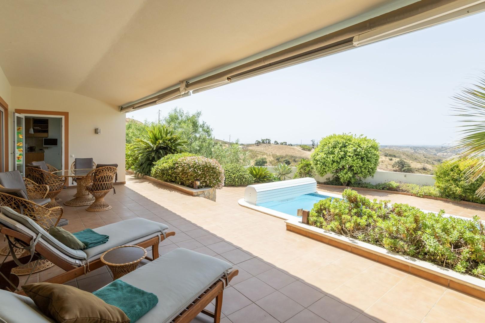 A moradia, com 362 m² distribuídos por dois pisos, apresenta interiores amplos e luminosos. O rés-do-chão inclui um impressionante hall de entrada com pé-direito duplo, sala de estar com janelas do chão ao teto, sala de TV, sala de jantar formal e cozinha totalmente equipada. Neste piso encontra-se também um quarto de hóspedes em suíte, uma lavandaria e zona técnica. No piso superior, encontram-se três suítes adicionais, cada uma com acesso a um terraço partilhado, de onde se desfrutam vistas deslumbrantes sobre o mar e o campo.