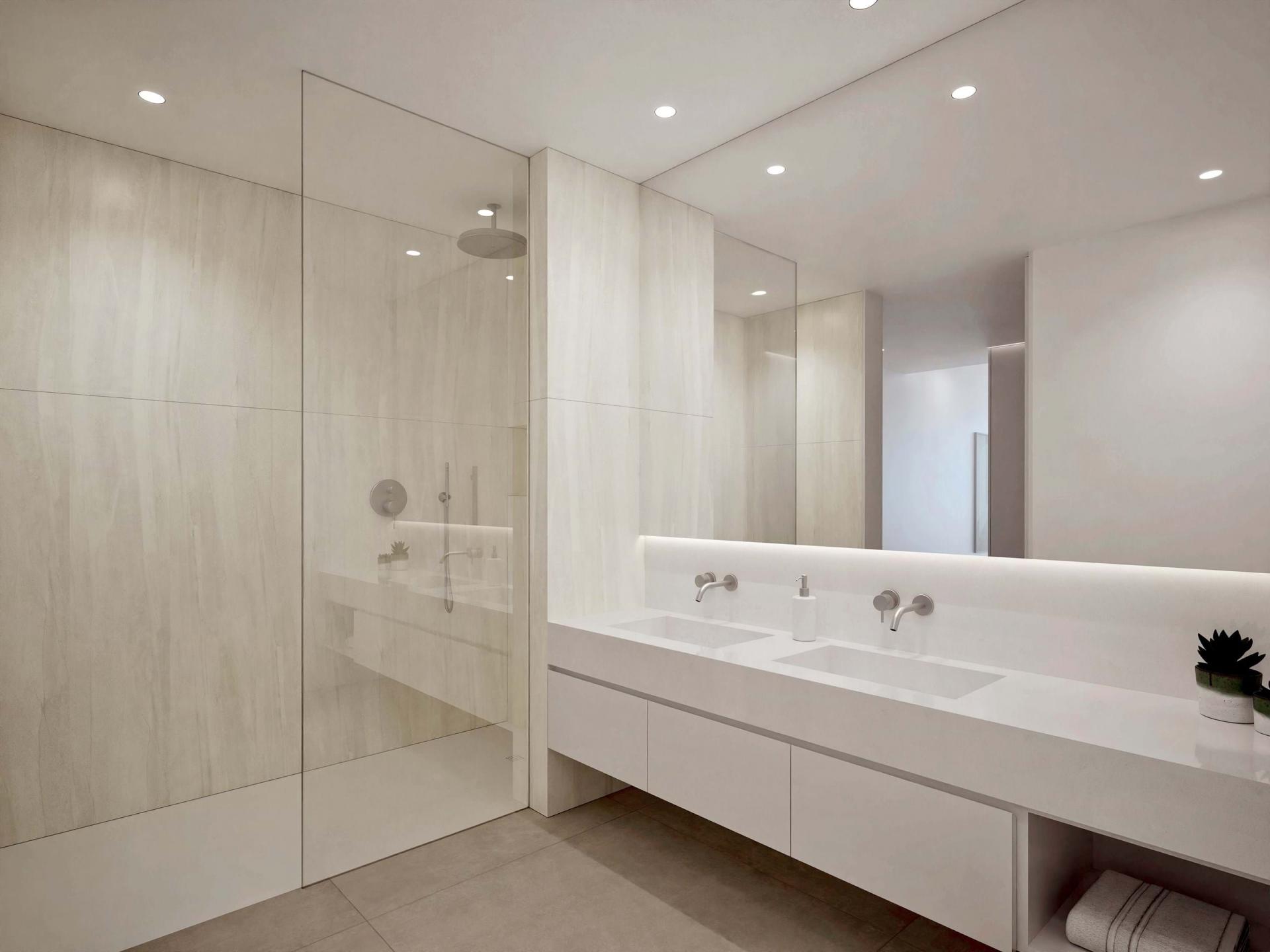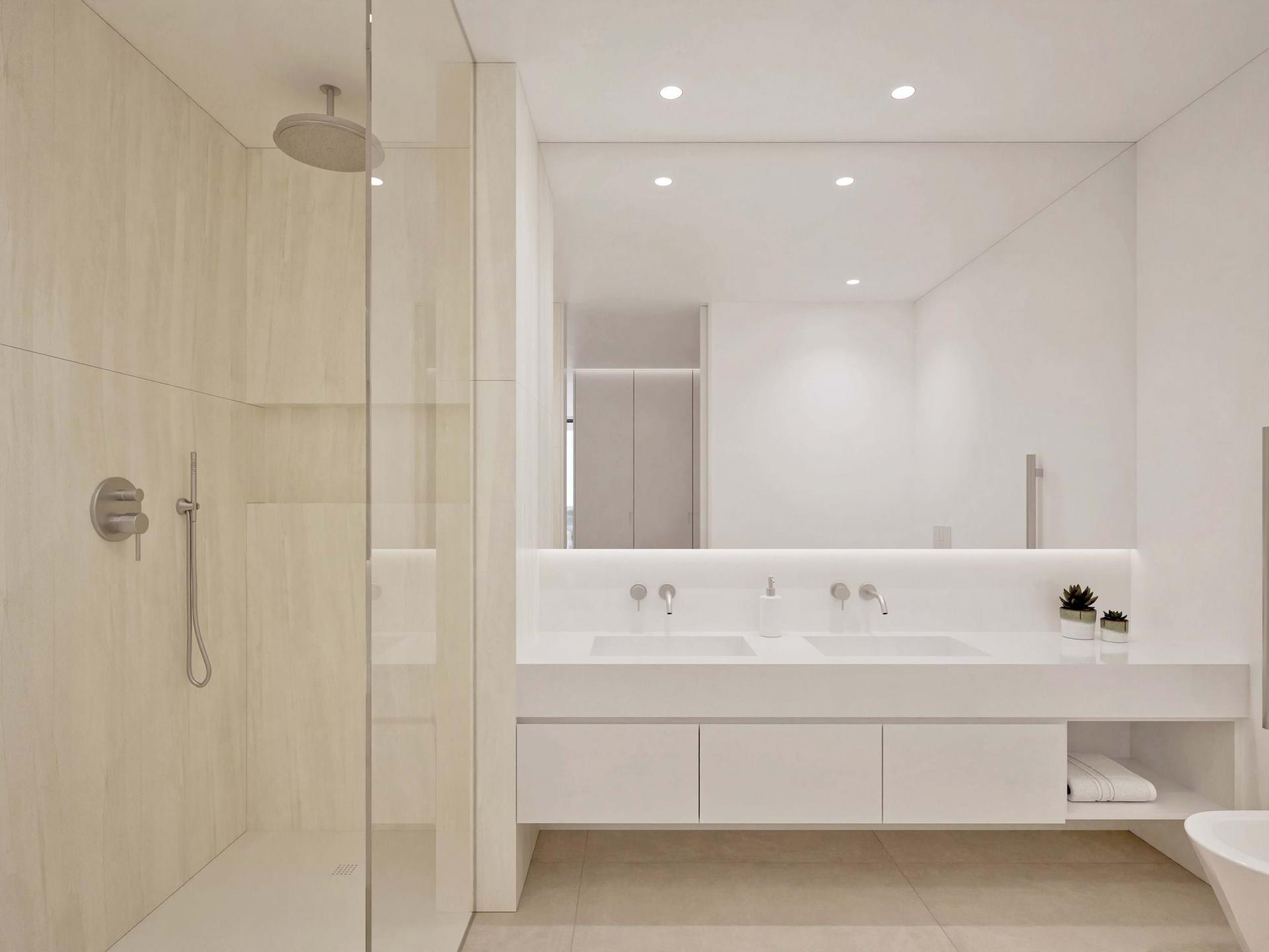 The homes are designed with a open-plan living areas, all finished to impeccable standards. The living space extends to a fabulous outdoor area, ideal for lounging by the private swimming pool and entertaining guests. This level also features a guest bathroom, a laundry room, and direct access to the garage.