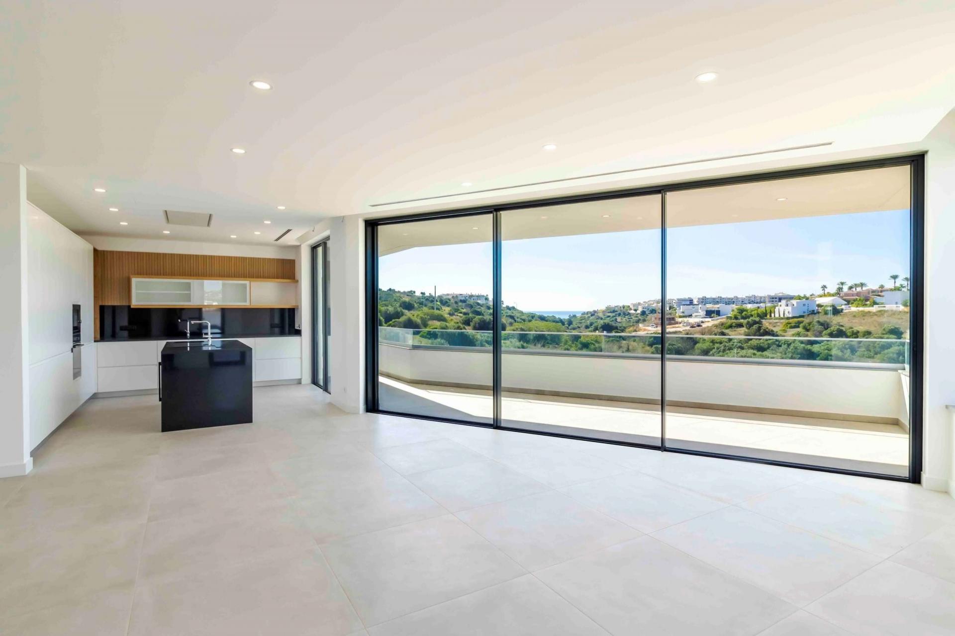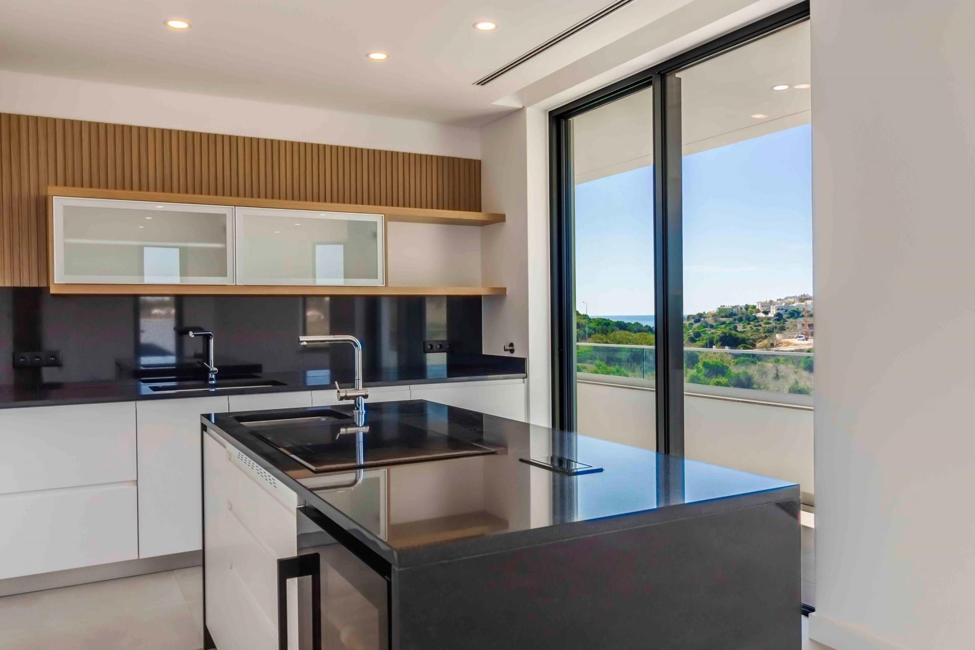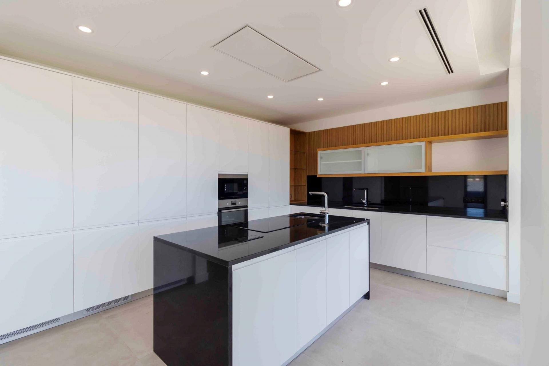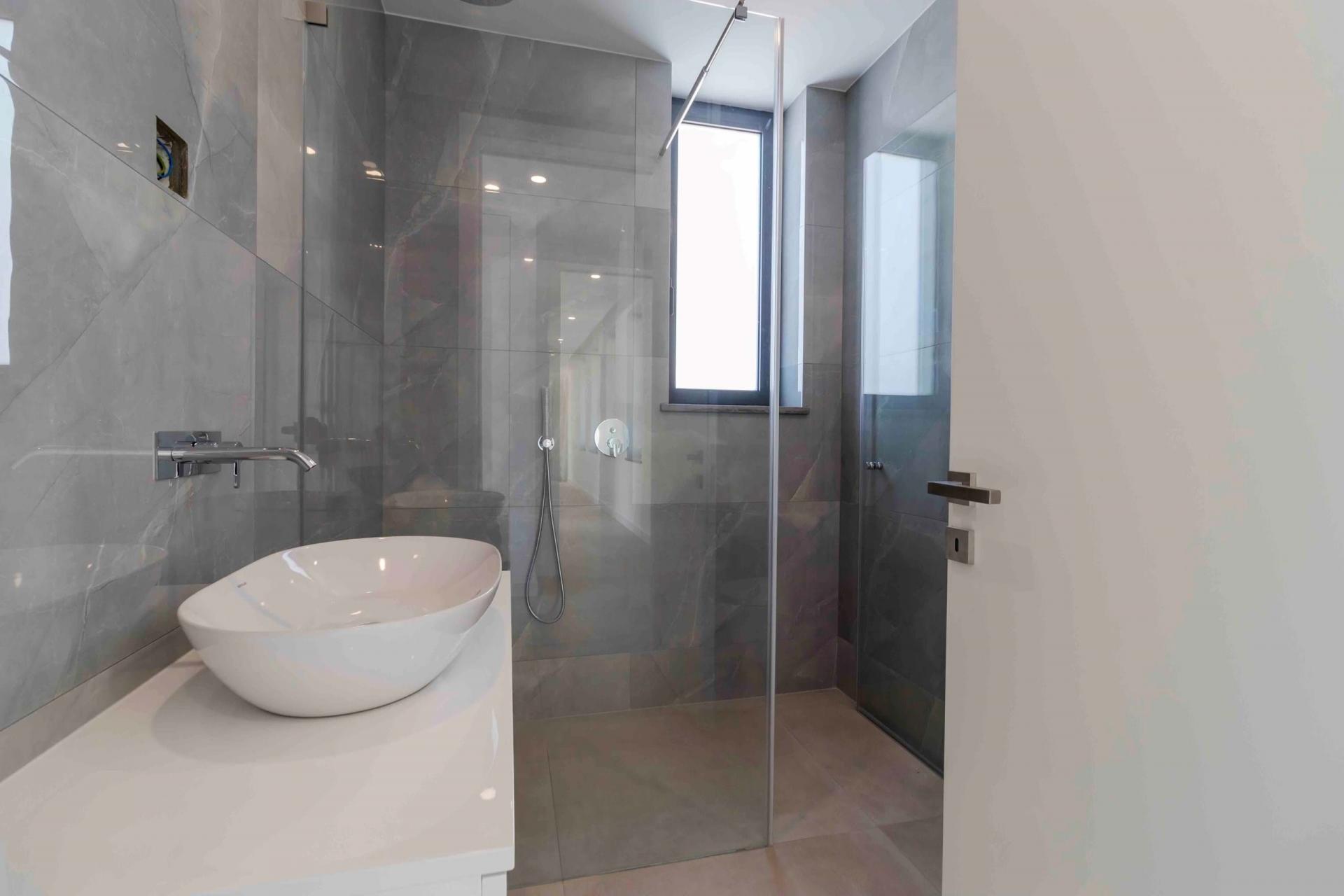 On the first floor, the kitchen, dining room, and living room are located in an open space layout, along with an office. All these areas have access to a large balcony with a barbecue area, where you can enjoy wonderful moments with family and friends, overlooking the sea and countryside.