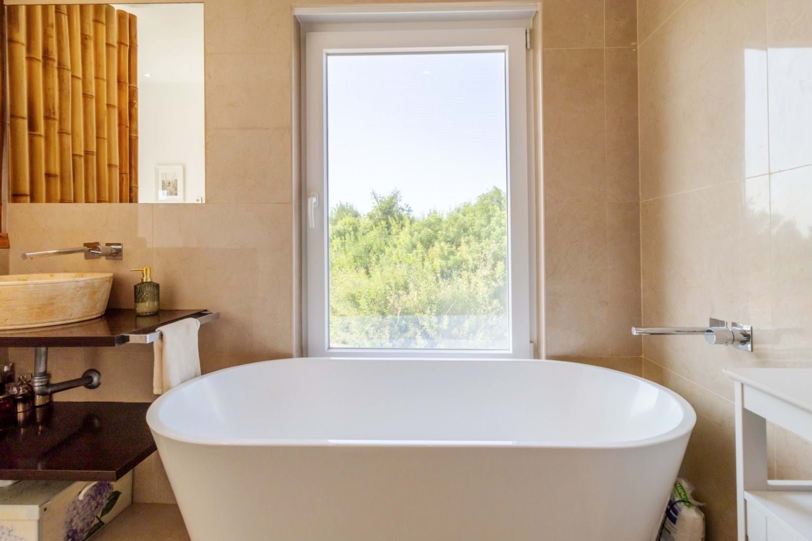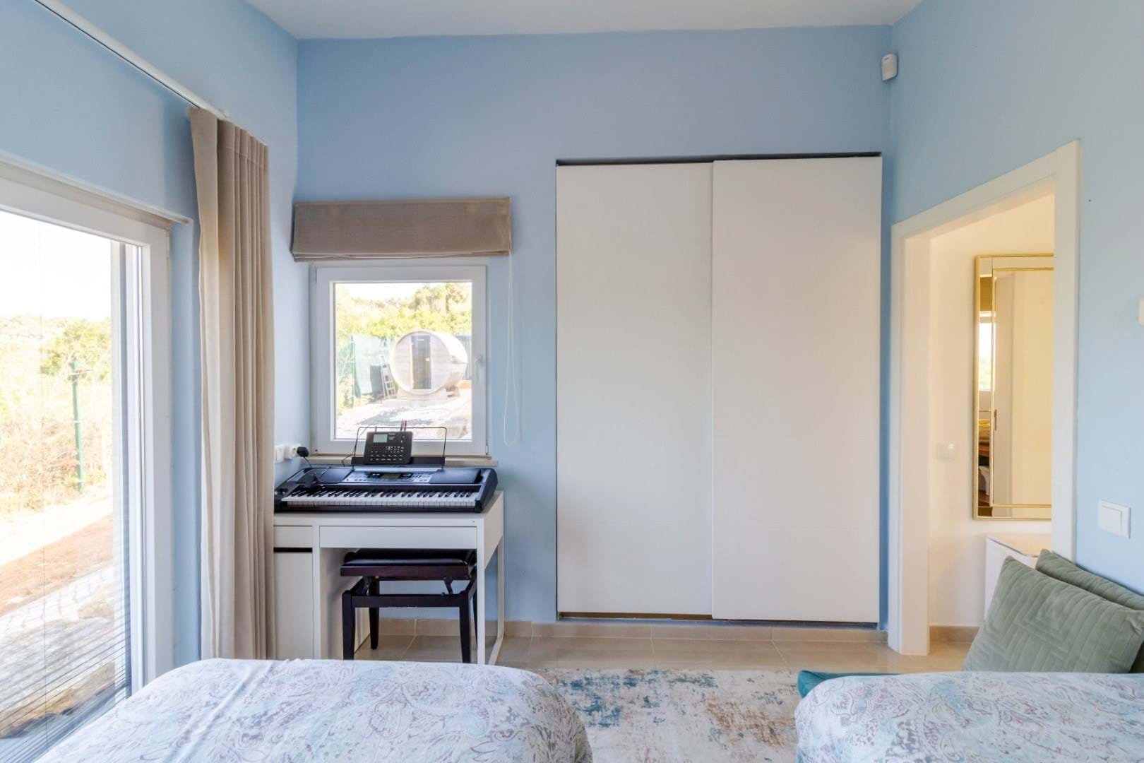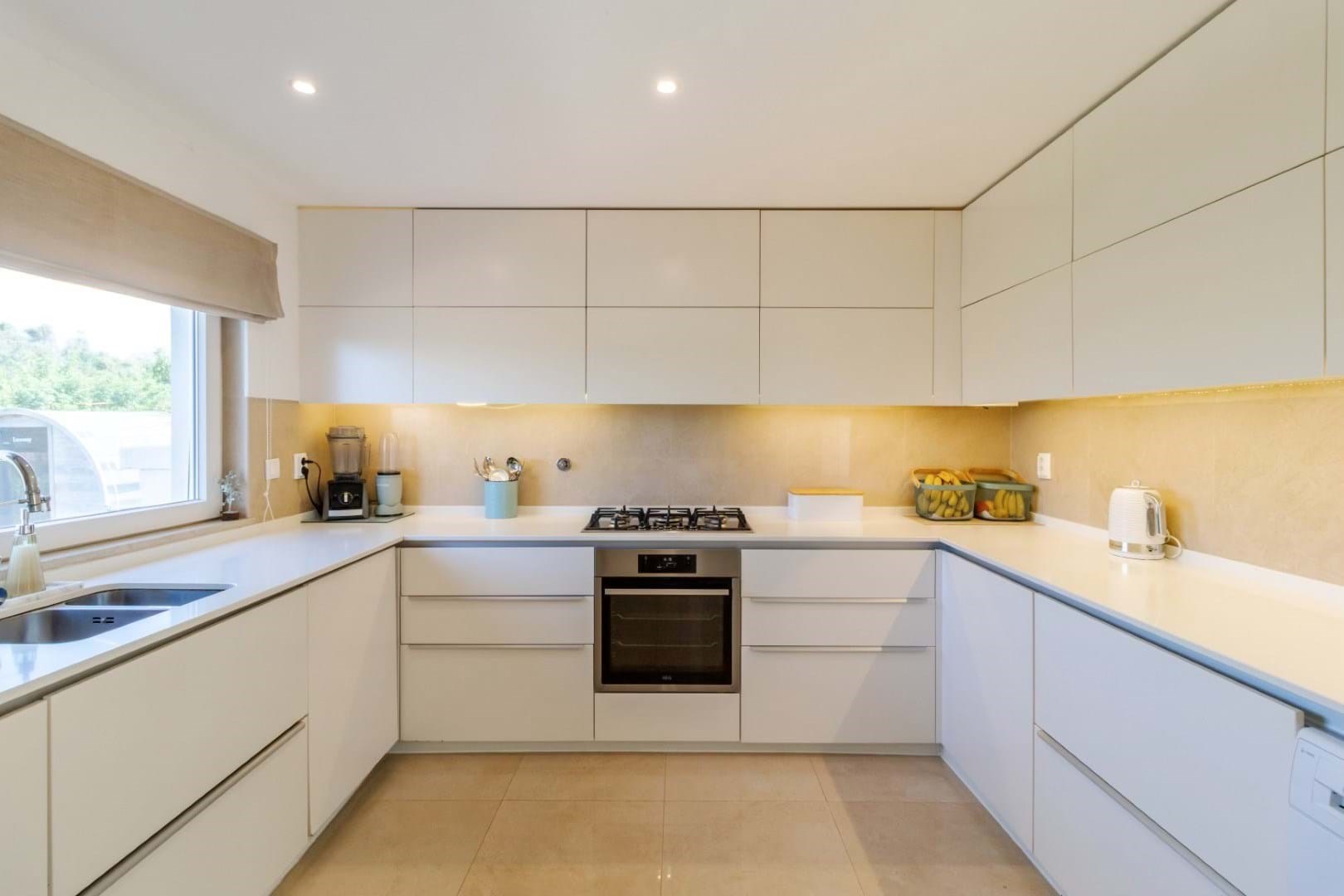 - The modern, fully equipped kitchen offers direct access to the side garden and features a picture window framing views of the Algarve countryside.