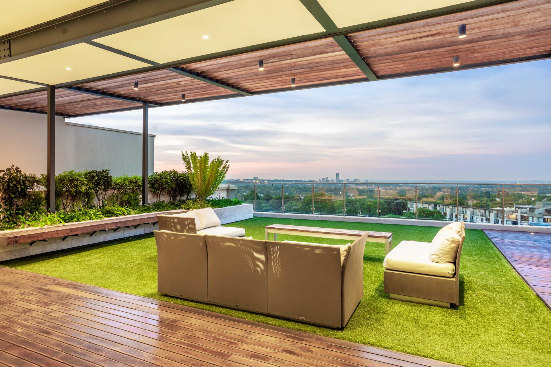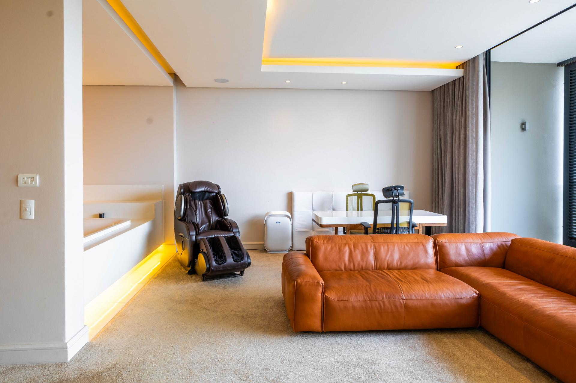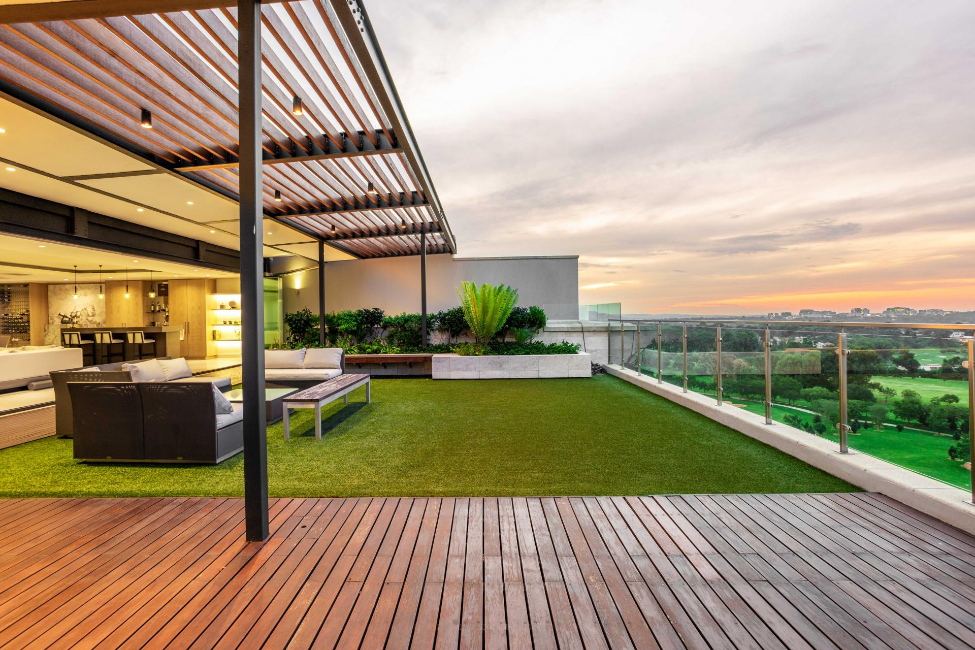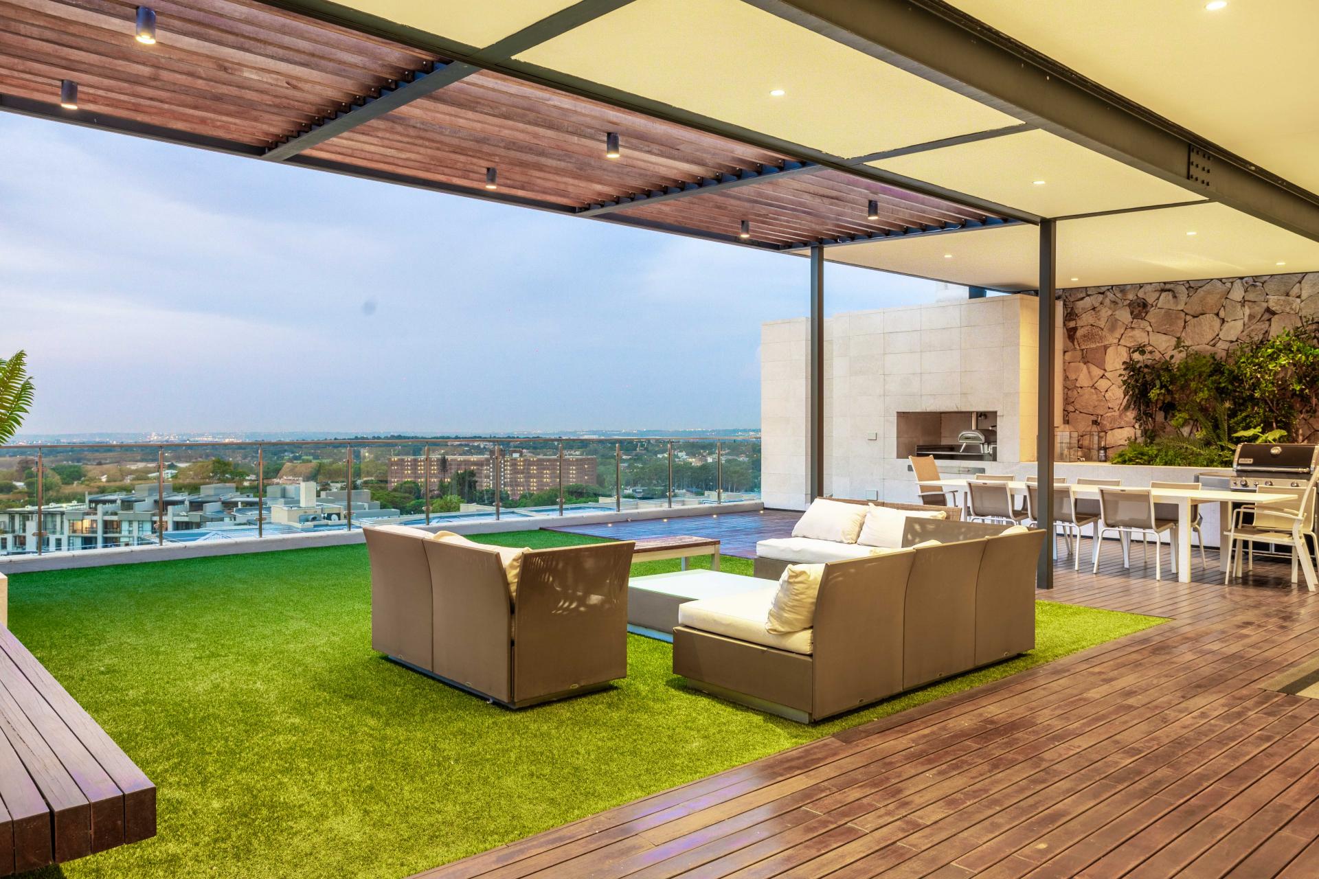 But it's not just the lavish interiors that will leave you in awe. Venture out onto the sprawling terrace, where breathtaking views of the golf course and beyond unfold before your eyes. Here, amidst the gentle breeze and the caress of the sun, your private rooftop heated splash pool awaits, promising moments of pure bliss and relaxation. As you explore further, discover the epitome of modern luxury and convenience. A sleek built-in braai area invites you to entertain in style and then cool off in your splash pool in the sky.