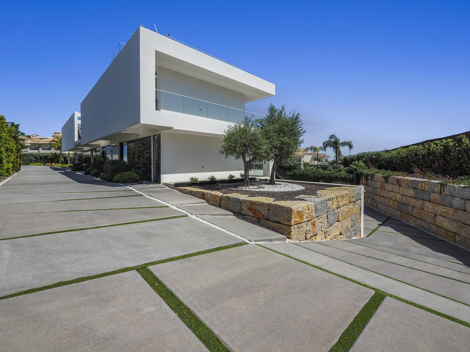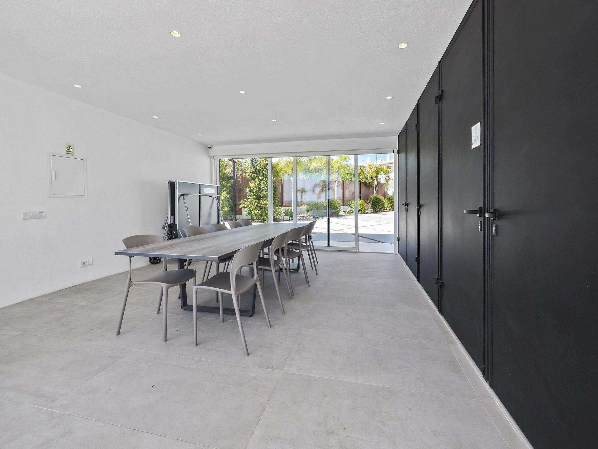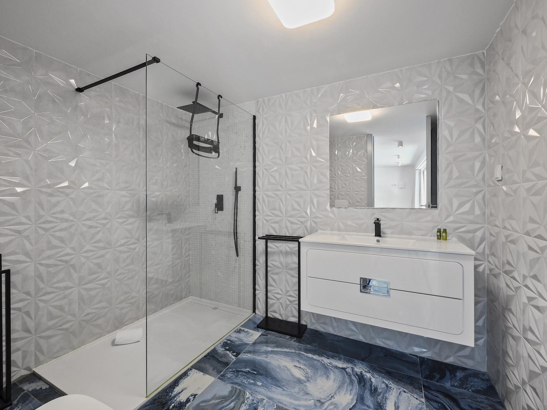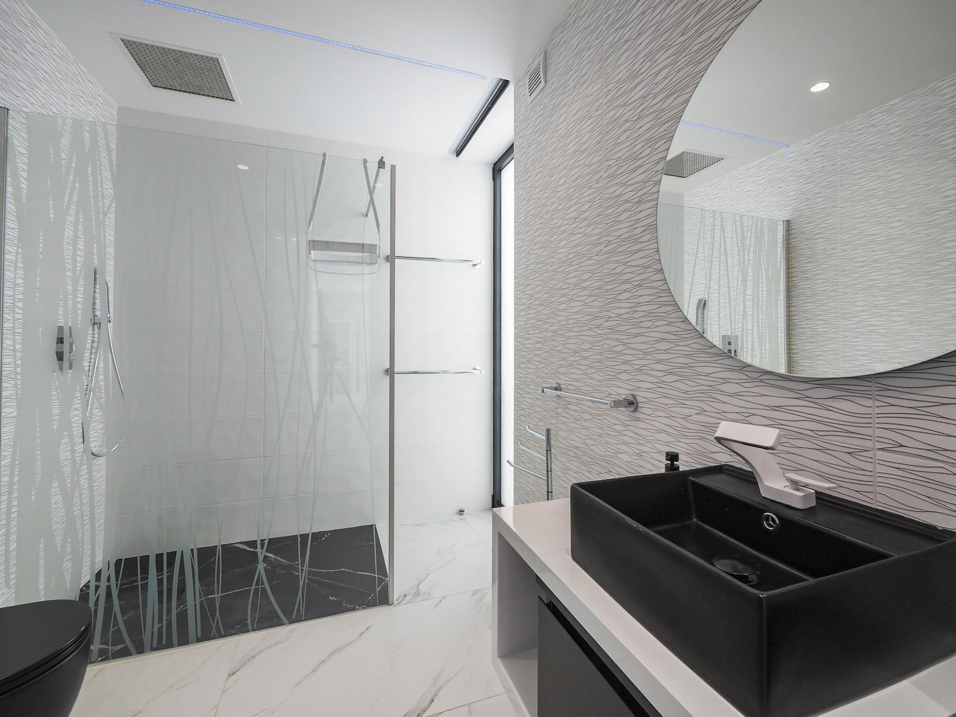 Designed with open-plan living in mind, the layout showcases soaring double-height ceilings, full-height glass sliding doors, and uninterrupted sea views throughout. The heart of the home is a dramatic lounge and dining area, framed by a sculptural double staircase and flowing naturally onto generous terraces. The fully equipped kitchen connects effortlessly with the outdoor entertaining zone which is both covered and uncovered. The ground floor includes a spacious en-suite bedroom—ideal for guests or single-level living. Upstairs, four additional en-suite bedrooms each offer private balconies and stunning ocean views. Outdoors, a heated saltwater pool stretches across multiple levels, complemented by a summer kitchen, BBQ, sound system, covered dining space, and firepit lounge. The rooftop terrace crowns the home, featuring a hot tub and panoramic views over the Atlantic—an idyllic setting for sunset gatherings or private retreats.