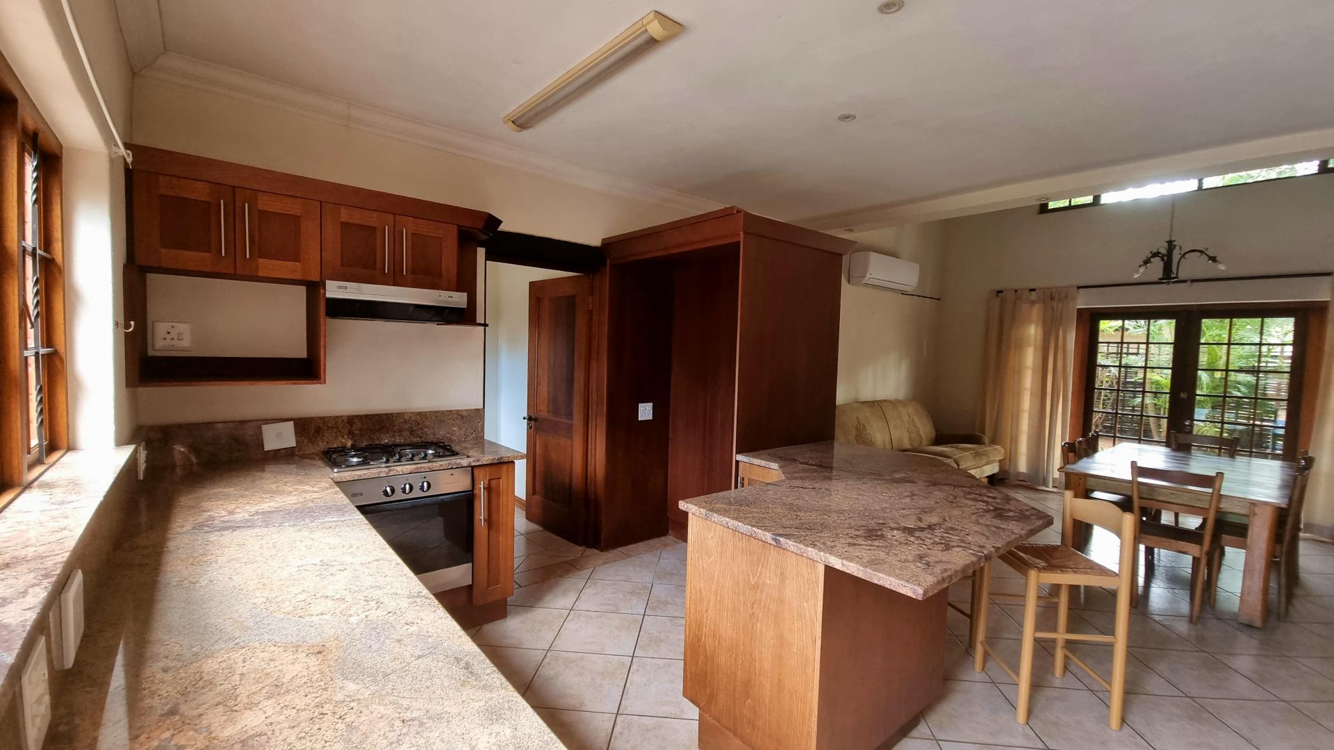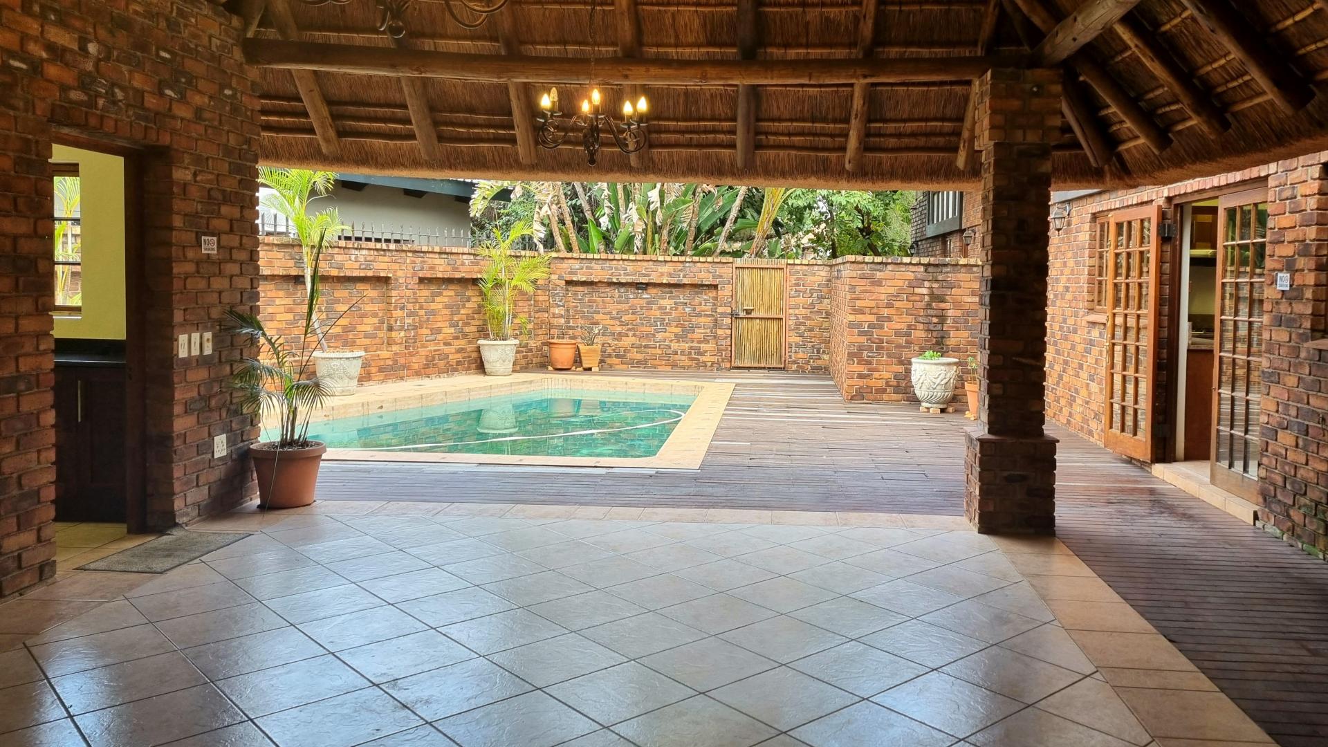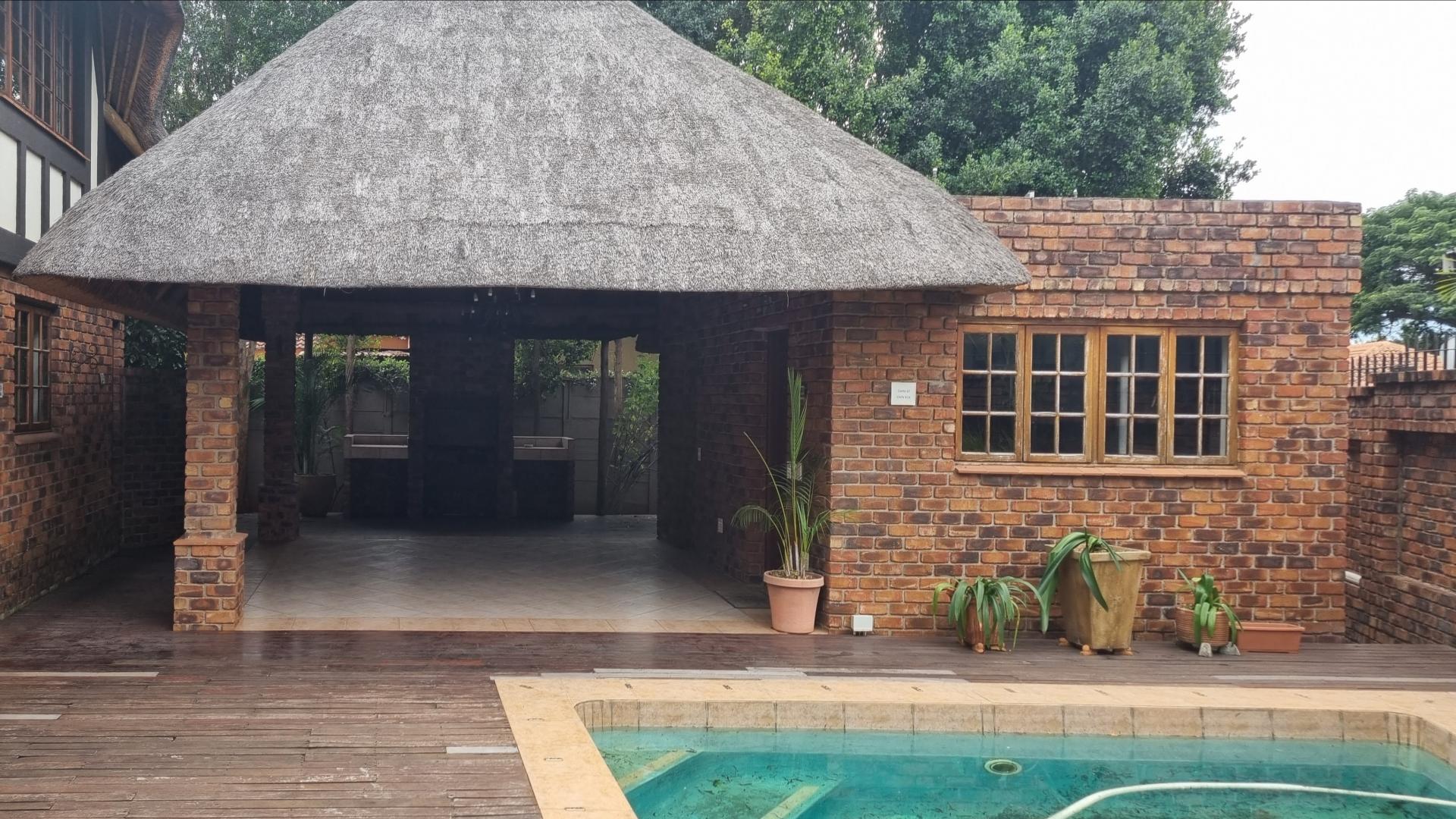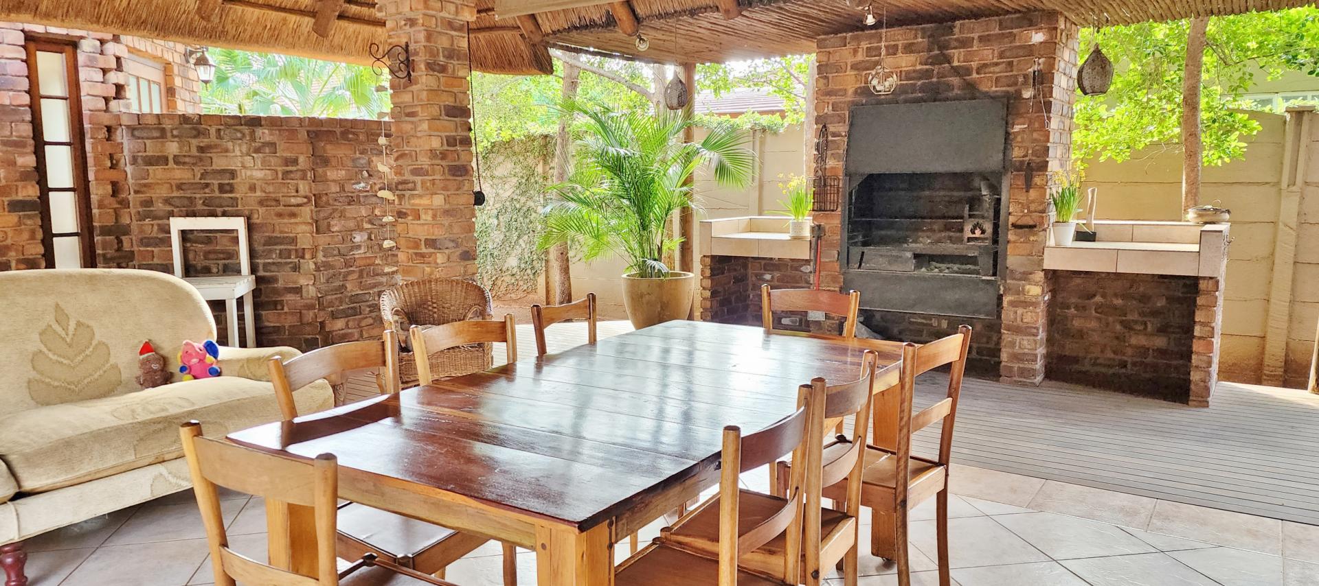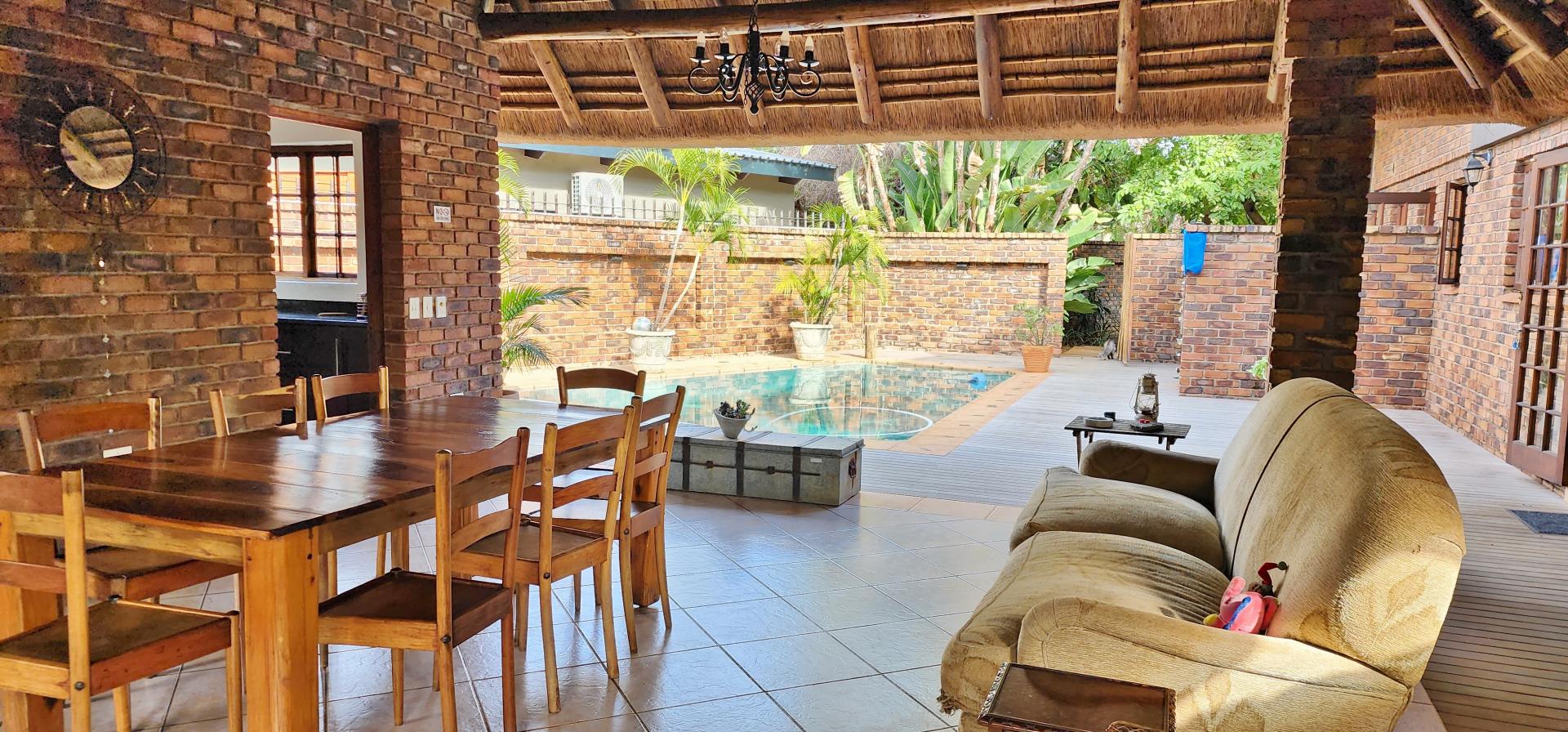 • Modern amenities: The property offers a beautifully equipped kitchen with wooden cupboards, granite tops, gas stove, an enclosed scullery and an open plan living area. The thatched lapa adjacent to the house is complimented by a built in braai, a wooden deck and a swimming pool. The outdoor kitchen and extra bathroom offers guests and staff additional facilities for ultimate comfort and enjoyment.