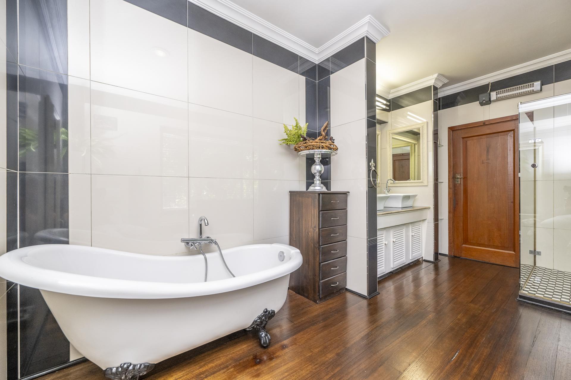 Step inside and be greeted by a spacious and inviting interior. 5 Beautiful large bedrooms are to the south of the home with a private lounge for those cozy family nights. The primary bedroom has a private balcony that looks over the beautiful Yellowwood tree and garden. The adjoining en-suite with its spa-like features is the best place to soak and relax after a hard day of work.