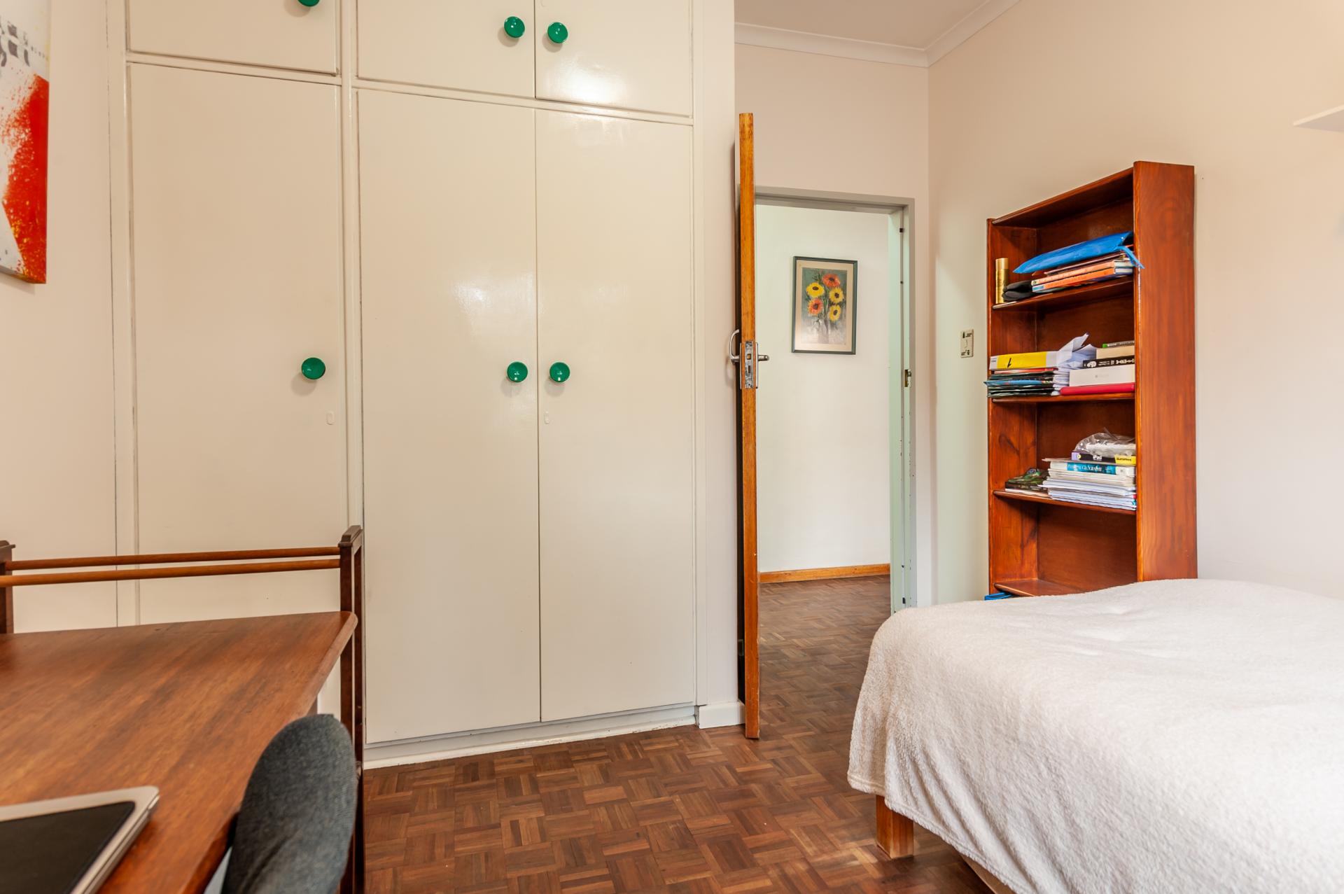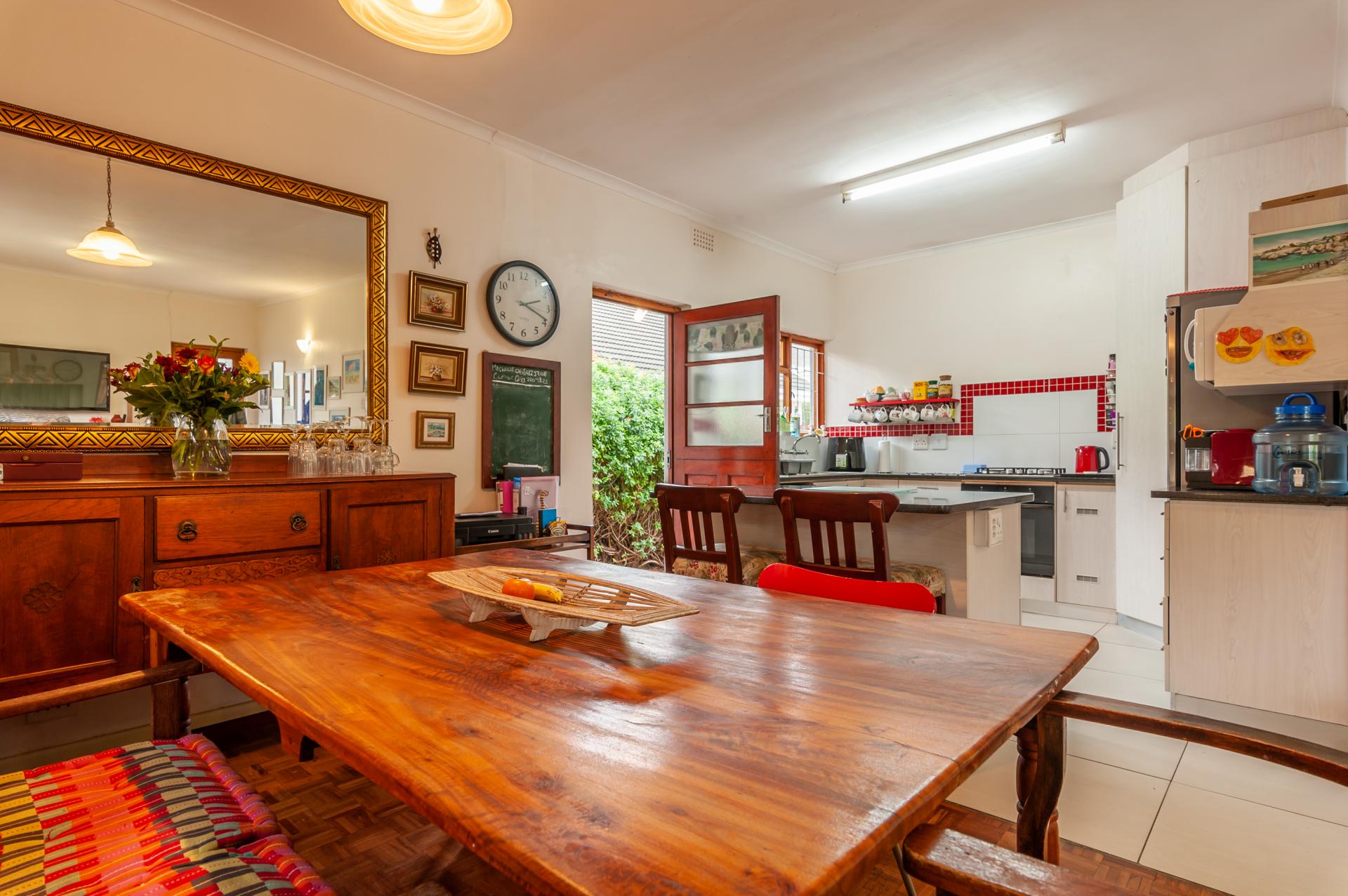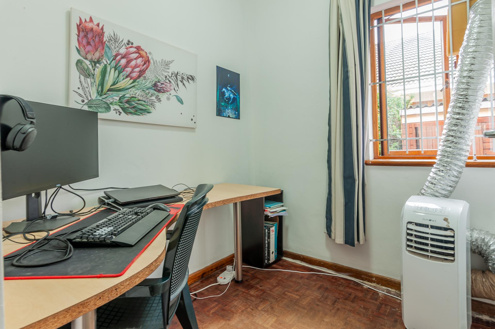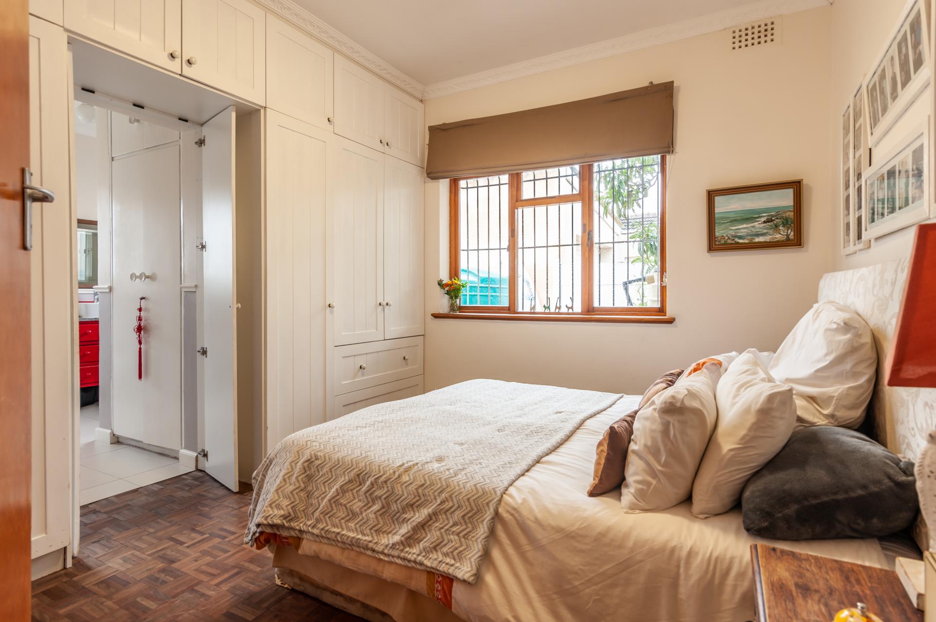 Well loved family home close to schools with separate entrance garden cottage (en-suite bedroom, lounge with kitchenette, gas hob and shower). Main house is warm and welcoming with parquet floors throughout. Open plan living lounge/dining to granite topped kitchen with gas hob and electric oven. Updated full bathroom serves three of the four bedrooms and master has spacious en-suite. Fourth bedroom has been divided into two work areas. Enclosed garden with pool. Single automated garage with two parkings behind gate. The home ticks all the boxes and has many extras.