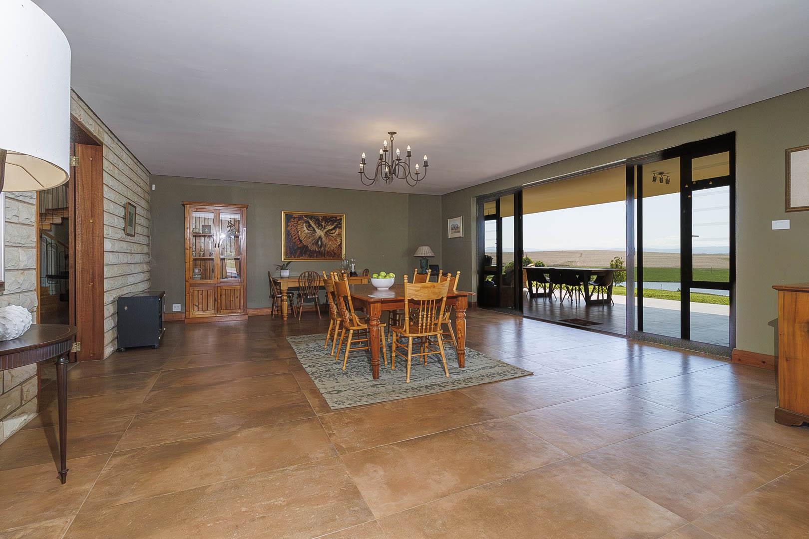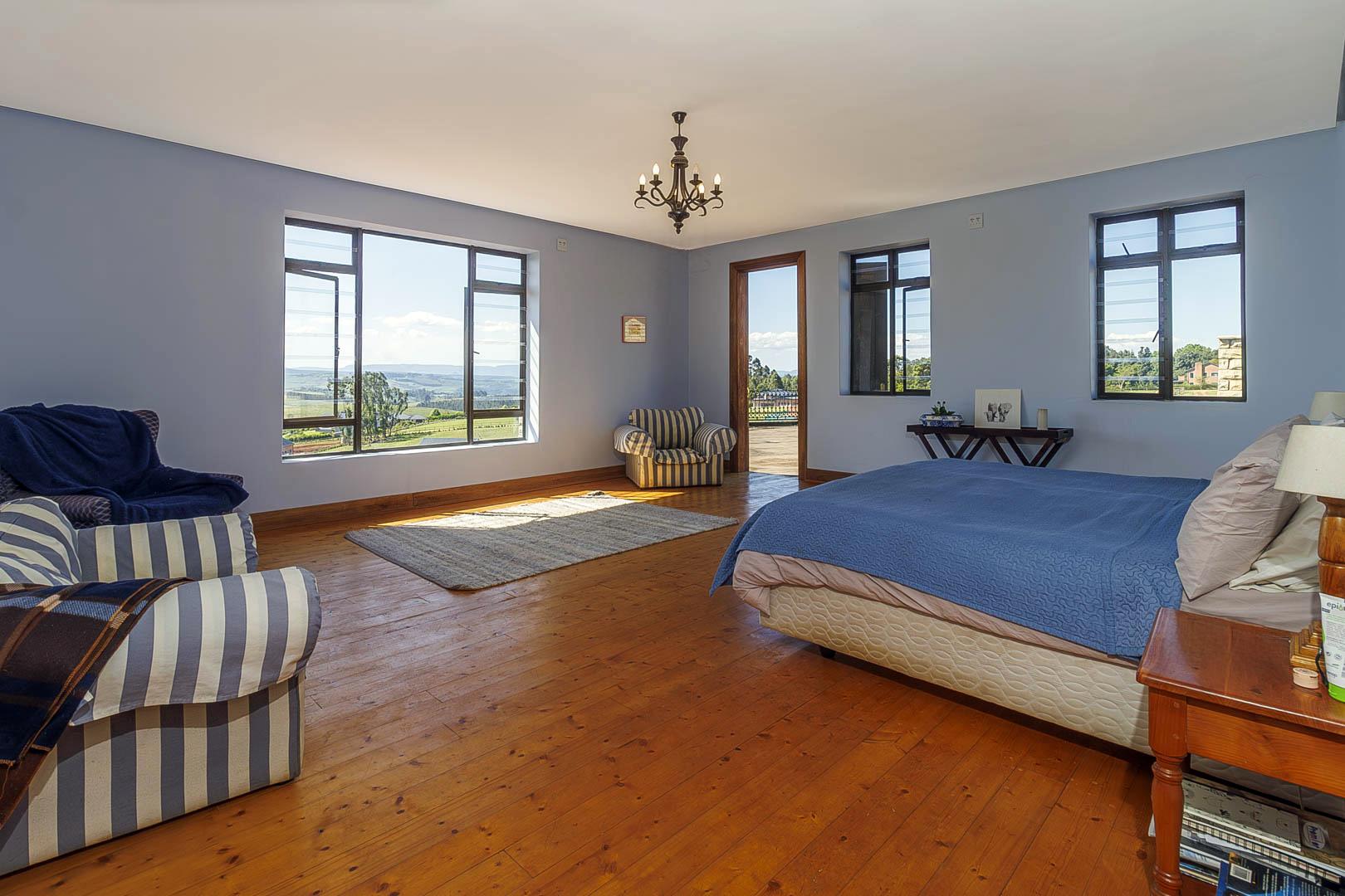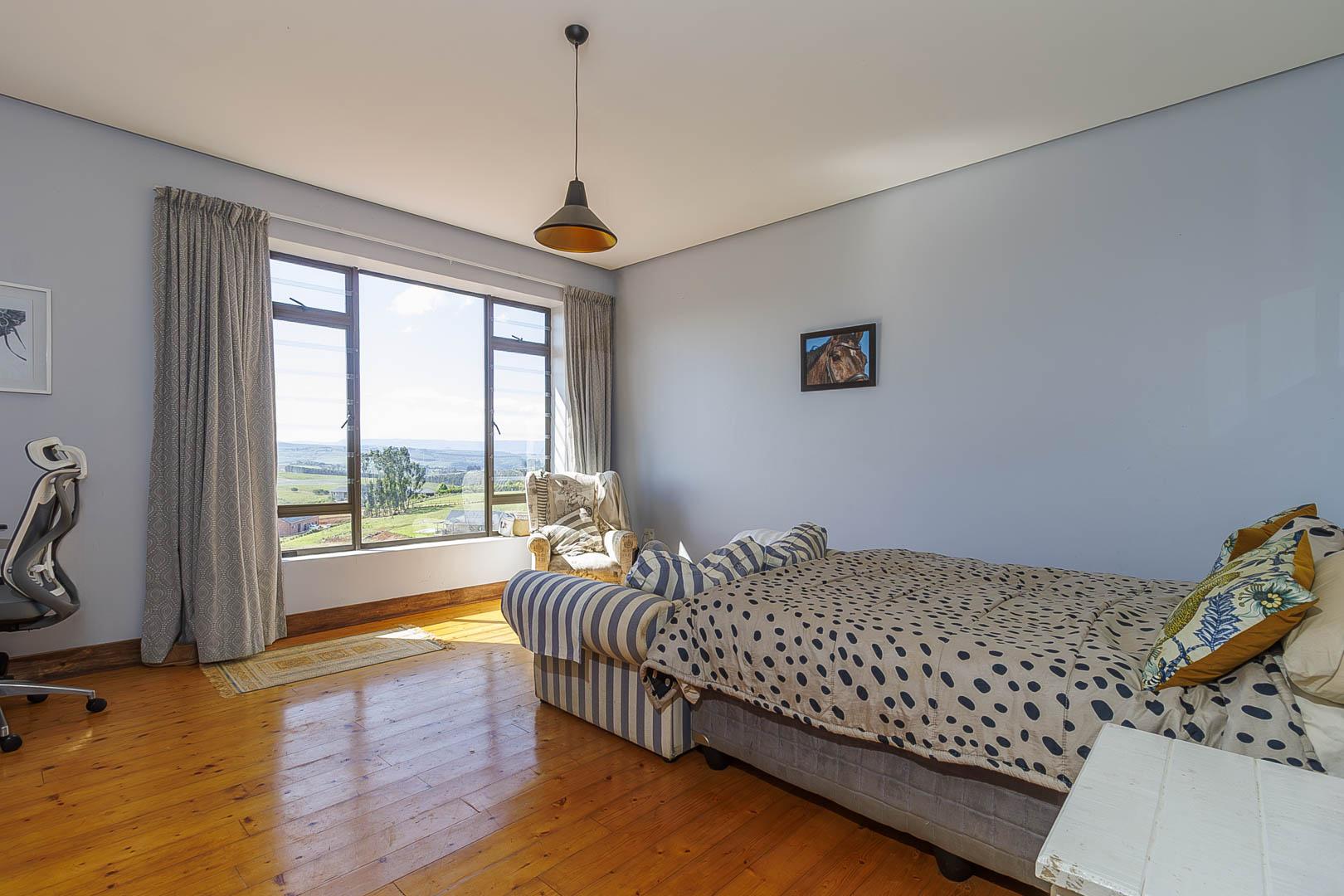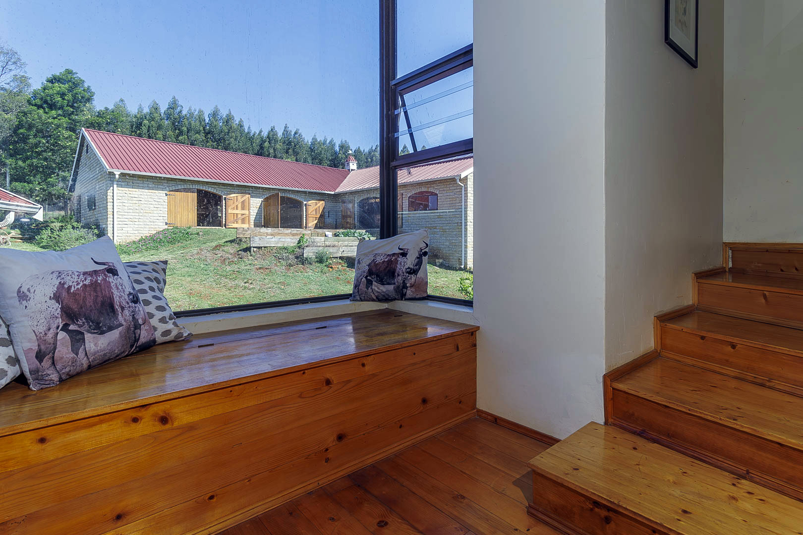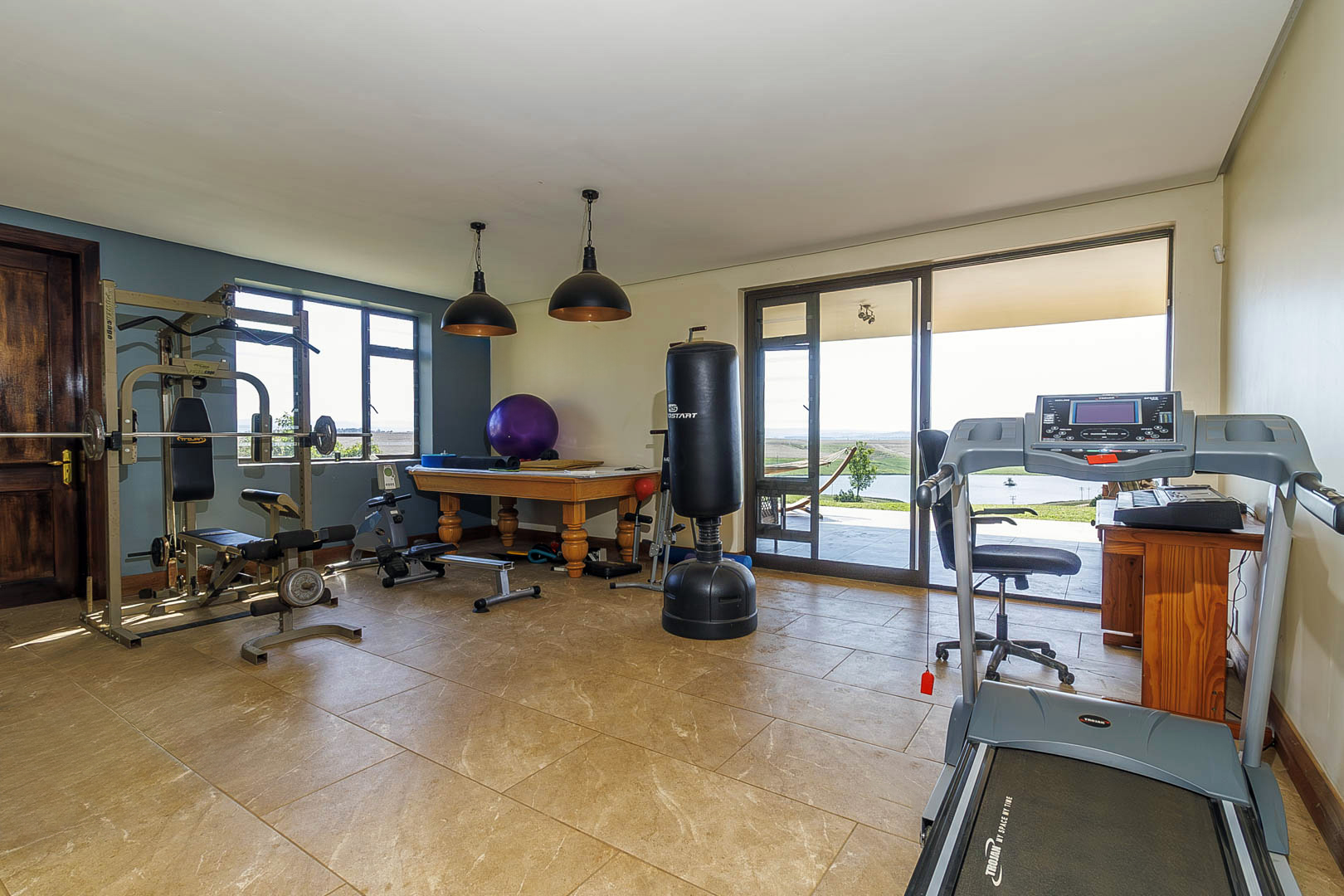 This stunning property, built with an equestrian lifestyle in mind, offers breathtaking views of the Drakensberg and prioritizes family safety. It boasts spacious living and entertainment areas, including a grand foyer, a guest loo with cloakroom, a large office, and two reception rooms. The TV lounge features a jet master fireplace, underfloor heating, and panoramic views. The banquet-sized dining room and lounges open to a 90m² patio with a built-in braai, while the gym also doubles as an entertainment space leading to the patio.