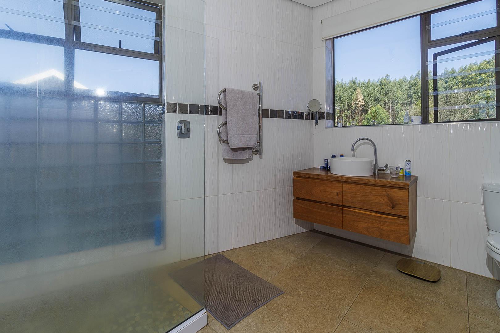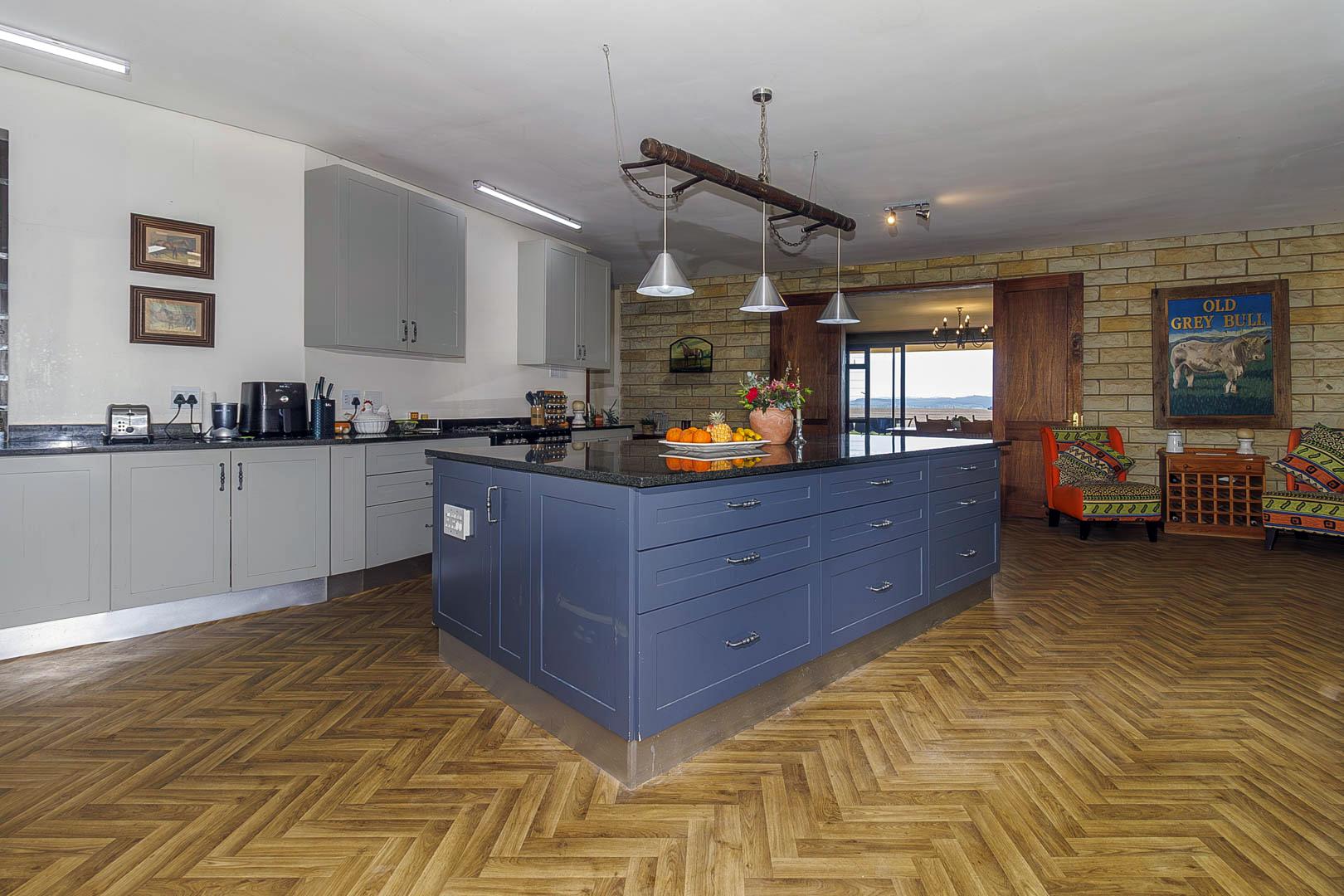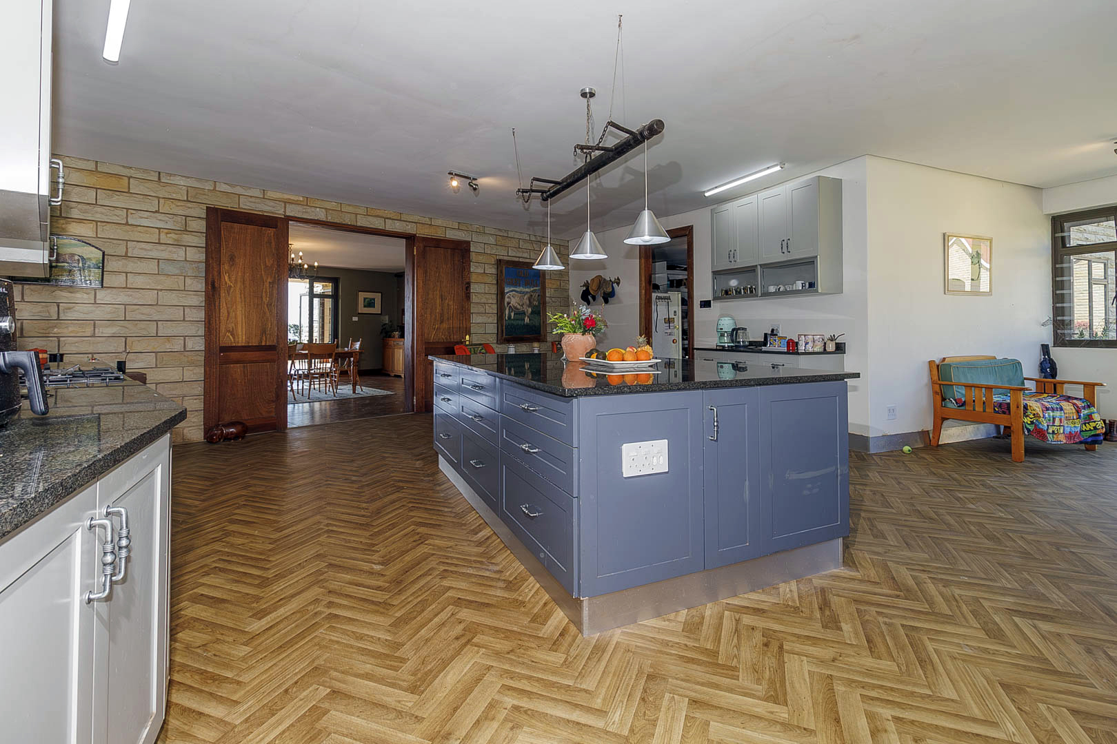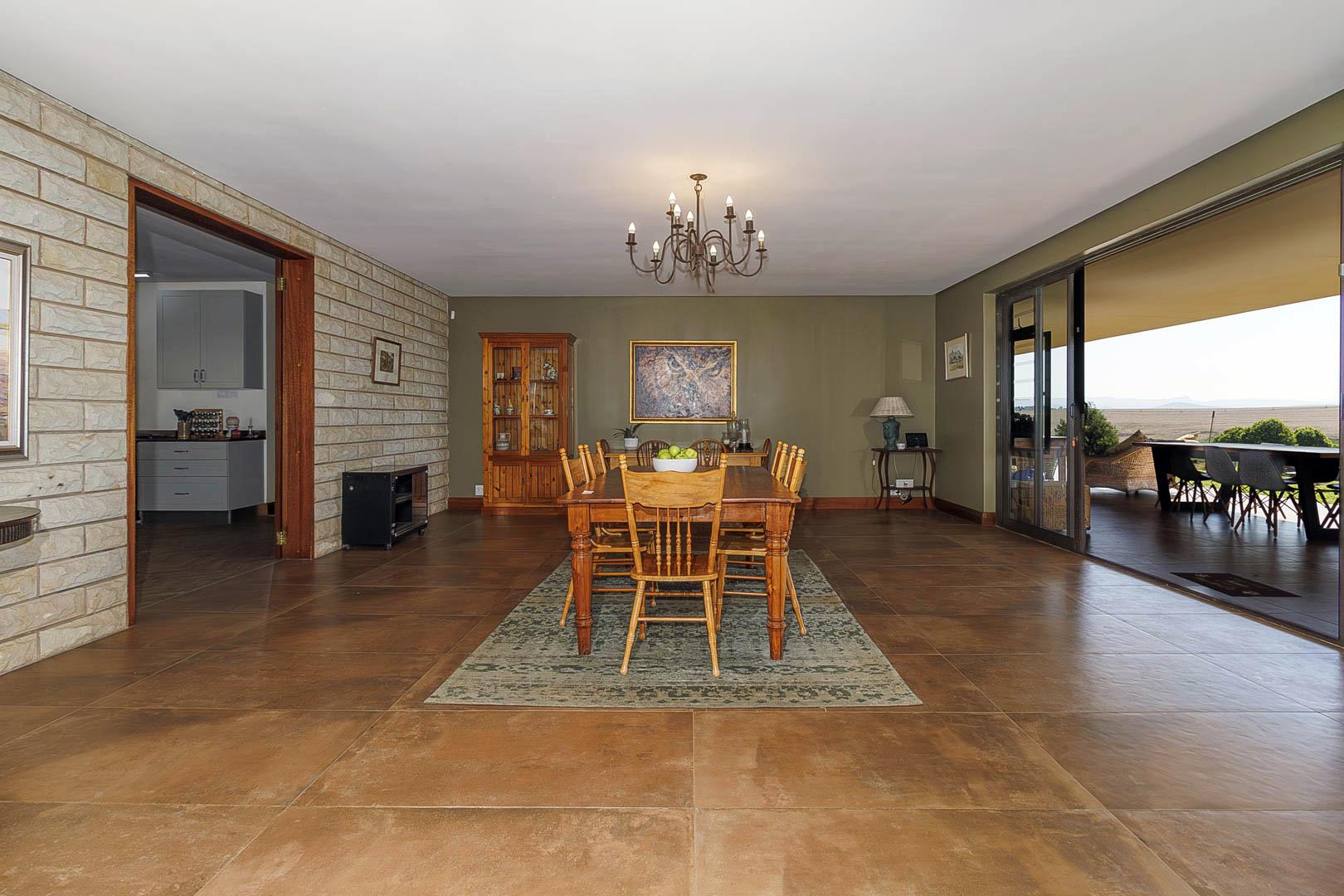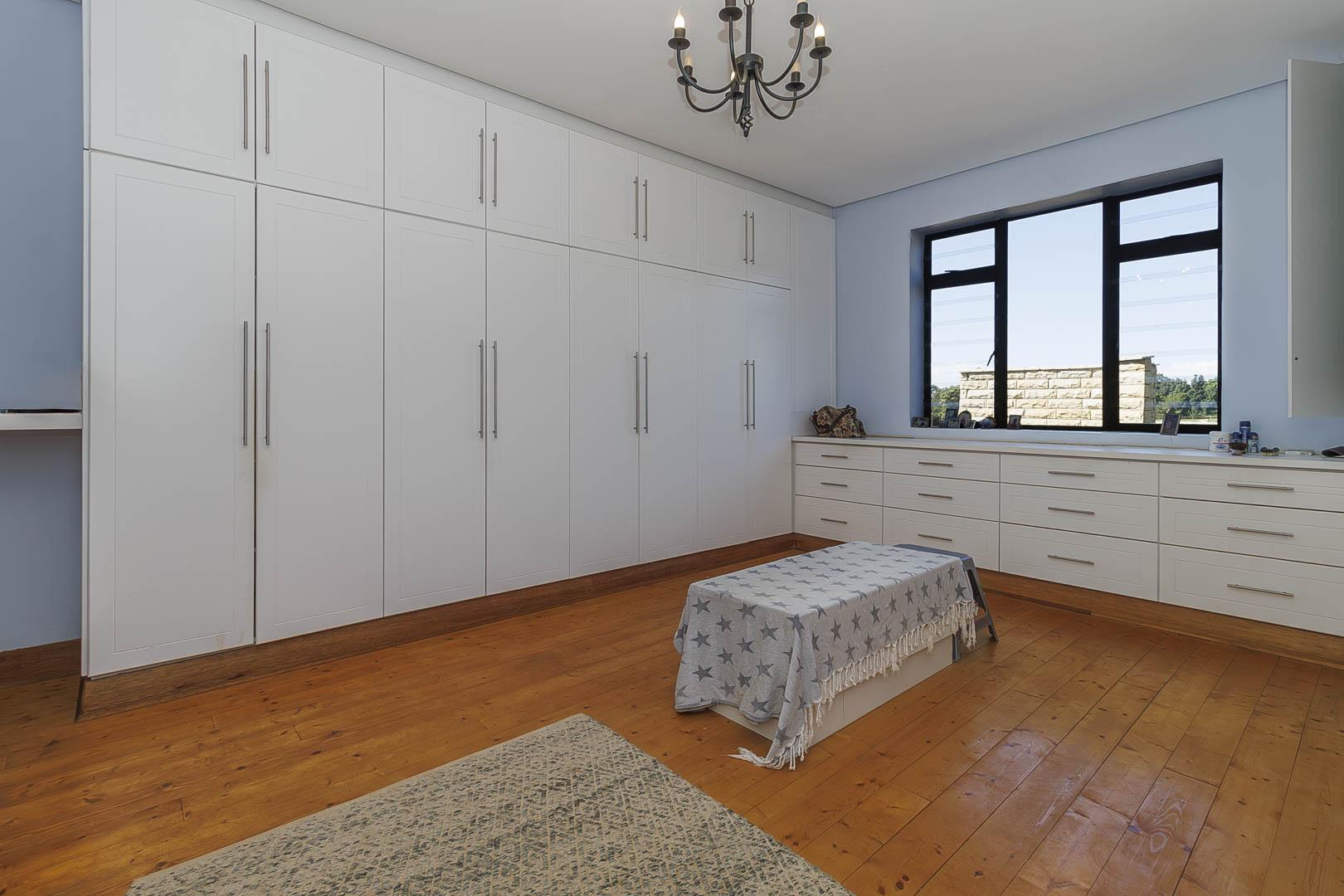 This stunning property, built with an equestrian lifestyle in mind, offers breathtaking views of the Drakensberg and prioritizes family safety. It boasts spacious living and entertainment areas, including a grand foyer, a guest loo with cloakroom, a large office, and two reception rooms. The TV lounge features a jet master fireplace, underfloor heating, and panoramic views. The banquet-sized dining room and lounges open to a 90m² patio with a built-in braai, while the gym also doubles as an entertainment space leading to the patio.