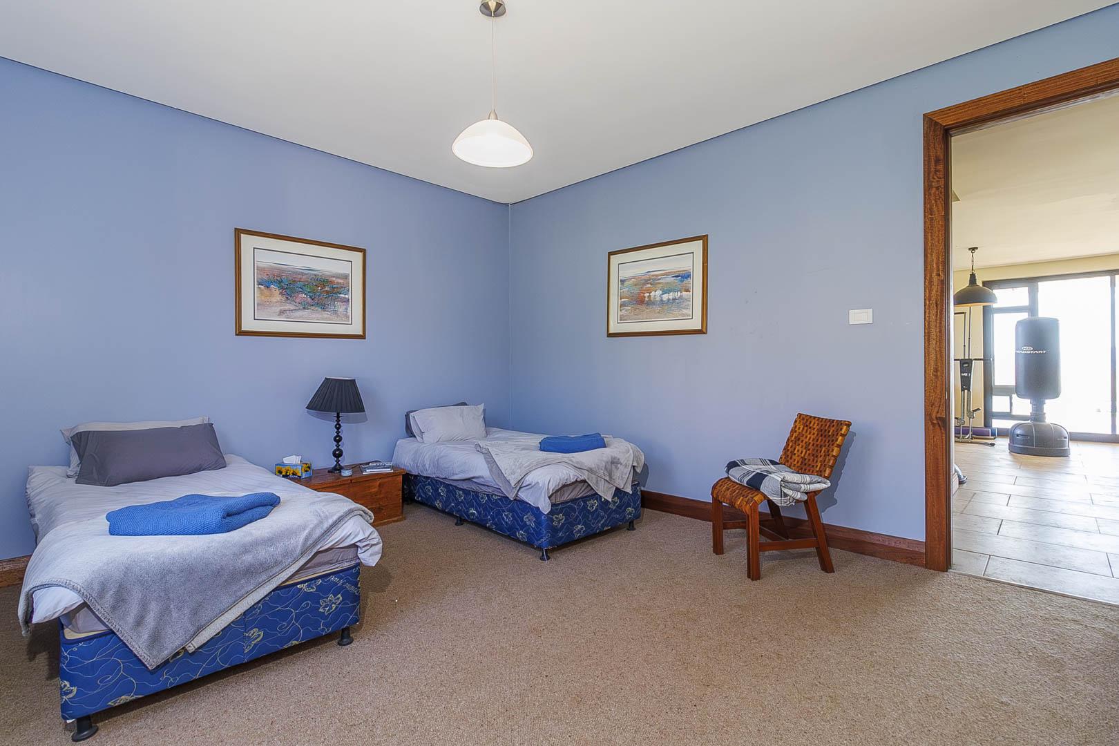 The kitchen is highly functional with a mudroom, scullery, laundry, and walk-in pantry. The property includes a downstairs guest suite, additional en-suite bedrooms, and a main bedroom with a rumpus room, dressing room, and his-and-hers en-suites. Security features include Clearview fencing, double electric fencing, an alarm system, and Roboguards.