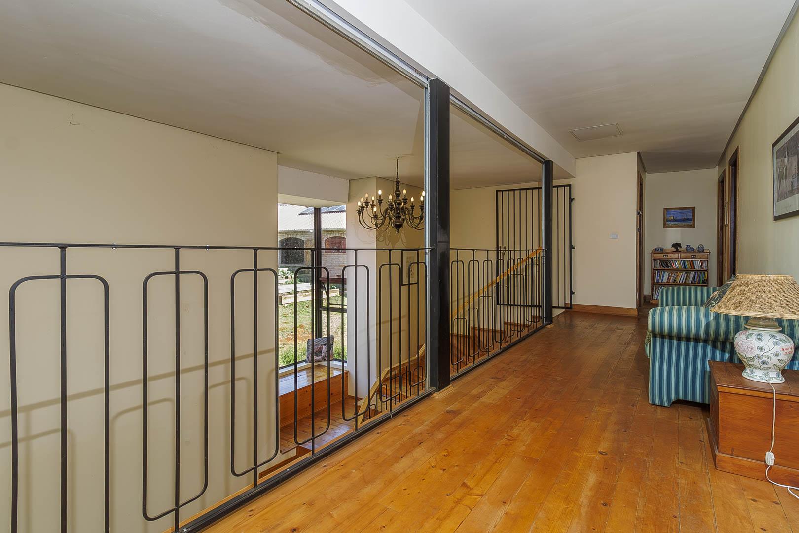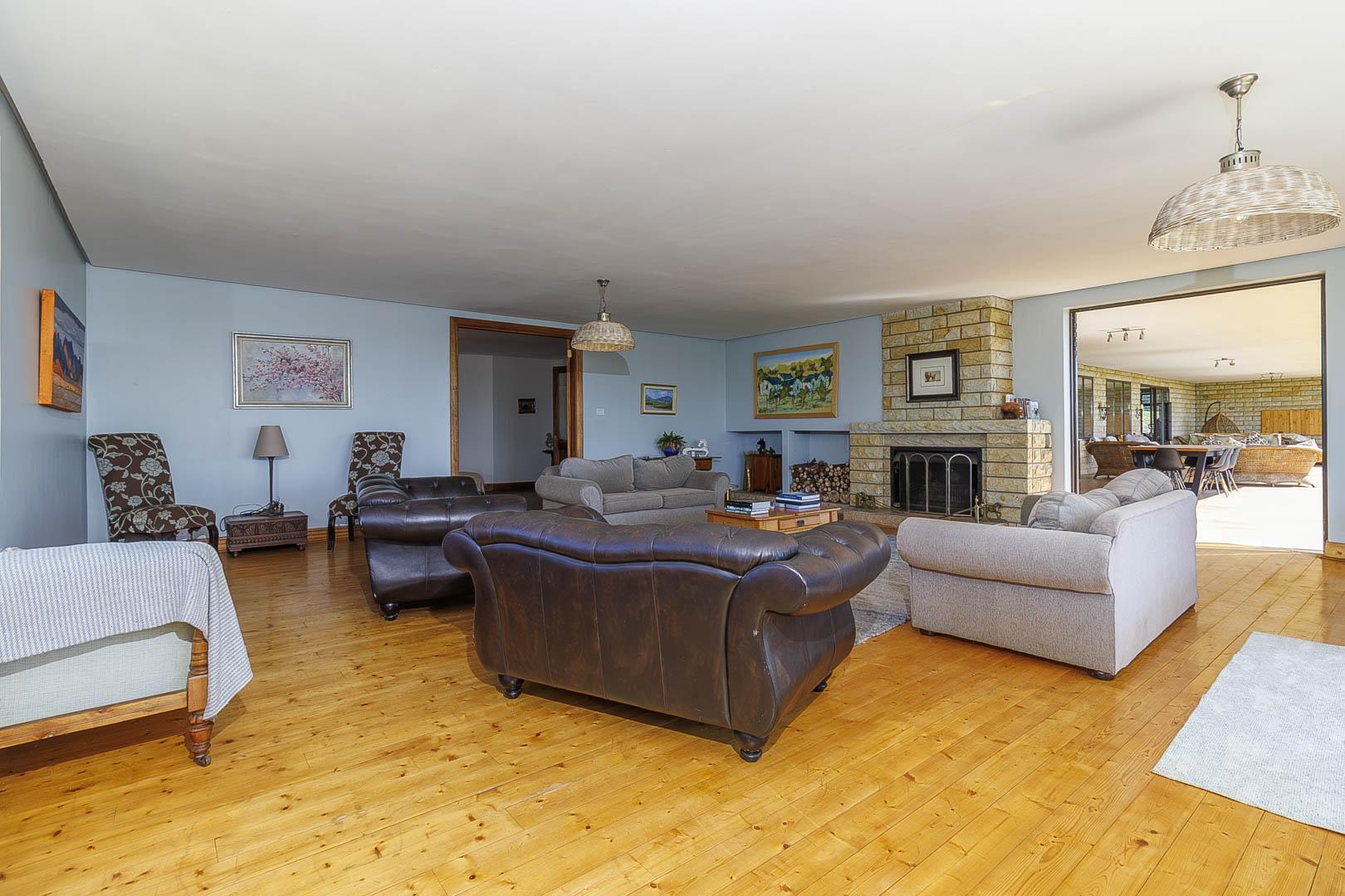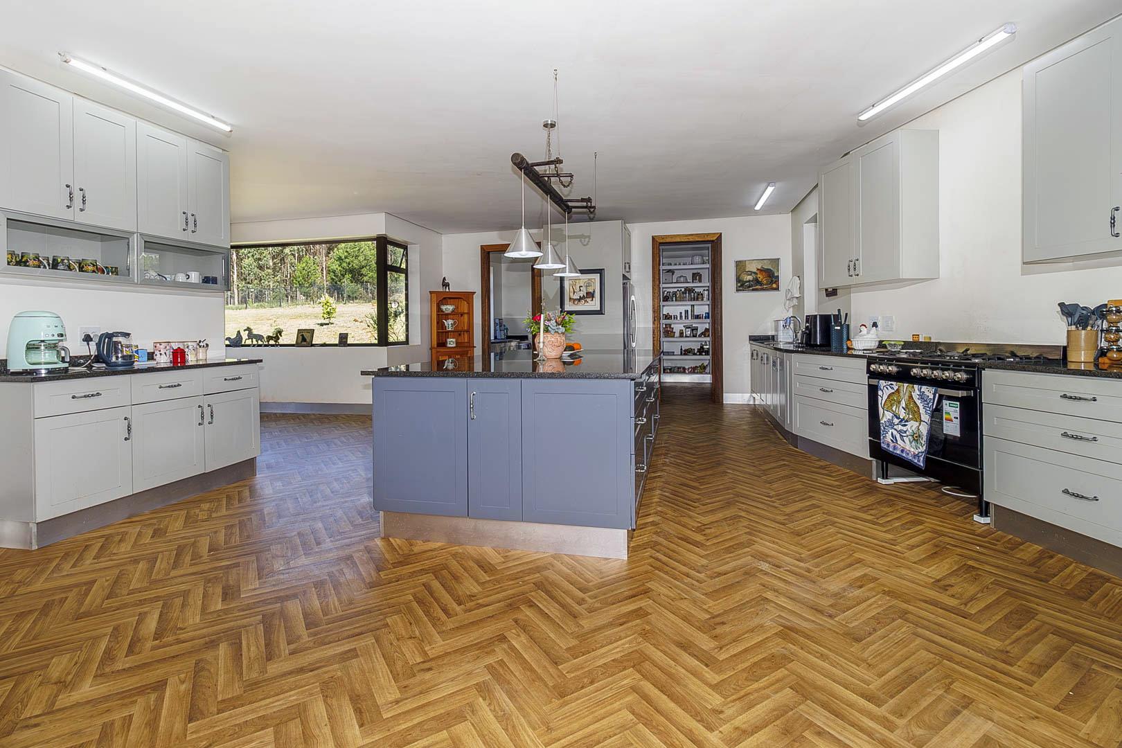 Additional features include two double automated garages, a 463m² workshop, 67m² basement storage, a potting room, and potential for a two-bedroom cottage. Equestrian facilities include eight stables, a wash bay, a tack room, a carport for a horse box, a feed room, and a hay barn. Staff accommodations consist of a flat with a bedroom, kitchen, and en-suite, plus communal facilities. Energy efficiency is ensured with aluminum windows, 20 solar panels, an 8kVA inverter, and a 20,000-litre backup water supply.