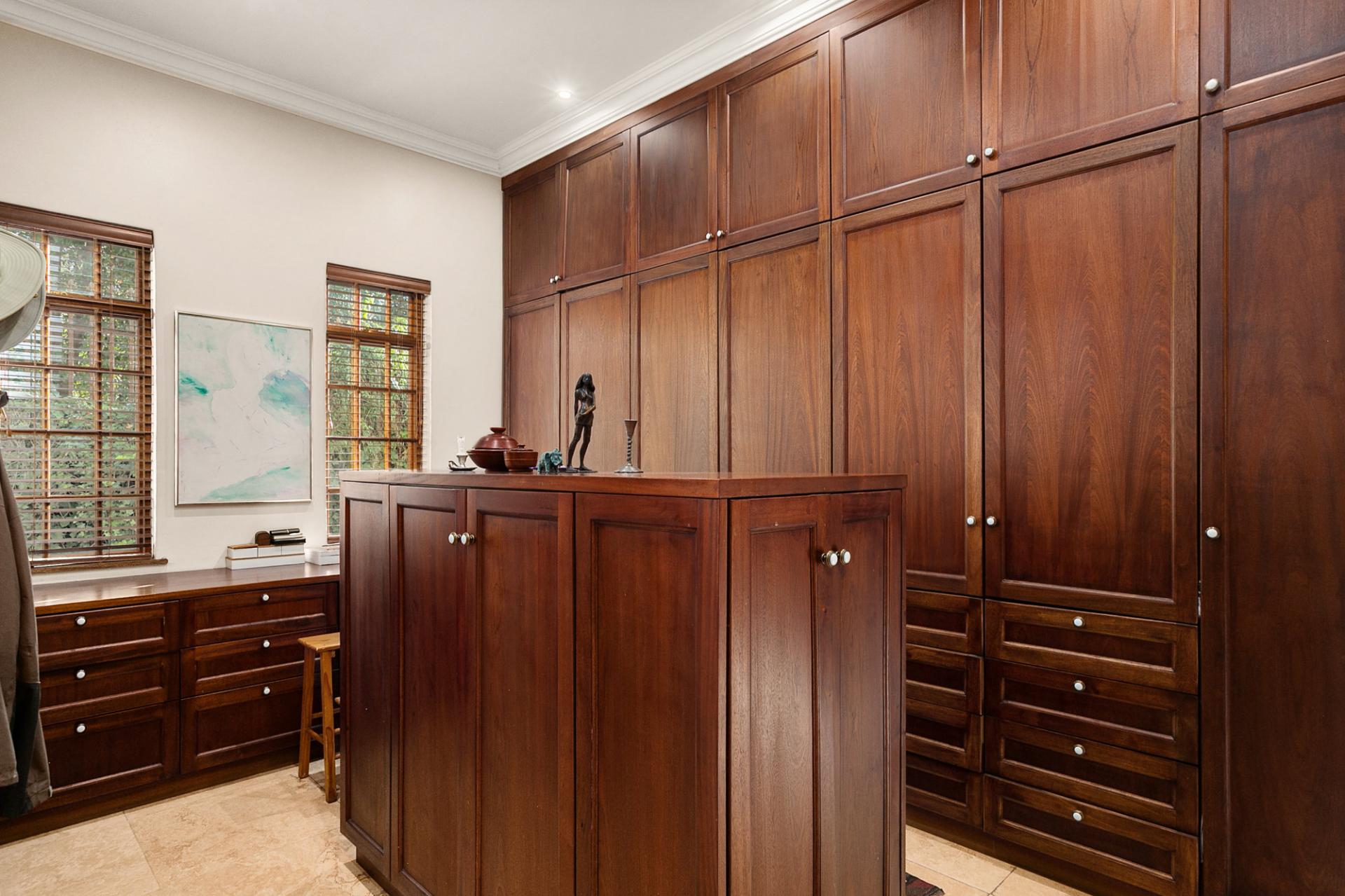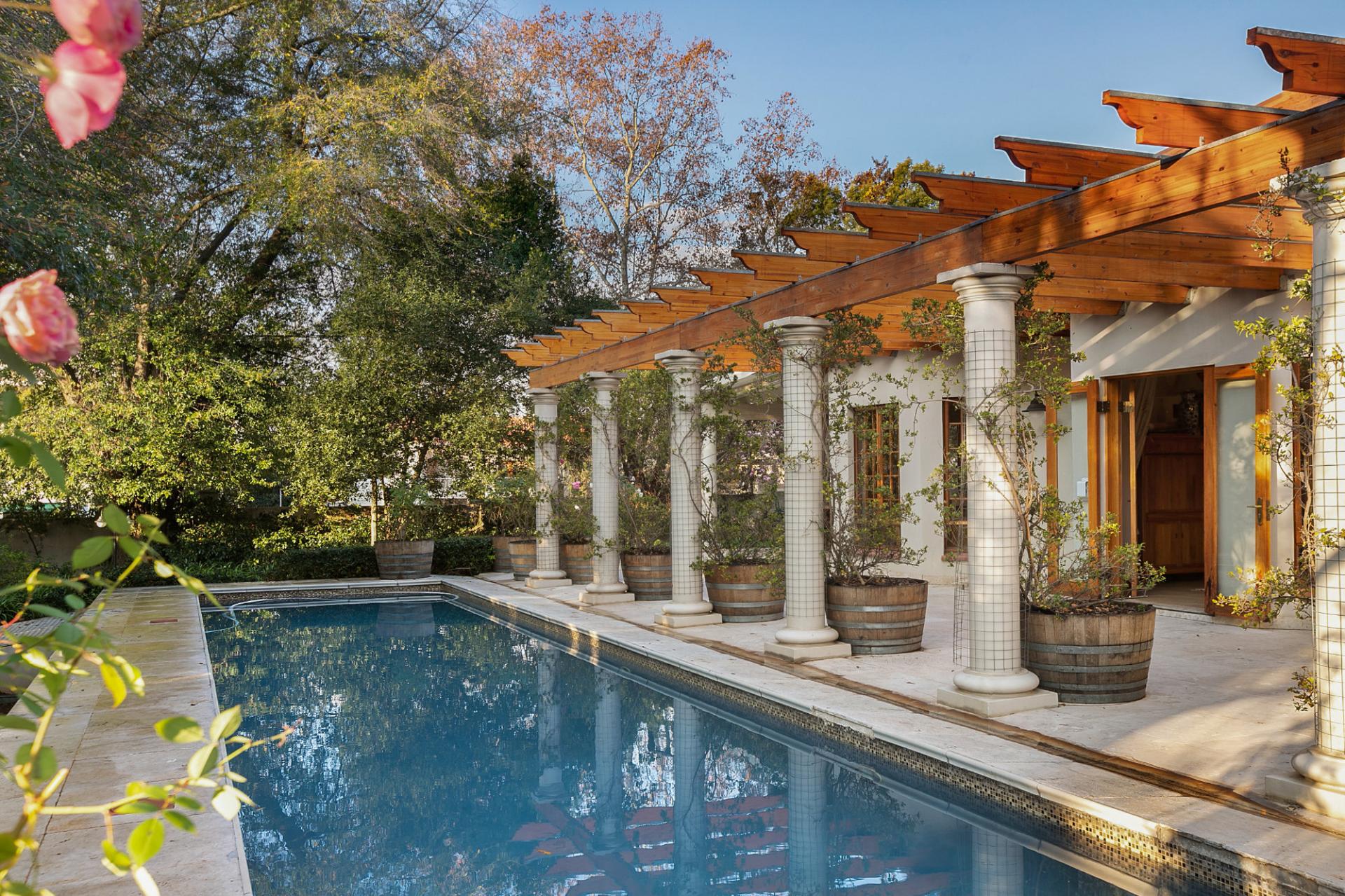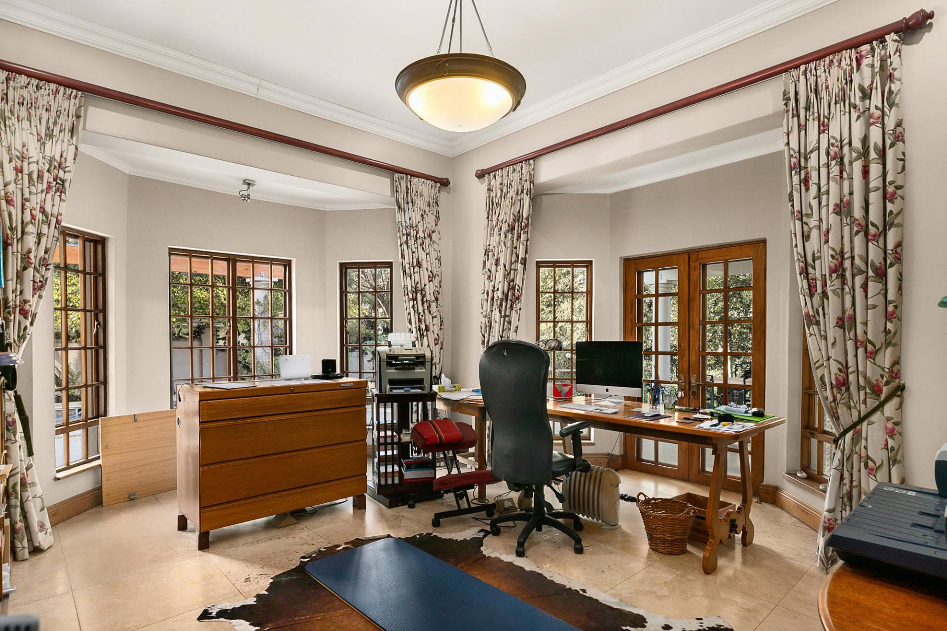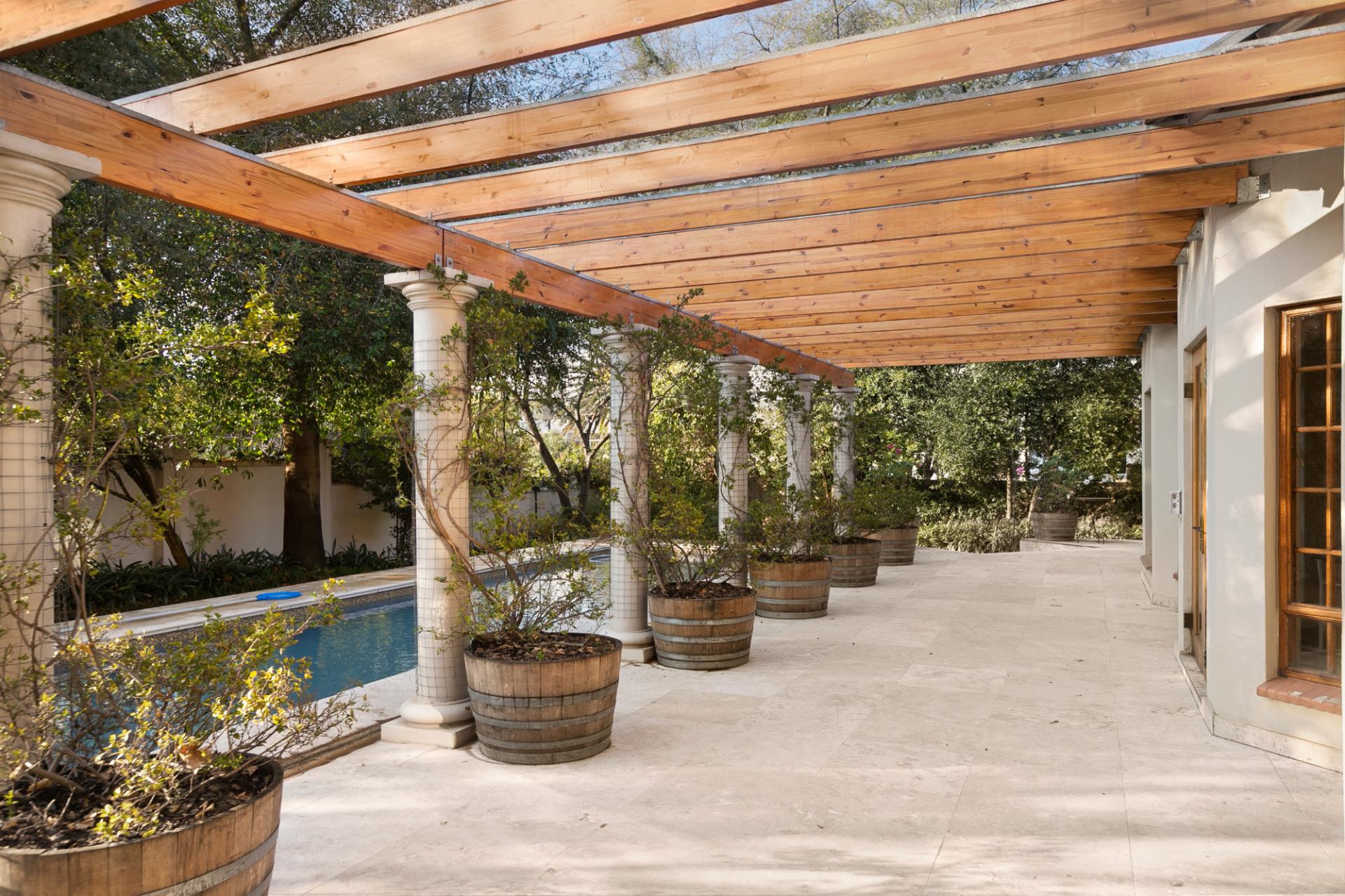 Outdoor amenities include a shaded courtyard beneath a majestic Pin Oak, vegetable and herb gardens, and discreet laundry facilities. Direct-access garages, a workshop, and storeroom add convenience, while a well-equipped two-bedroom staff cottage provides excellent service accommodation.