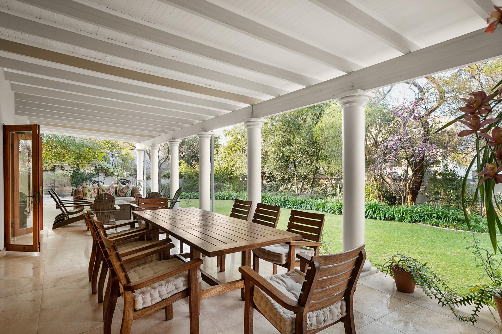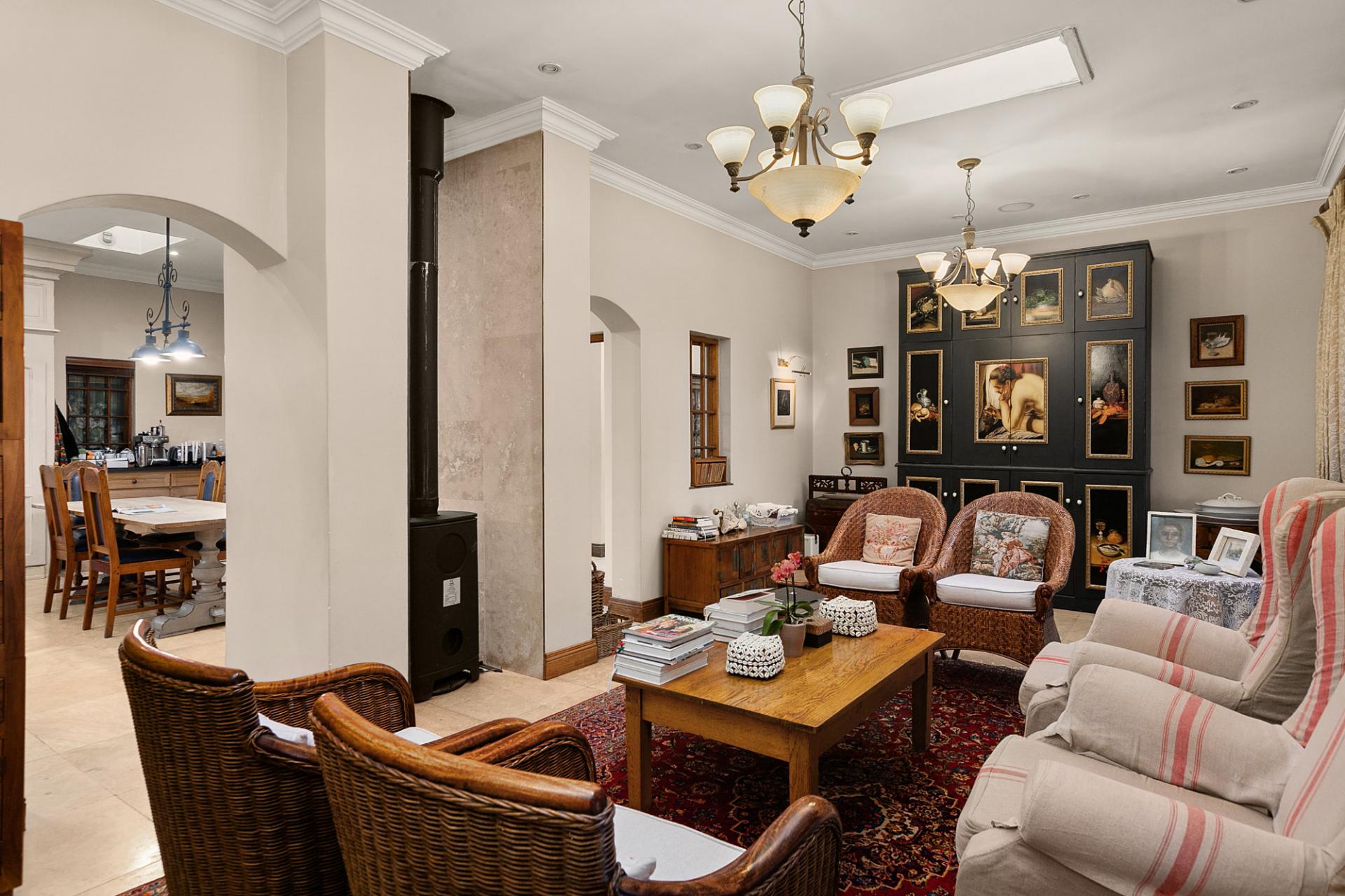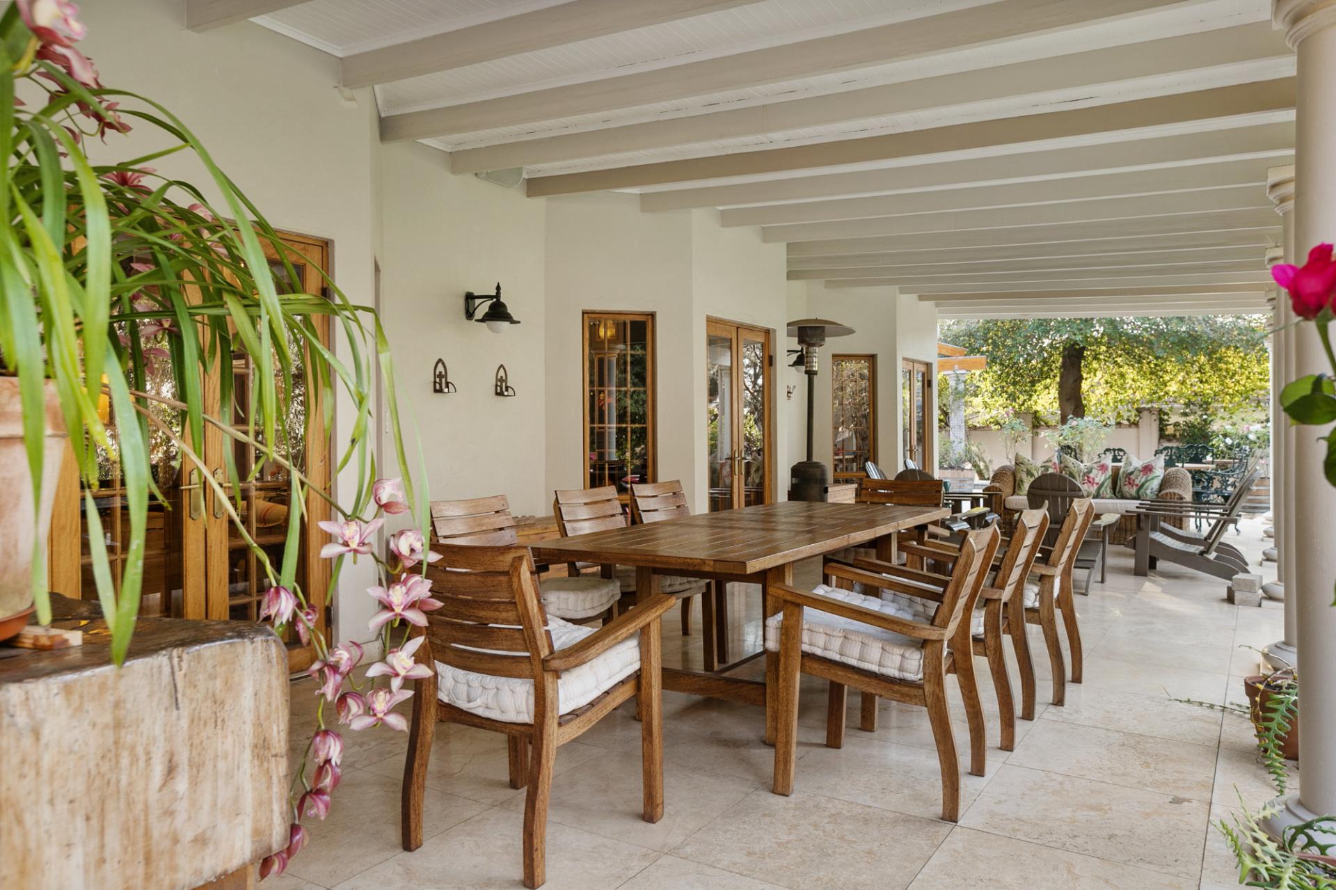 The sun-soaked wraparound veranda, facing east and north, invites year-round enjoyment. Designed for effortless entertaining, it offers ample space for dining and lounging, with direct access to a 14-metre heated pool.