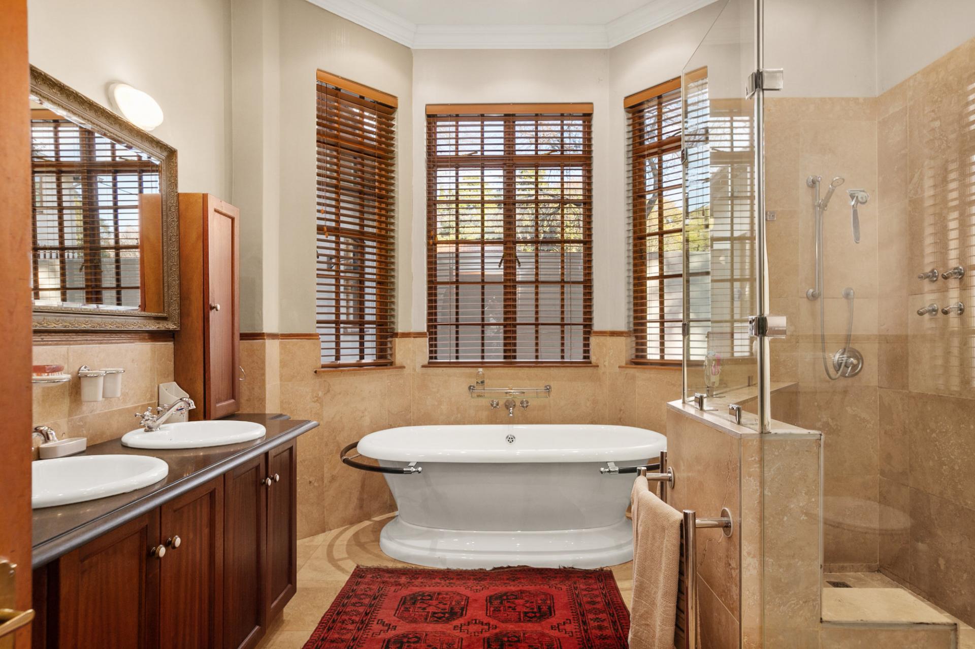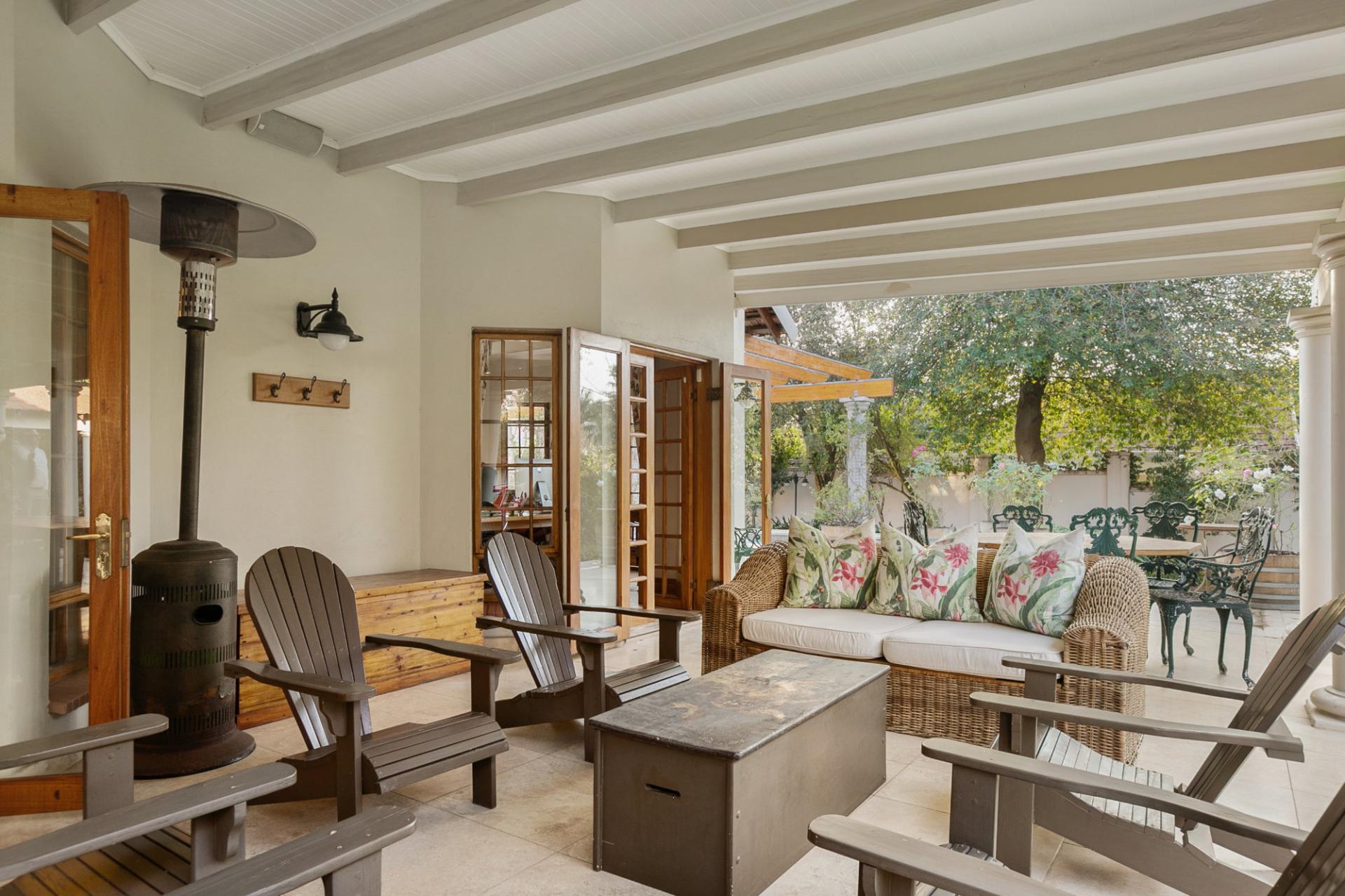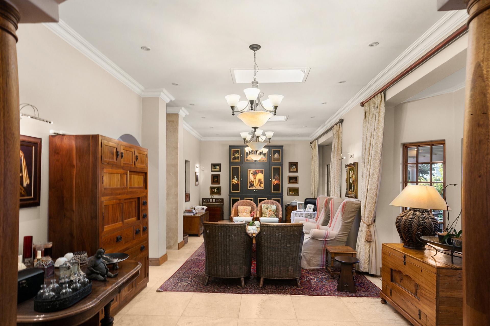 The sun-soaked wraparound veranda, facing east and north, invites year-round enjoyment. Designed for effortless entertaining, it offers ample space for dining and lounging, with direct access to a 14-metre heated pool.