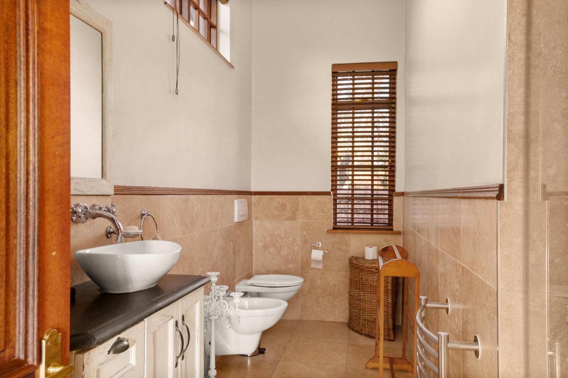 The ground floor also hosts a study or TV lounge with French doors opening to the veranda, as well as three beautifully proportioned bedrooms. One enjoys an en-suite and opens to a pergola-covered terrace; another has its own private bathroom; and the luxurious main suite features a spacious dressing room and elegant bathroom.