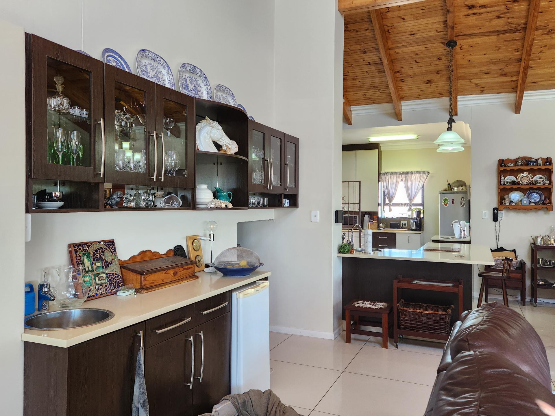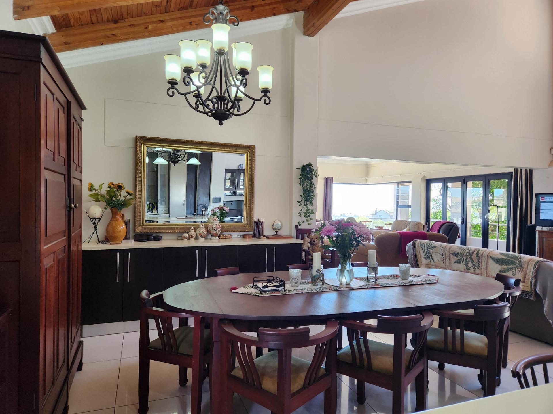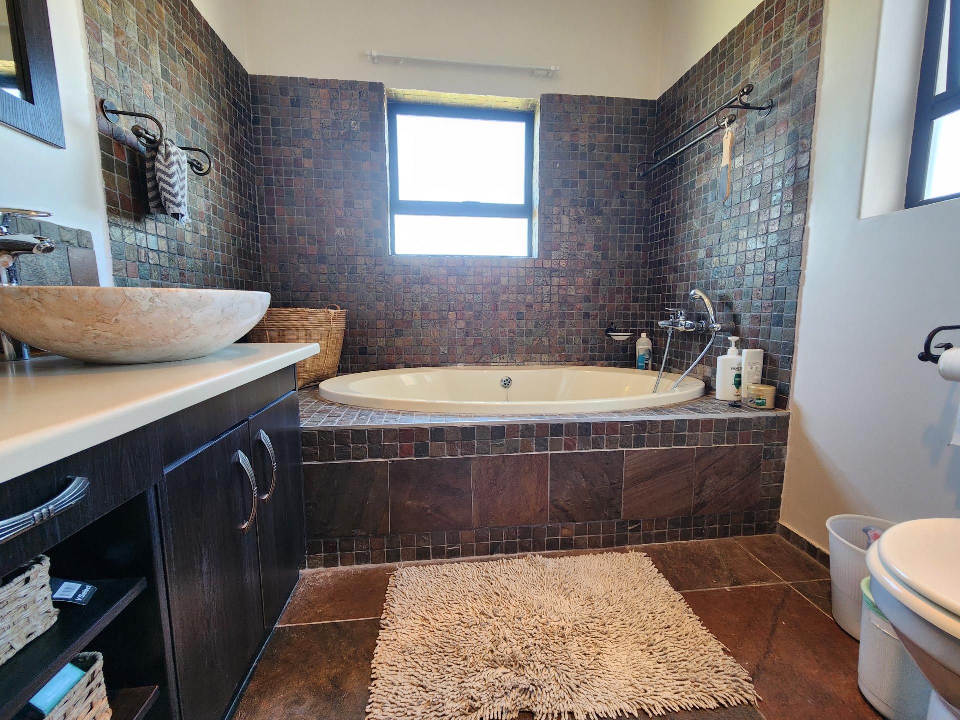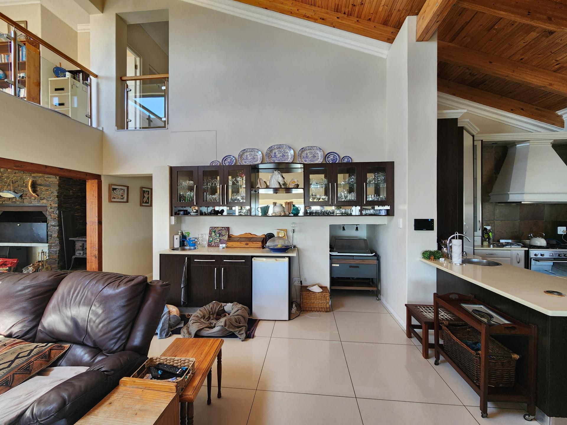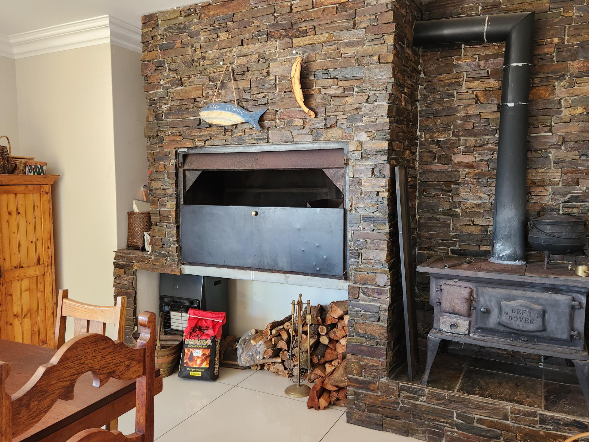 The entertainment area is a standout feature, boasting a built-in braai and Defy Dover stove, with sliding doors opening onto a spacious balcony where you can soak in the breathtaking scenery.