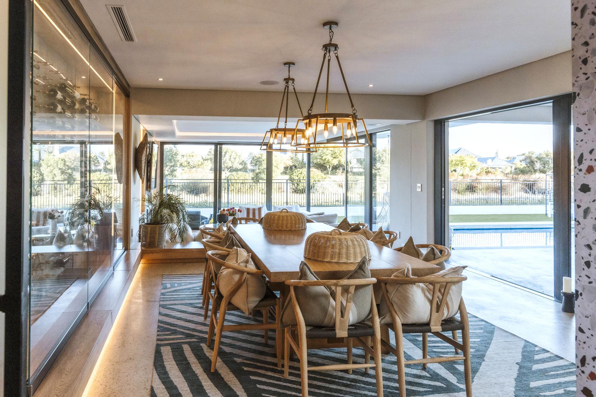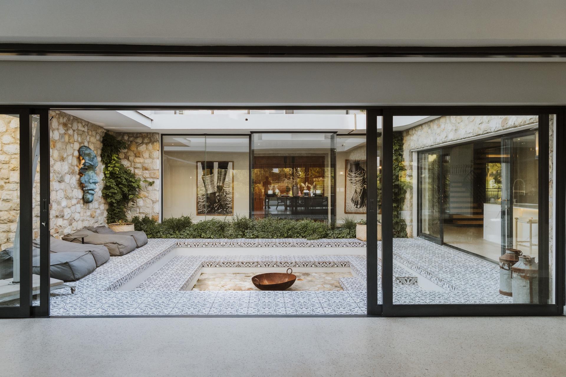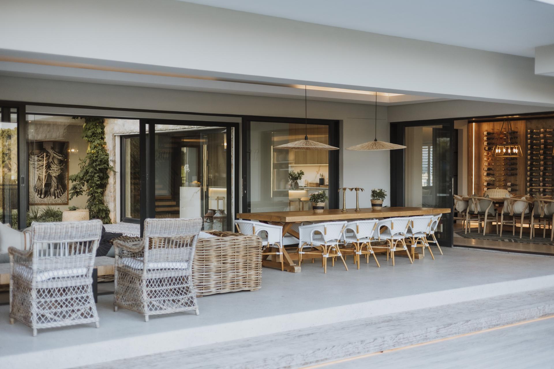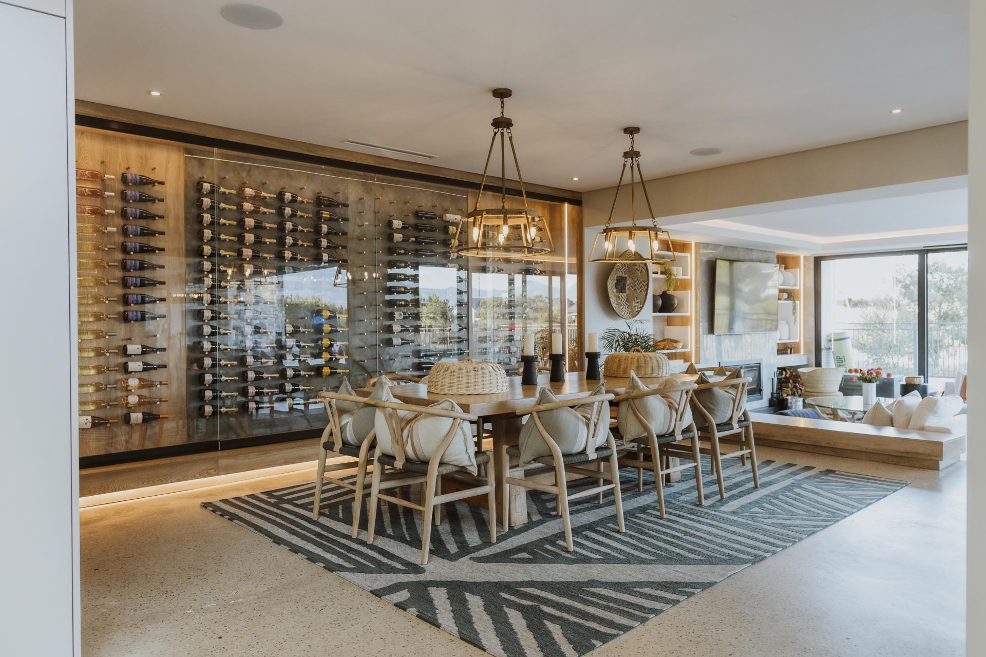 As you enter the home through the double wooden doors, you are amazed by the sheer beauty that surrounds you as the entire outlook is captivating right from the entrance. The house is built around an open courtyard that includes a large square fire pit surrounded by Victorian style tiles. All areas open onto this magnificent entertainment space and thus it forms the central hub. From here you will find the dining room, with an exceptional floor to ceiling glassed in wine display. This area then opens to the well sized TV room which is slightly sunken. A stunning fireplace heats the room in winter and the expansive glass doors open onto the garden and patio for summer entertaining. This home is built for socialising and offers a patio that includes a dining area as well as 2 separate sitting enclaves. A stunning state of the art bar opens out onto this patio as well as onto the braai and pizza oven. The heated pool with an automatic pool cover completes this amazing design.