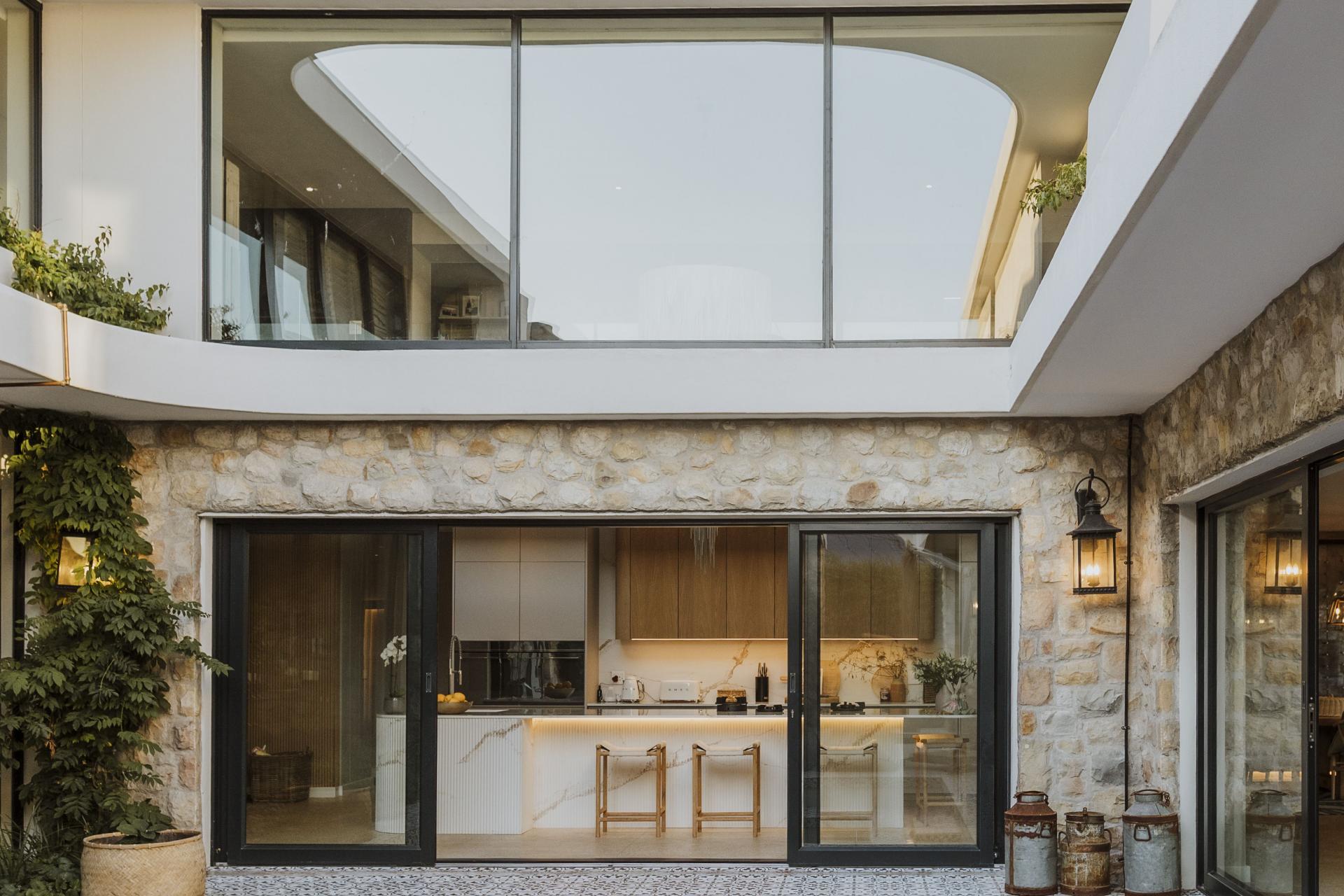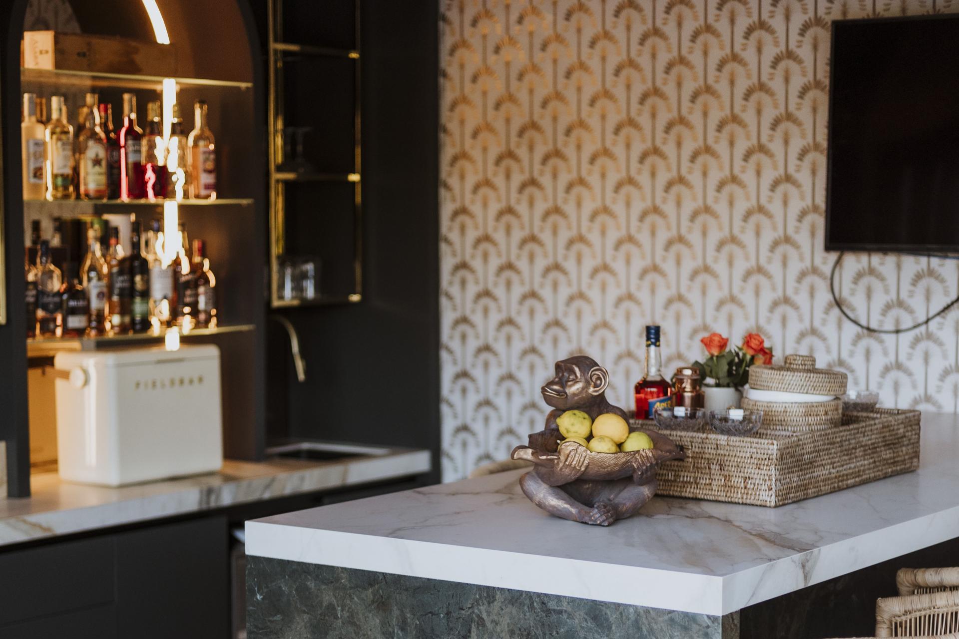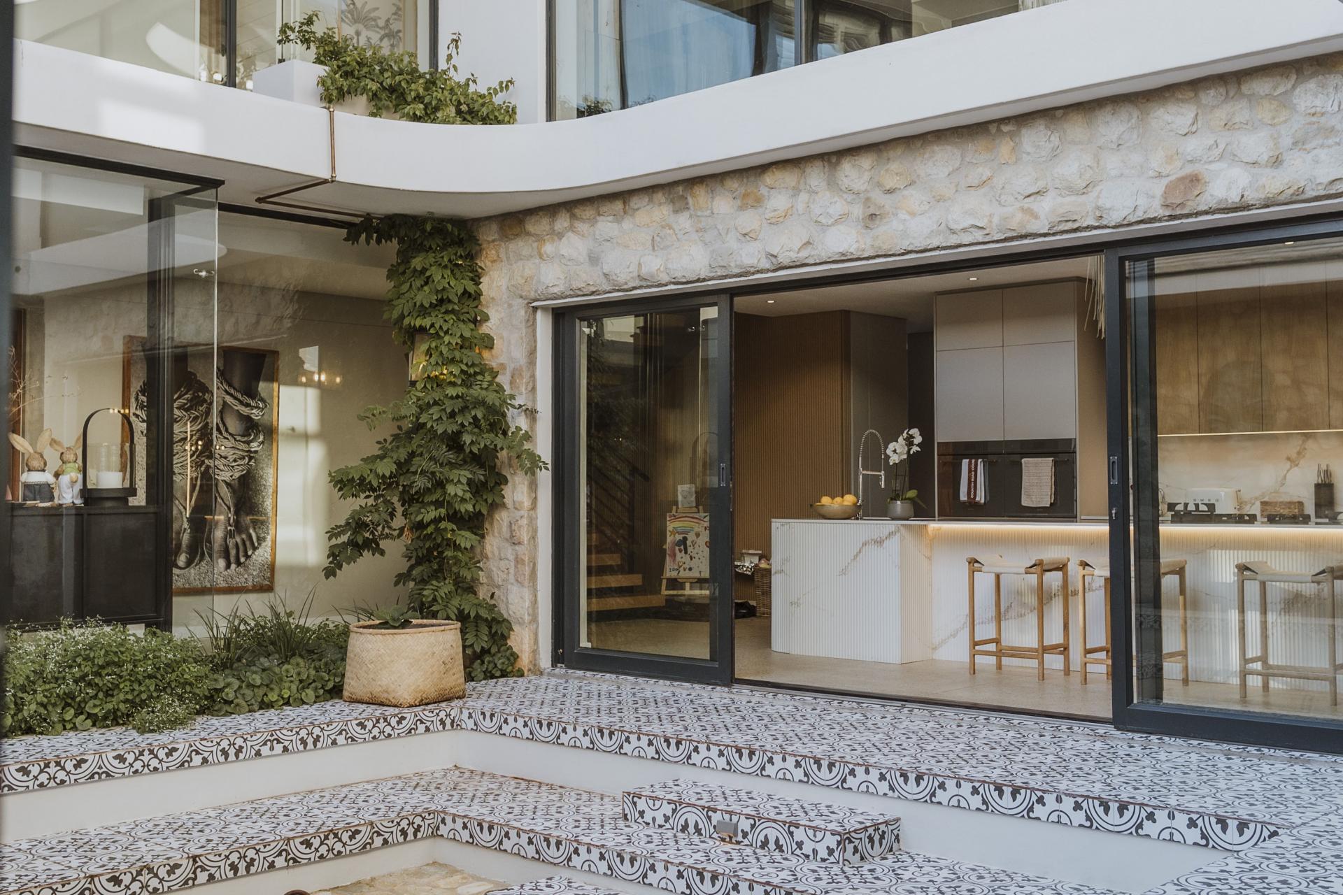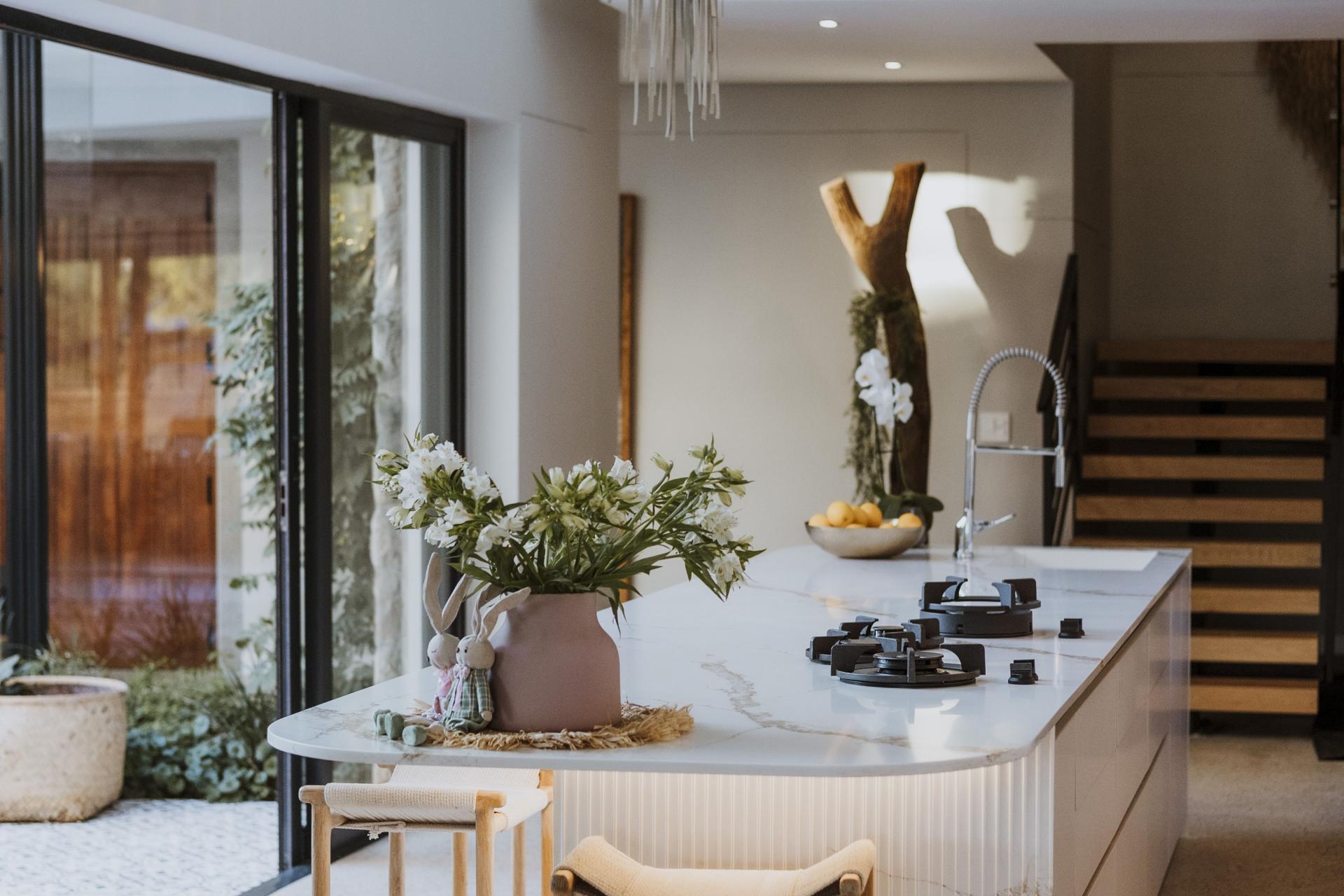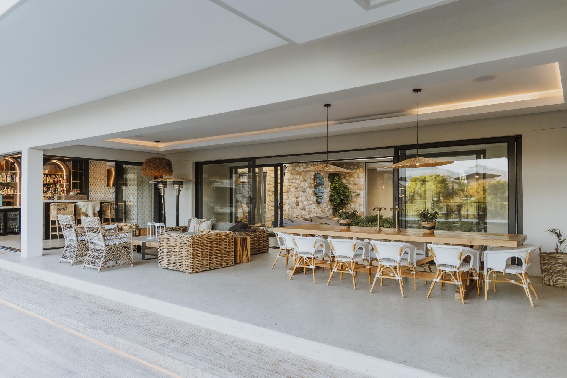As you enter the home through the double wooden doors, you are amazed by the sheer beauty that surrounds you as the entire outlook is captivating right from the entrance. The house is built around an open courtyard that includes a large square fire pit surrounded by Victorian style tiles. All areas open onto this magnificent entertainment space and thus it forms the central hub. From here you will find the dining room, with an exceptional floor to ceiling glassed in wine display. This area then opens to the well sized TV room which is slightly sunken. A stunning fireplace heats the room in winter and the expansive glass doors open onto the garden and patio for summer entertaining. This home is built for socialising and offers a patio that includes a dining area as well as 2 separate sitting enclaves. A stunning state of the art bar opens out onto this patio as well as onto the braai and pizza oven. The heated pool with an automatic pool cover completes this amazing design.