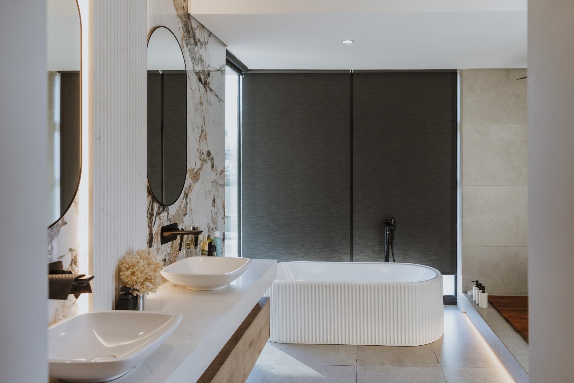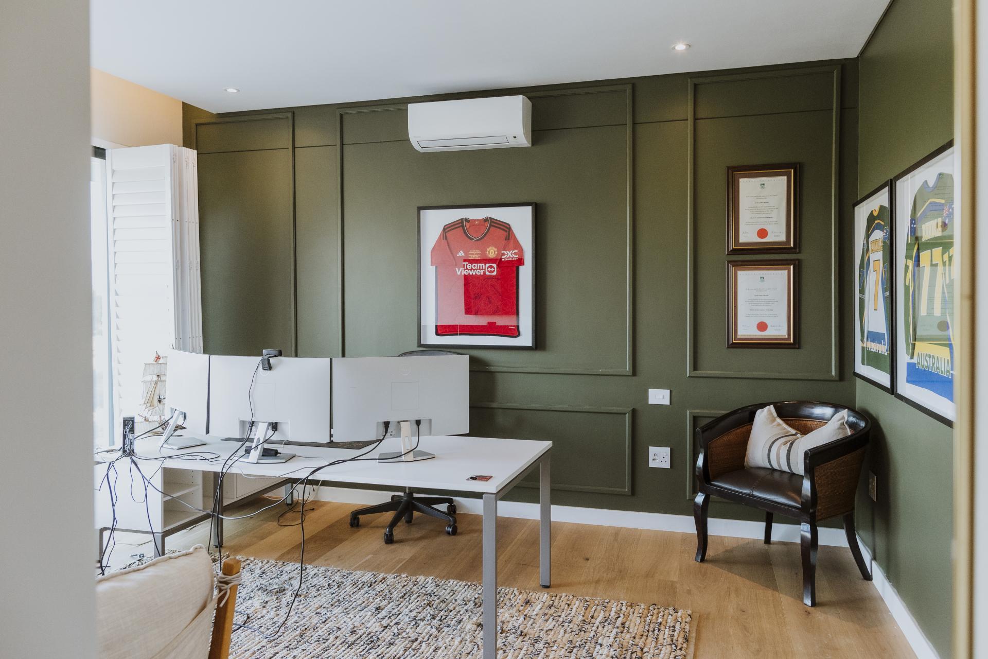 As you meander up the wooden, floating staircase you find yourself browsing in the library which also has built in work spaces. The 3 additional children’s en suite bedrooms are all extremely well sized and the one offers a loft area that can be used as a play area or reading room or just a fun place when you have friends to stay over.