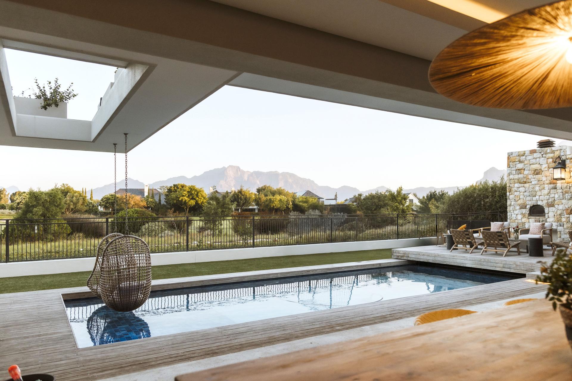 This perfectly positioned home is situated right on the 9th hole of the renowned Pearl Valley Jack Nicklaus Signature Golf Course. In addition to this, one can sit back and relax whilst enjoying the panoramic views of the mountains. This beautiful home has been designed and built with love, care and absolute precision.