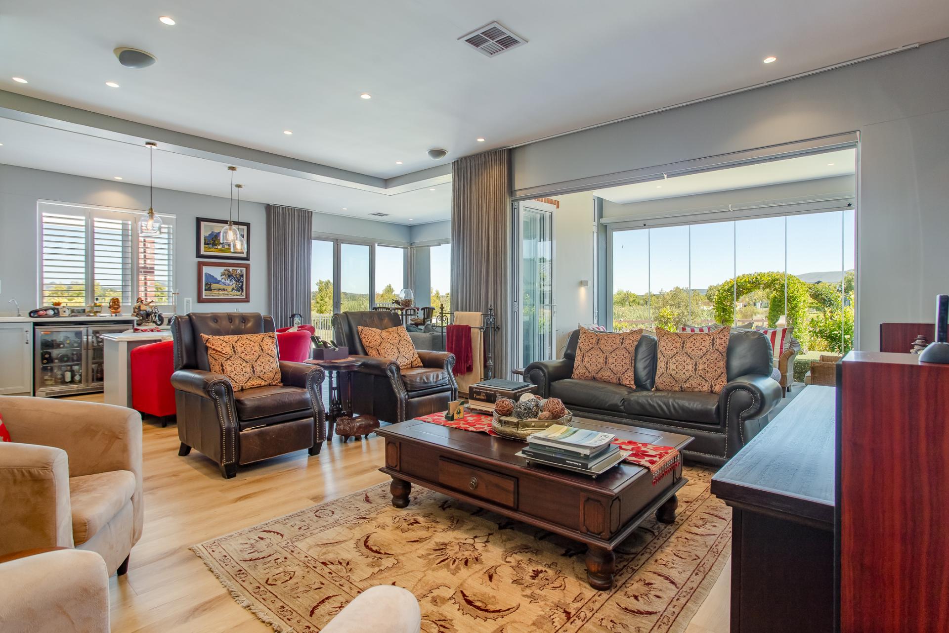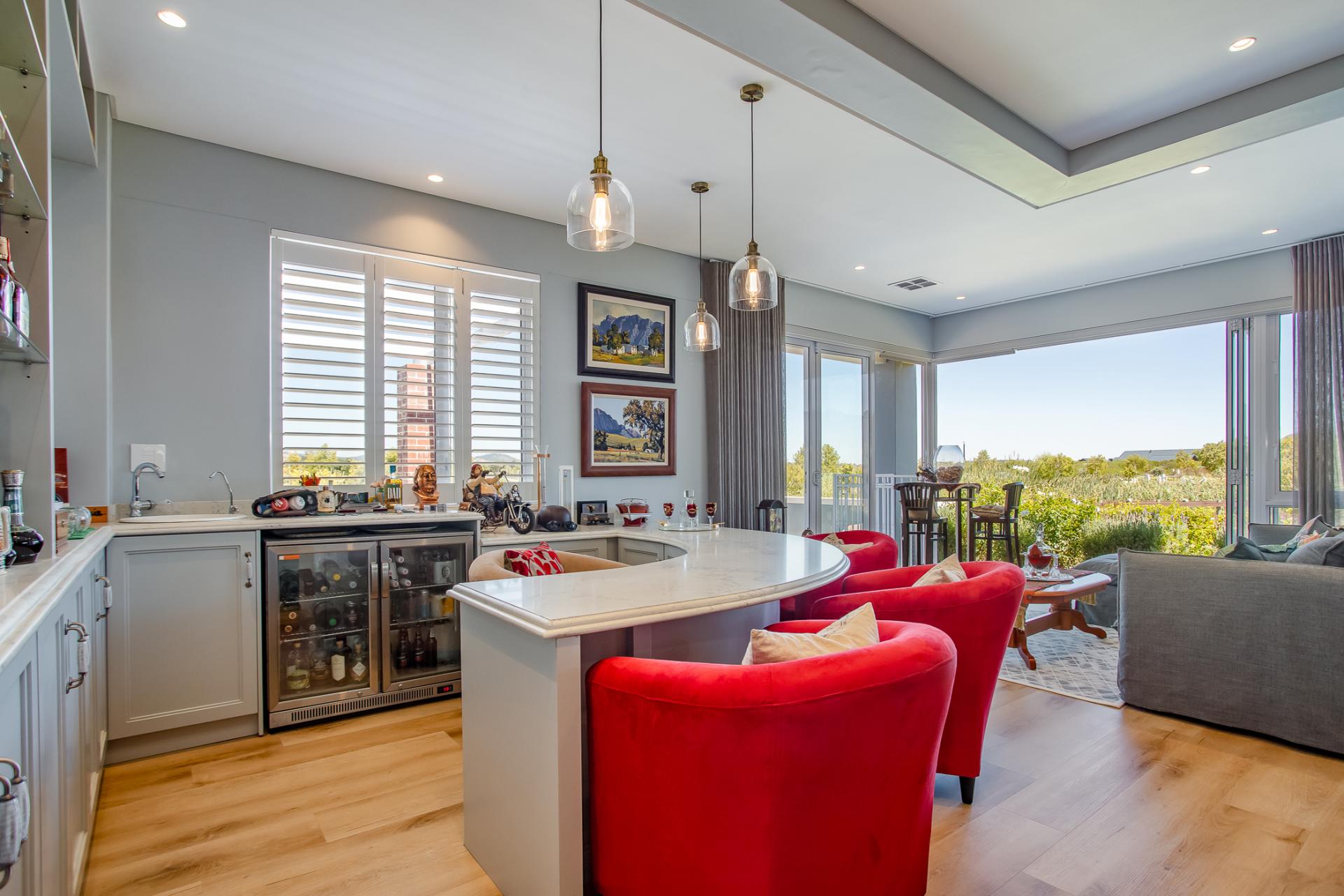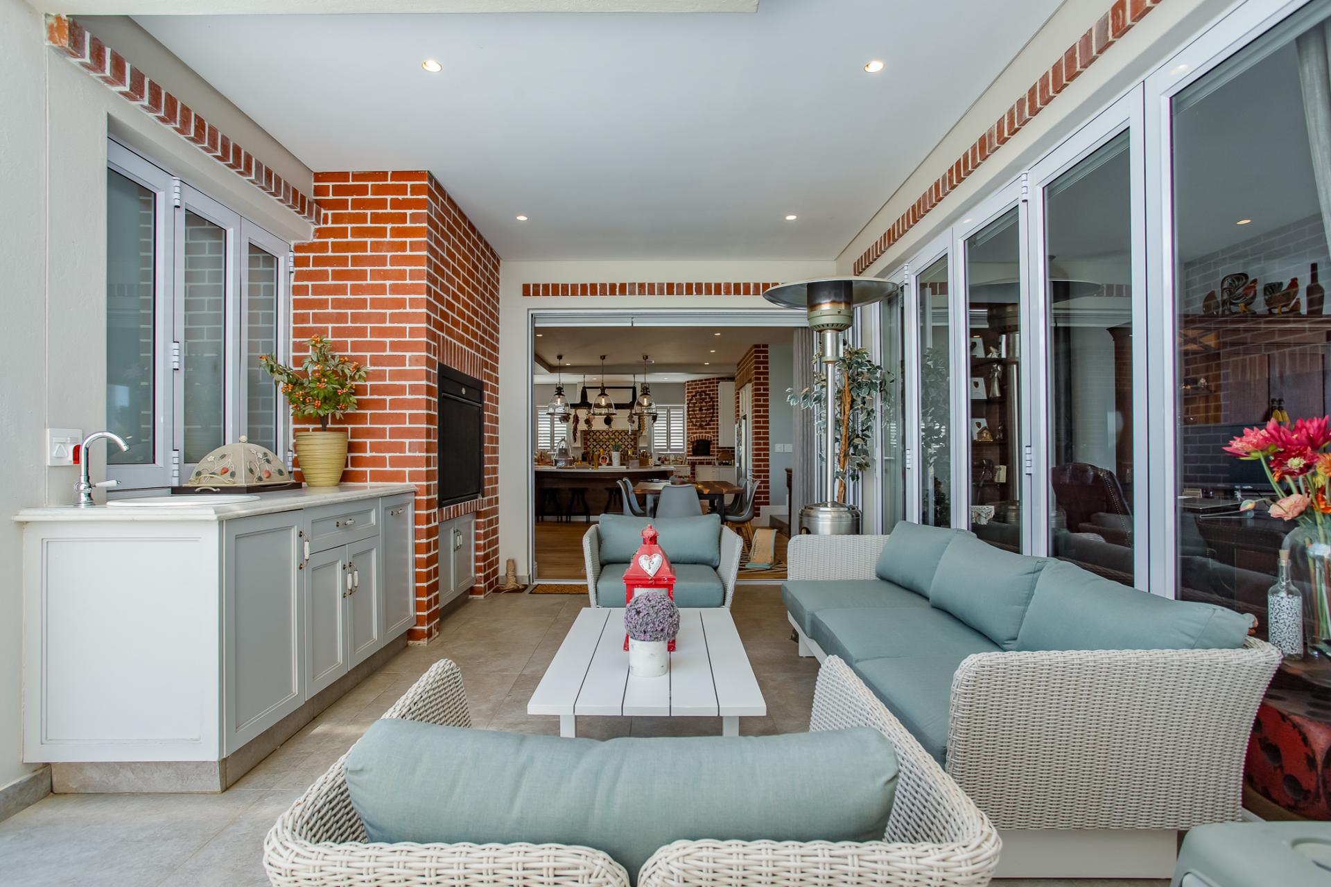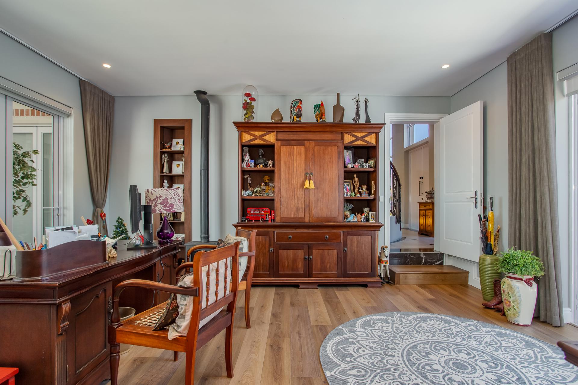 Entertaining is effortless, with options ranging from a glass-enclosed sunroom to a stylish bar connecting through a serving hatch to the outdoor patio. The private garden with swimming pool and braai pit makes this a perfect entertainment area.