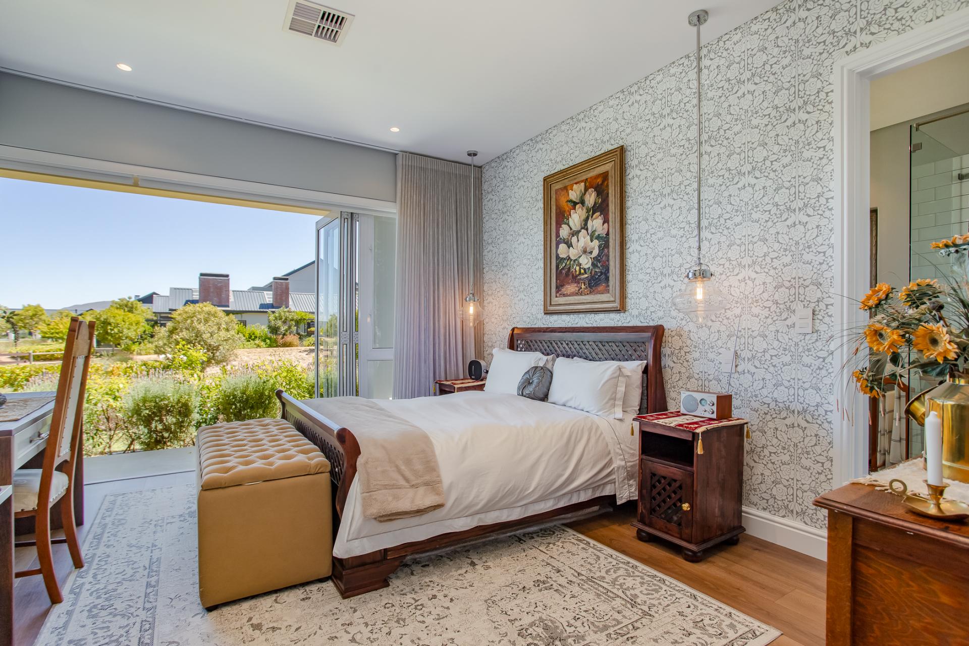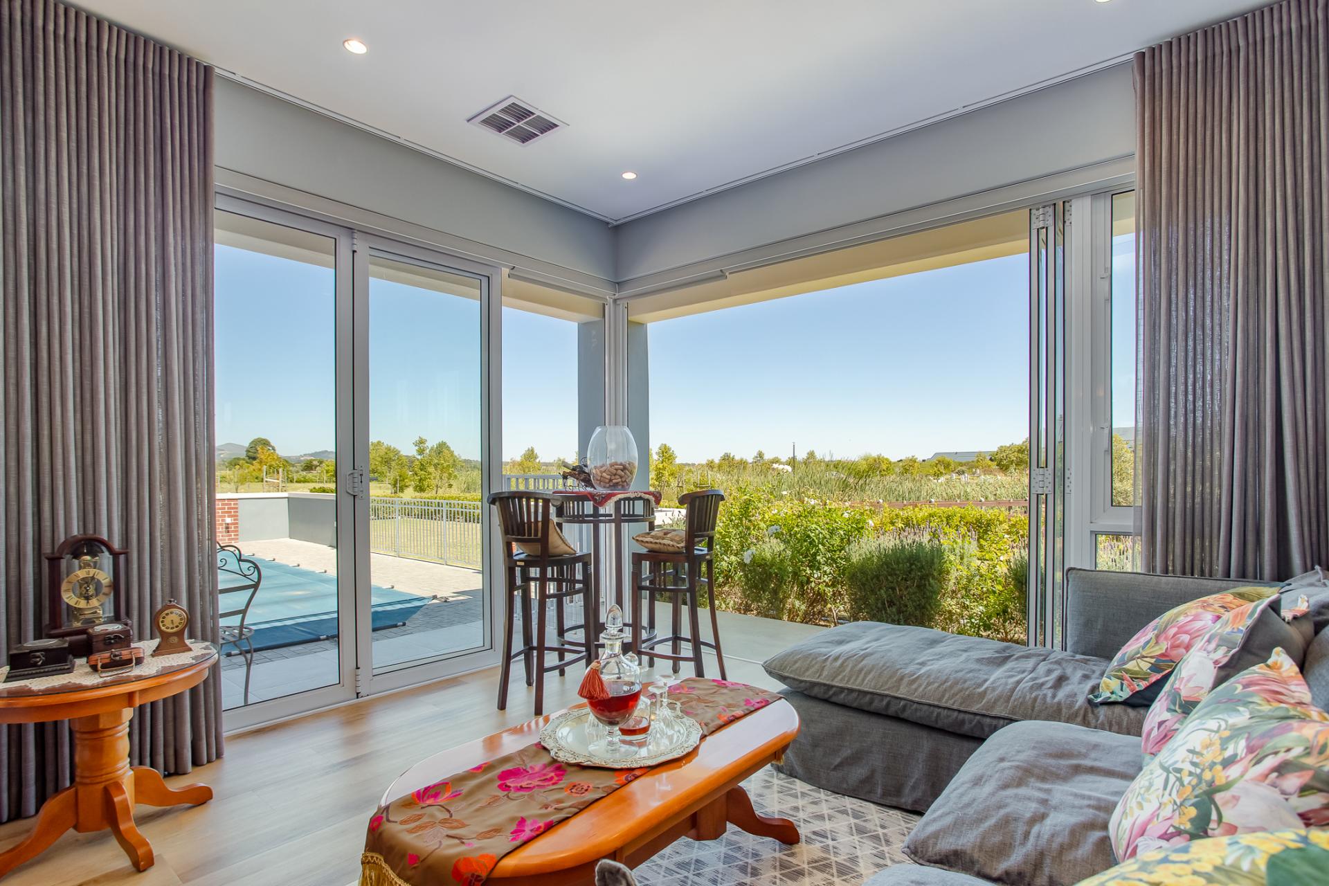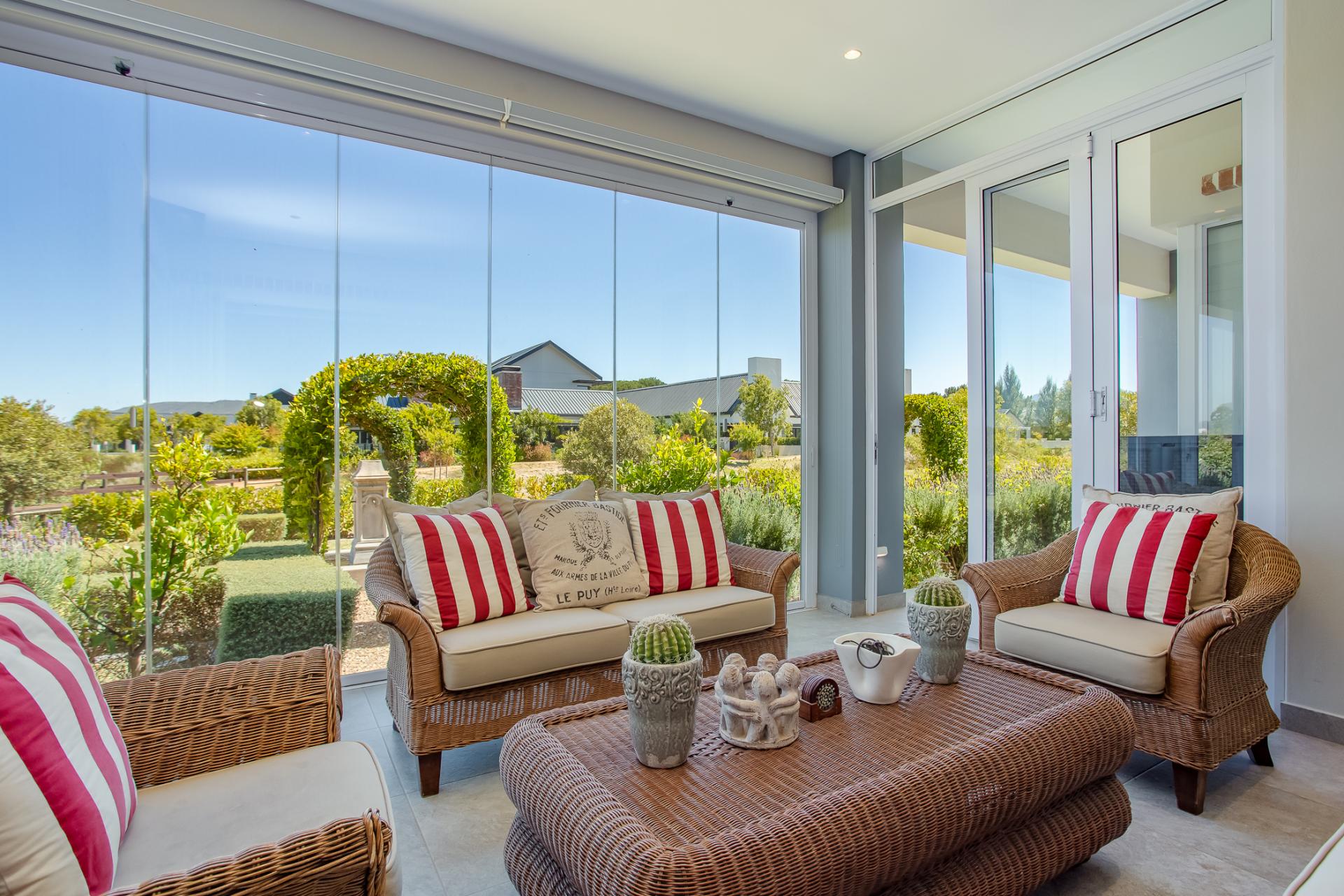 Entertaining is effortless, with options ranging from a glass-enclosed sunroom to a stylish bar connecting through a serving hatch to the outdoor patio. The private garden with swimming pool and braai pit makes this a perfect entertainment area.