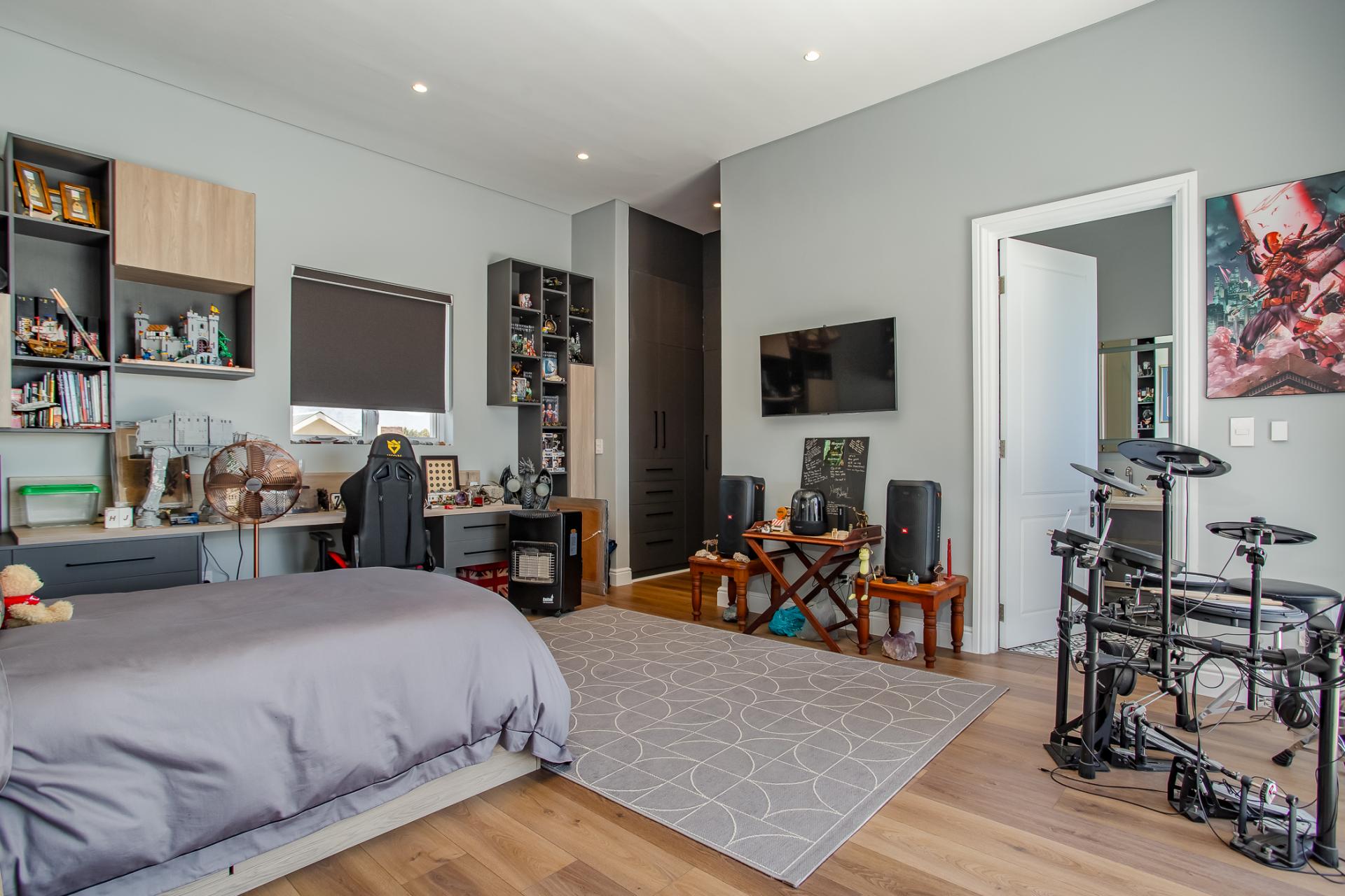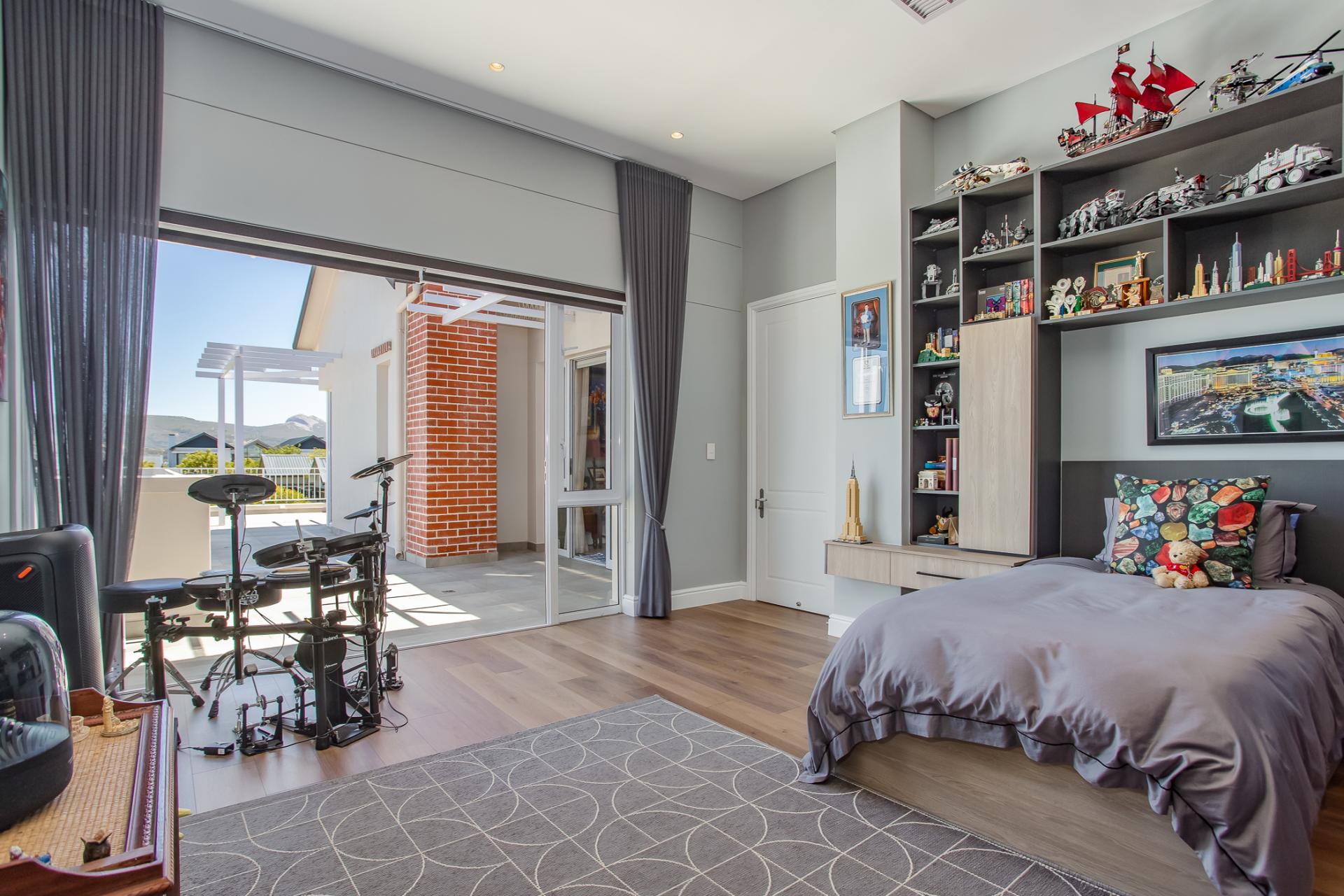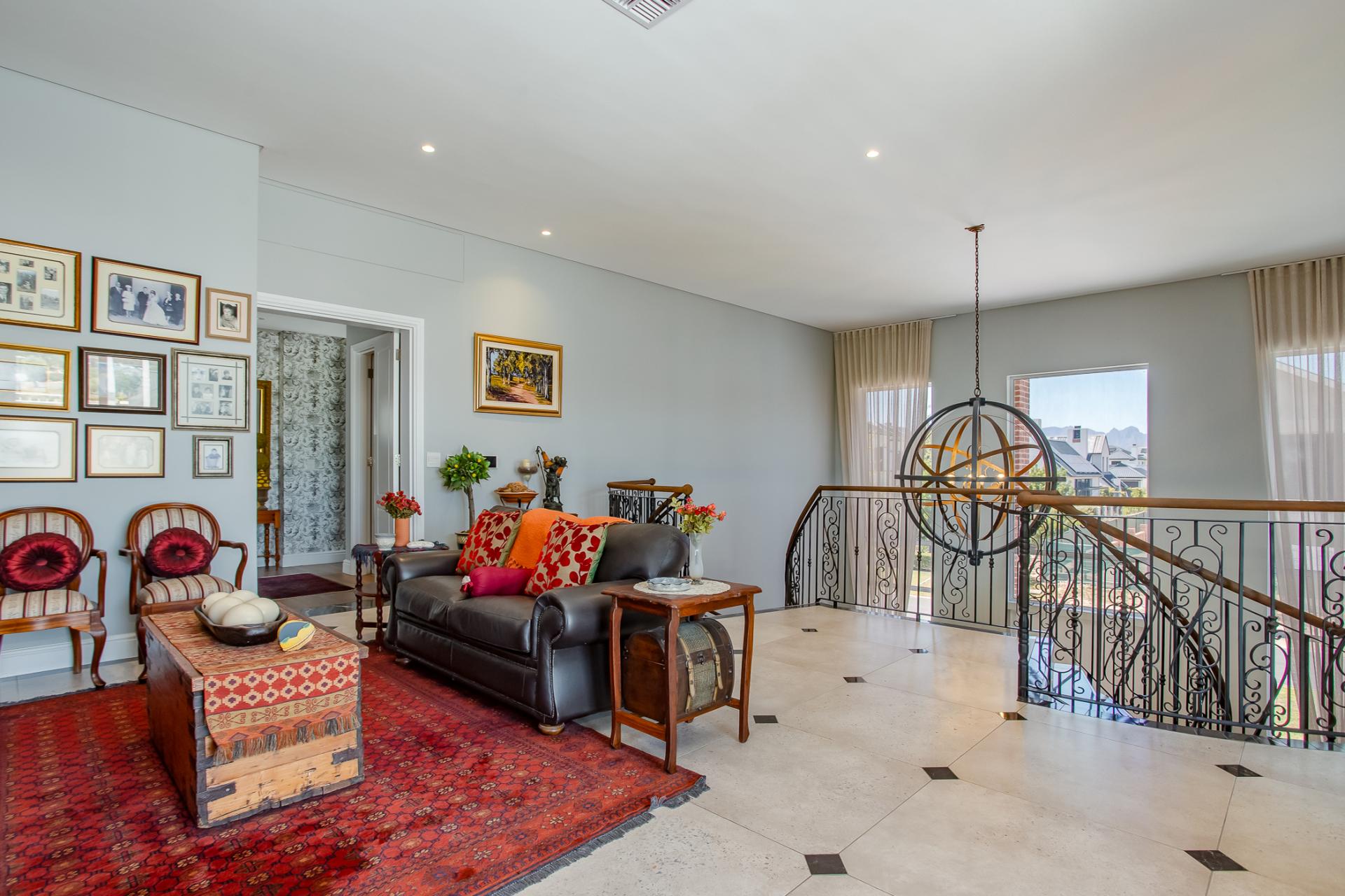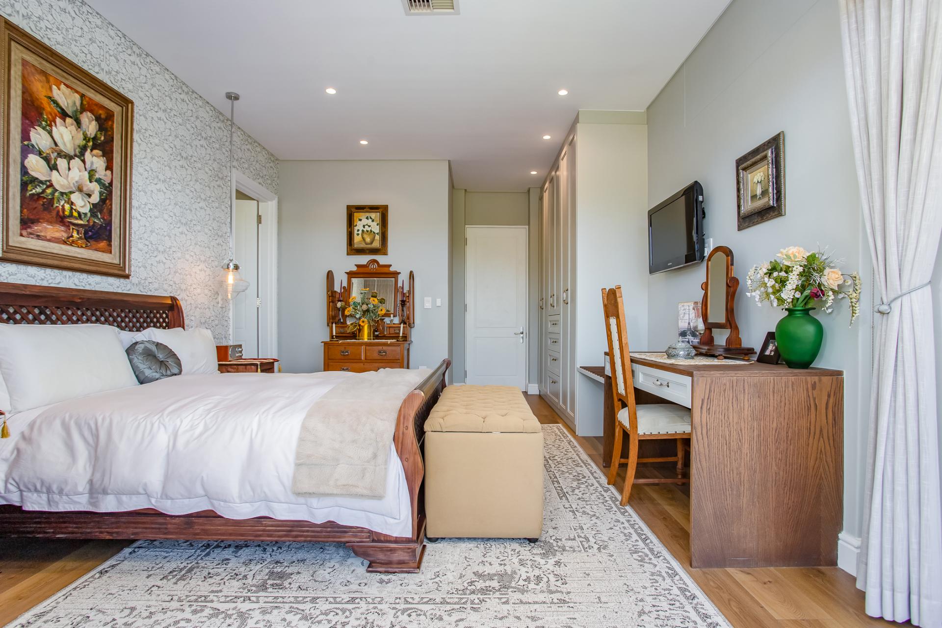 Entertaining is effortless, with options ranging from a glass-enclosed sunroom to a stylish bar connecting through a serving hatch to the outdoor patio. The private garden with swimming pool and braai pit makes this a perfect entertainment area.