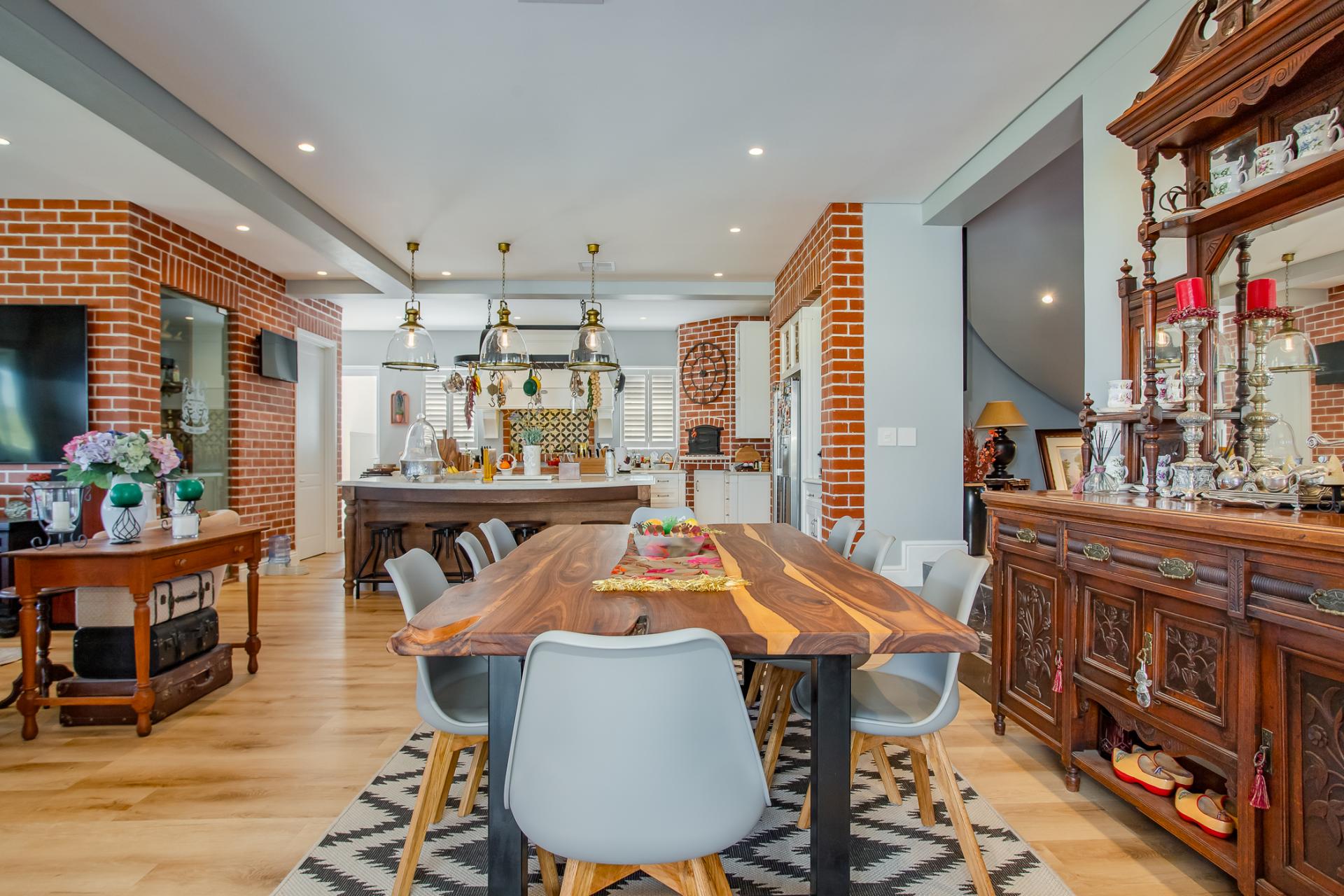 The heart of the home is the inviting kitchen, complete with premium finishes, a built-in pizza oven, and a feature wine cellar.