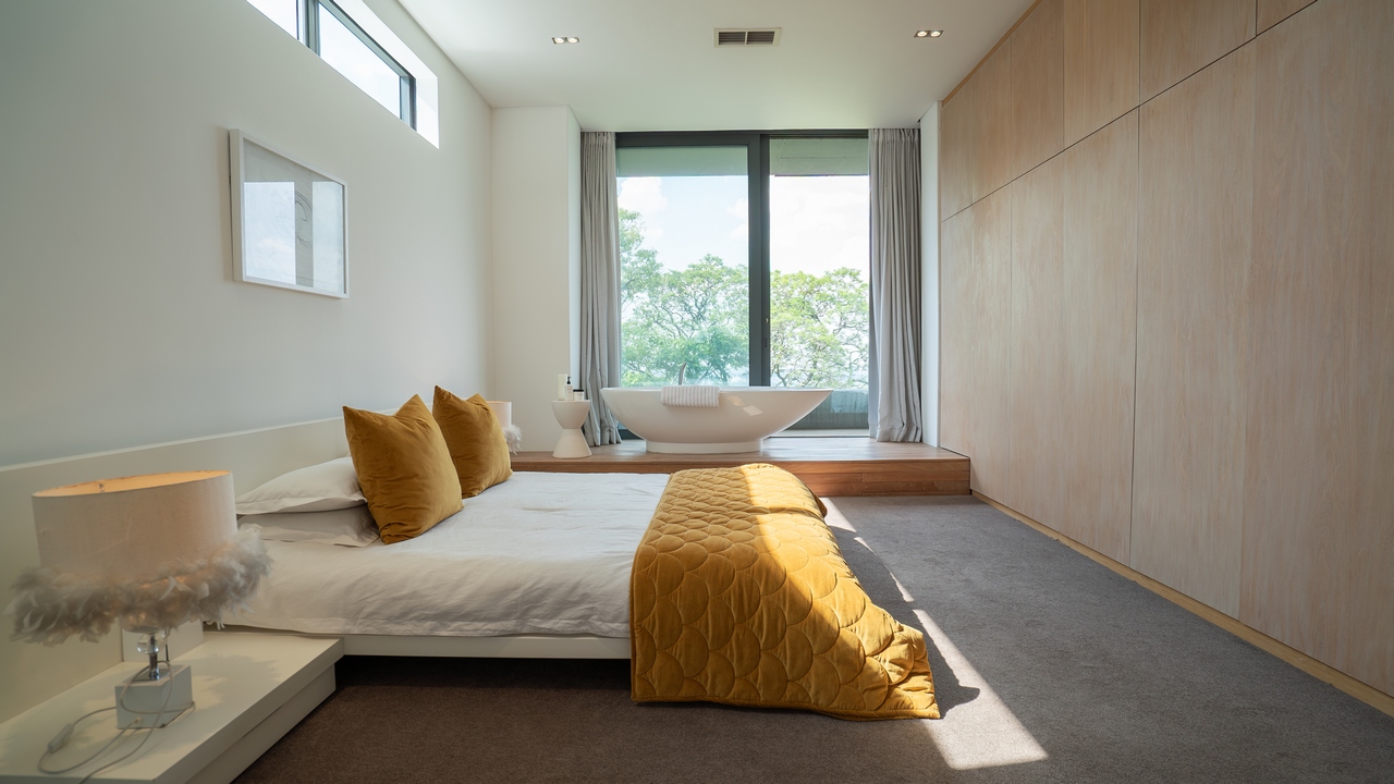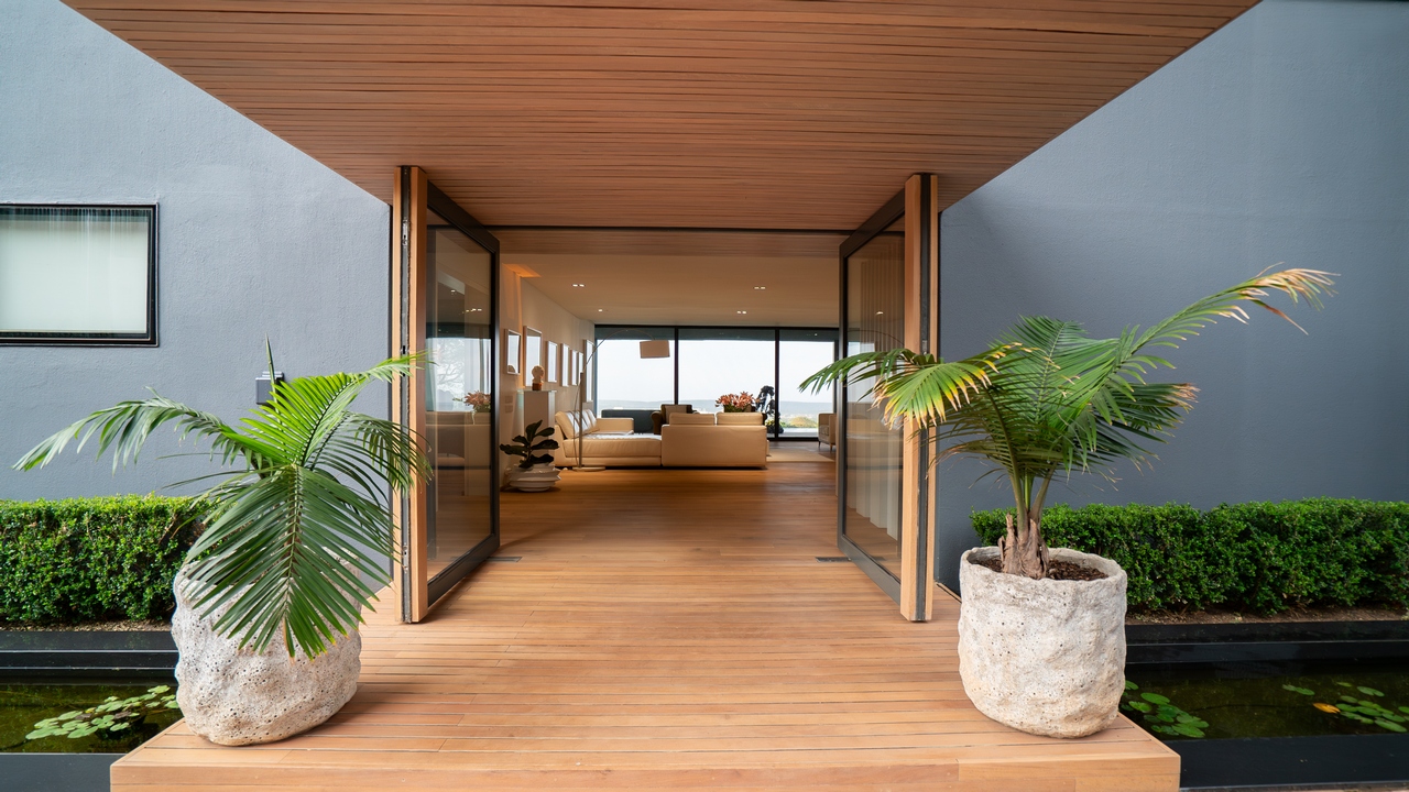 As you approach the residence in a secure estate, the sleek lines and bold architectural elements catch your eye, foreshadowing the modern elegance that awaits within. The exterior features a combination of glass, steel, and natural materials, creating a visually striking facade that complements the surrounding landscape.