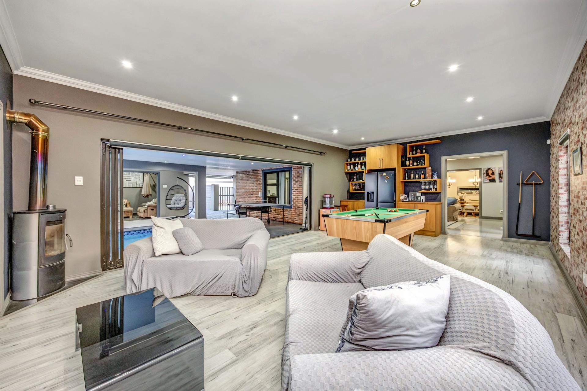 The living spaces are beautifully interconnected, comprising a formal lounge, an elegant dining room, and a cosy TV lounge. All reception rooms have a fireplace — and they all flow seamlessly into a show-stopping entertainment room. This expansive area, complete with stacking doors, opens onto a sun-soaked pool and patio, creating the ultimate indoor-outdoor experience for hosting family and friends.