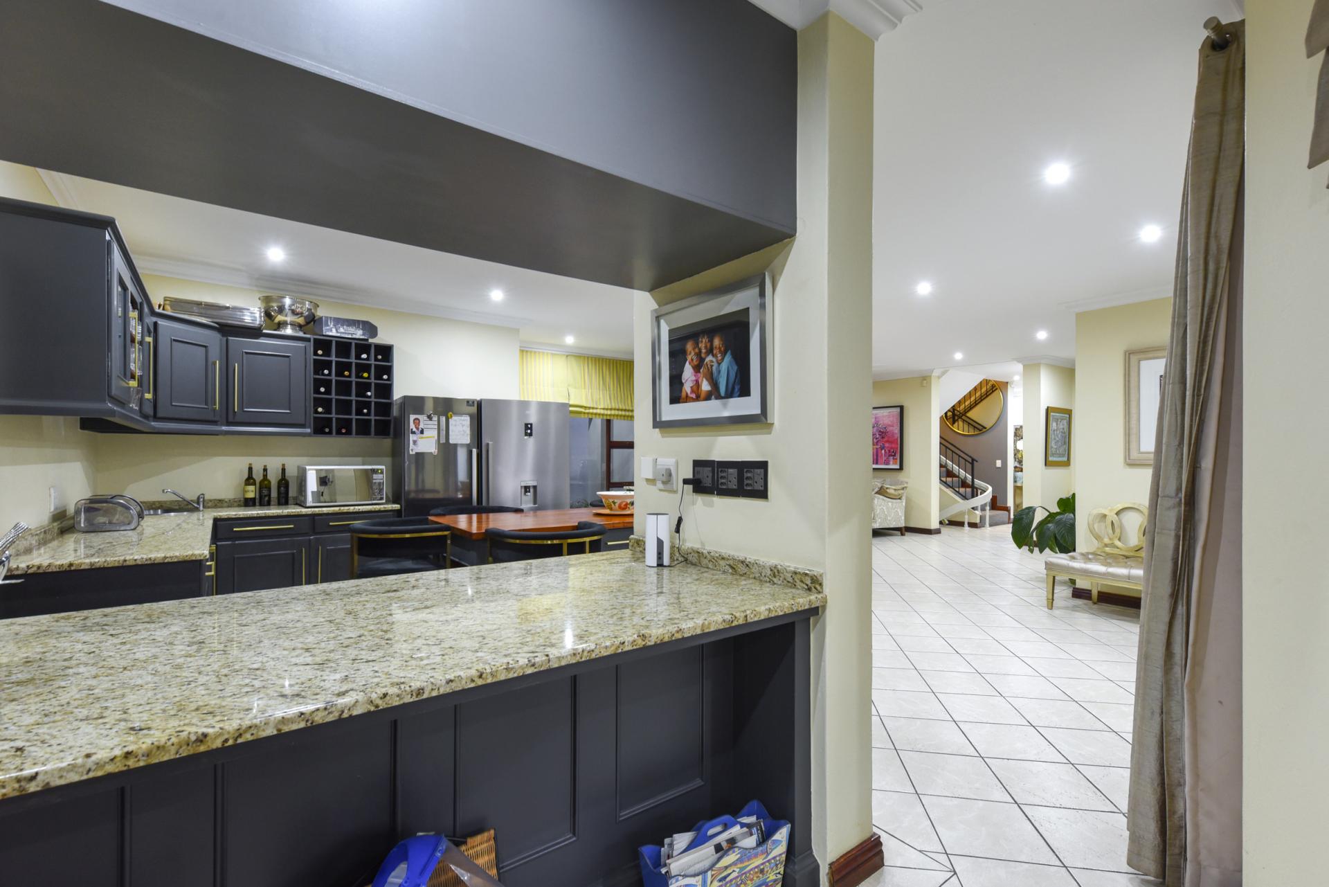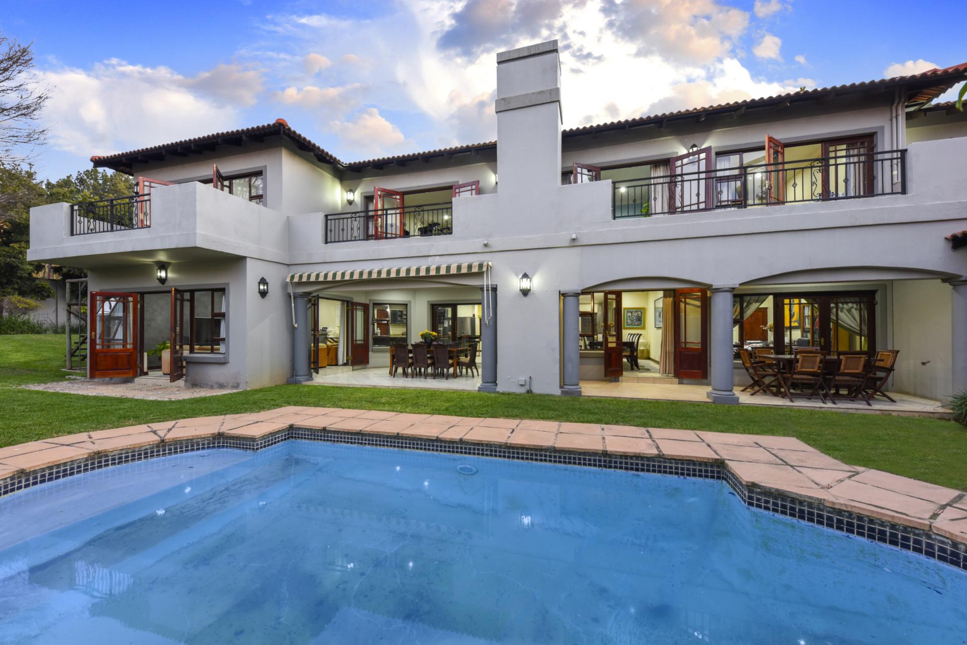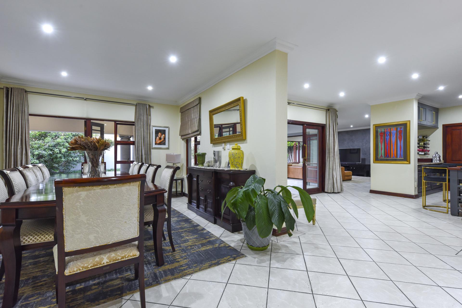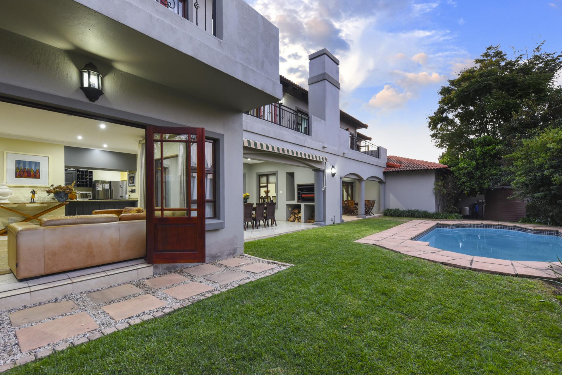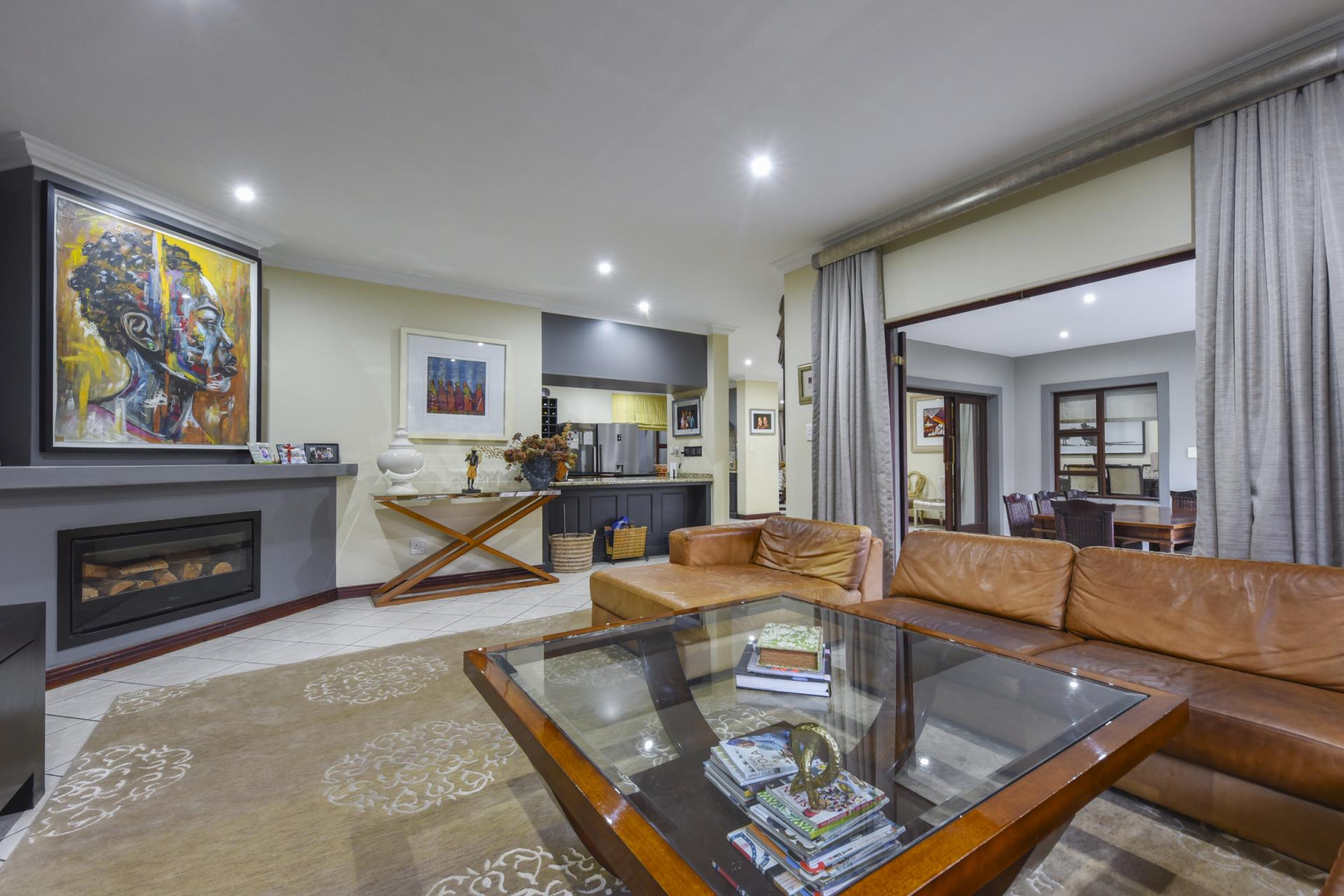 Additional features include a borehole with a full filtration system supplying water into the home, a full backup system, and a triple garage with ample storage.