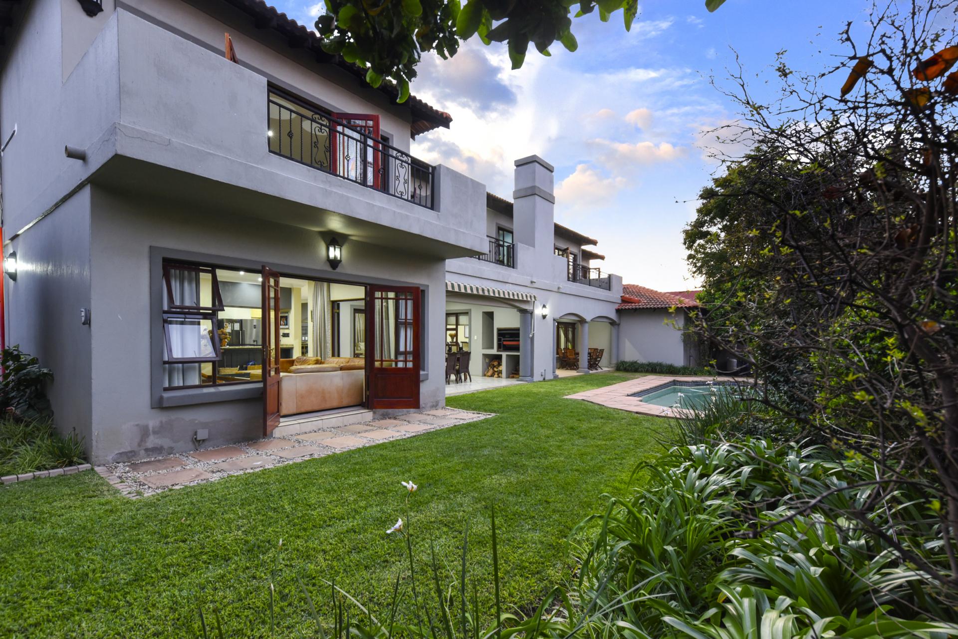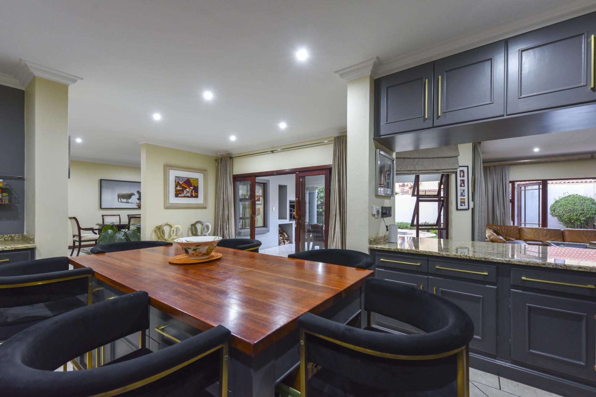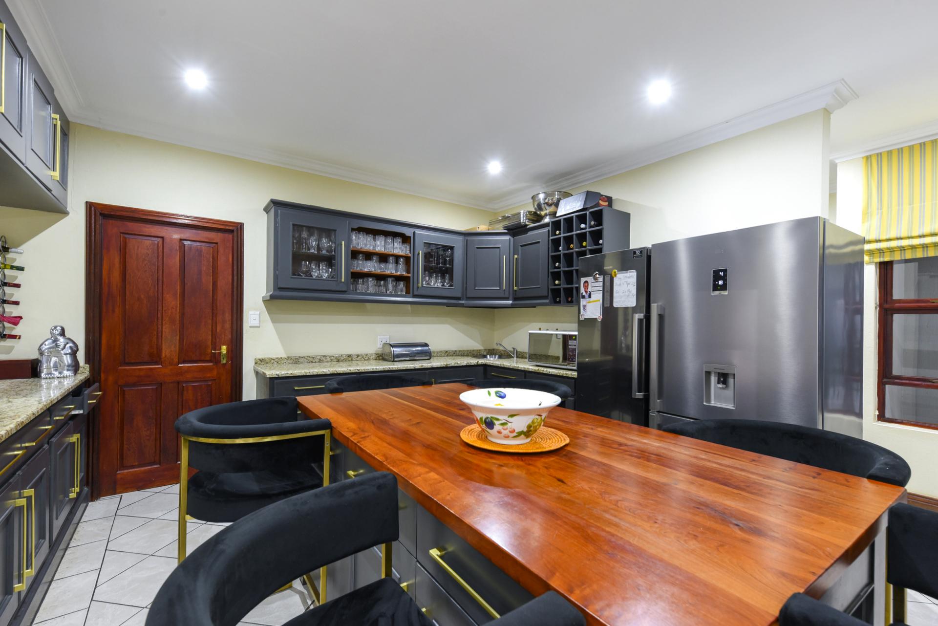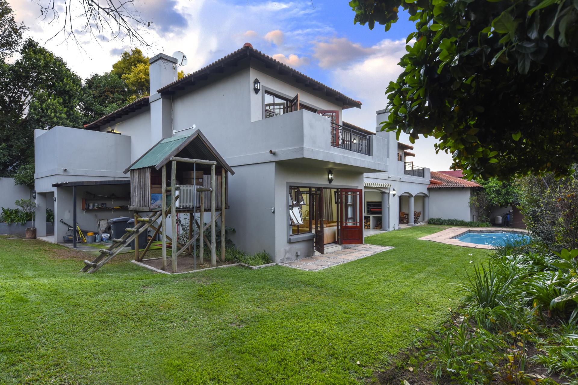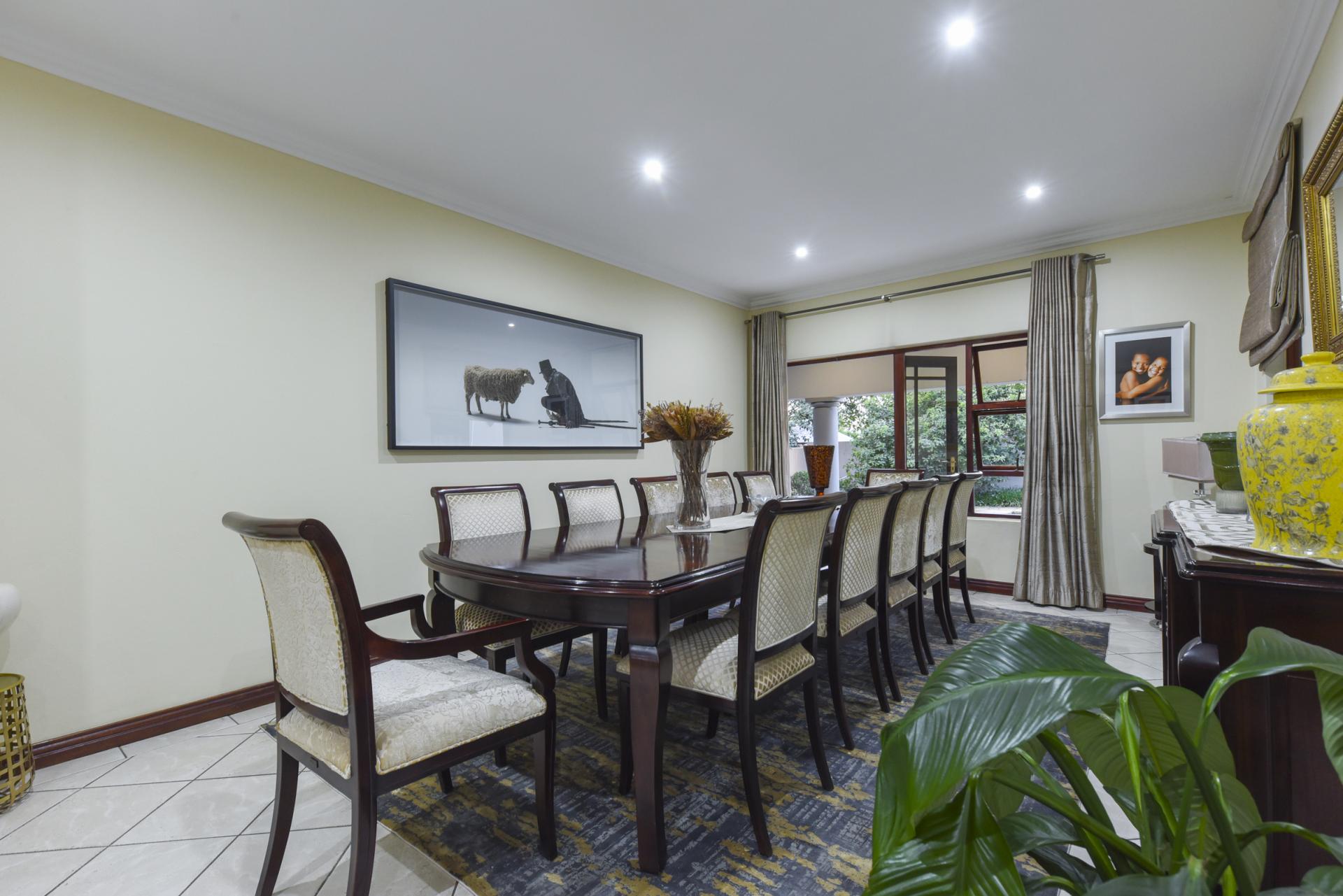 Additional features include a borehole with a full filtration system supplying water into the home, a full backup system, and a triple garage with ample storage.