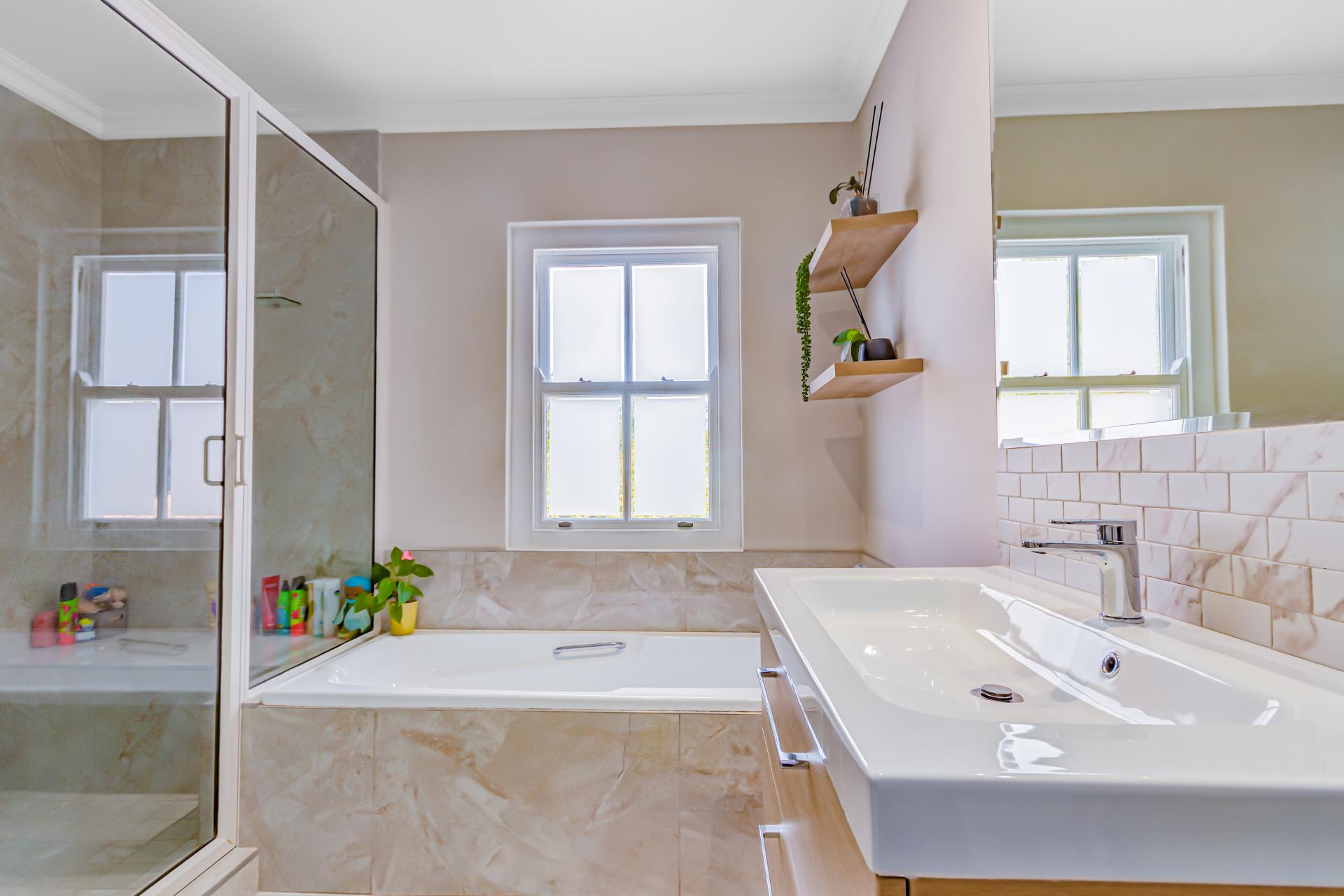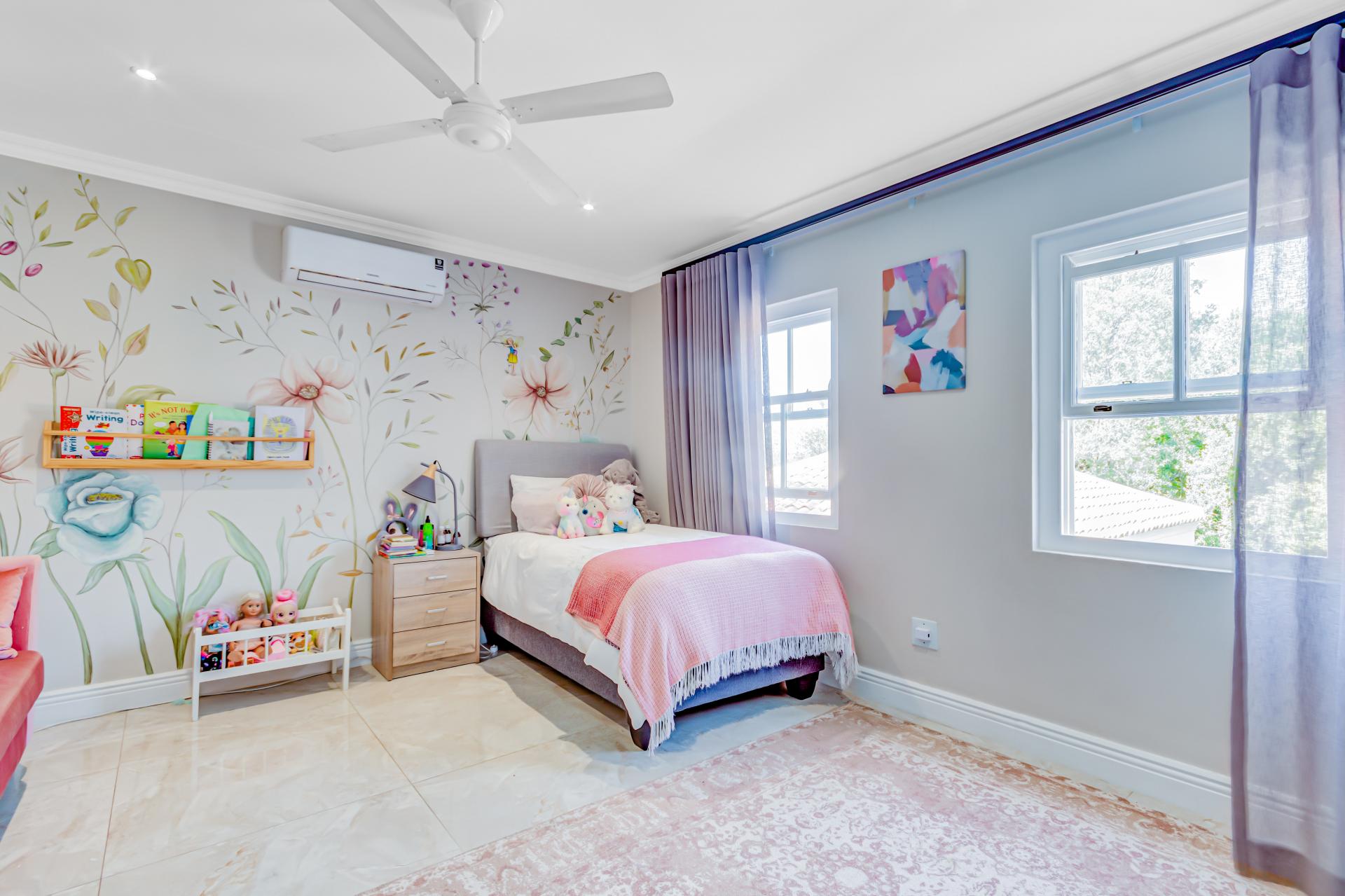 The lower level features a stunning guest suite with garden access and a luxurious en-suite bathroom, making it a perfect option for a master bedroom. A self-contained study provides multiple workstations and extensive bookshelf space, ideal for a home office. Additionally, a cozy kiddies' lounge or TV room is discreetly situated off the kitchen, offering a delightful retreat.
