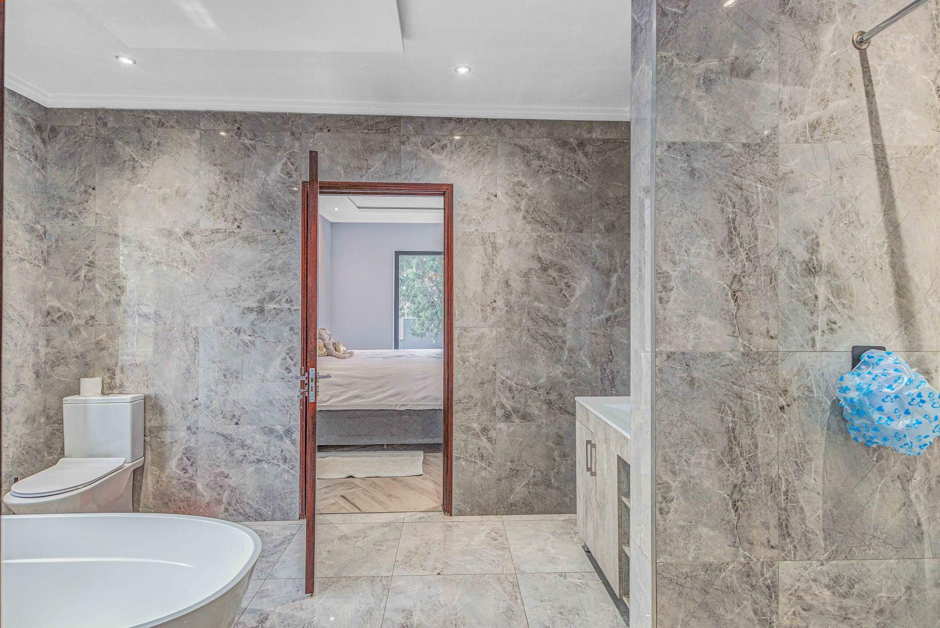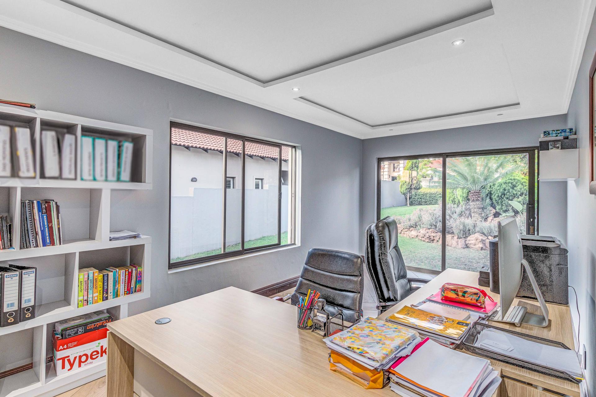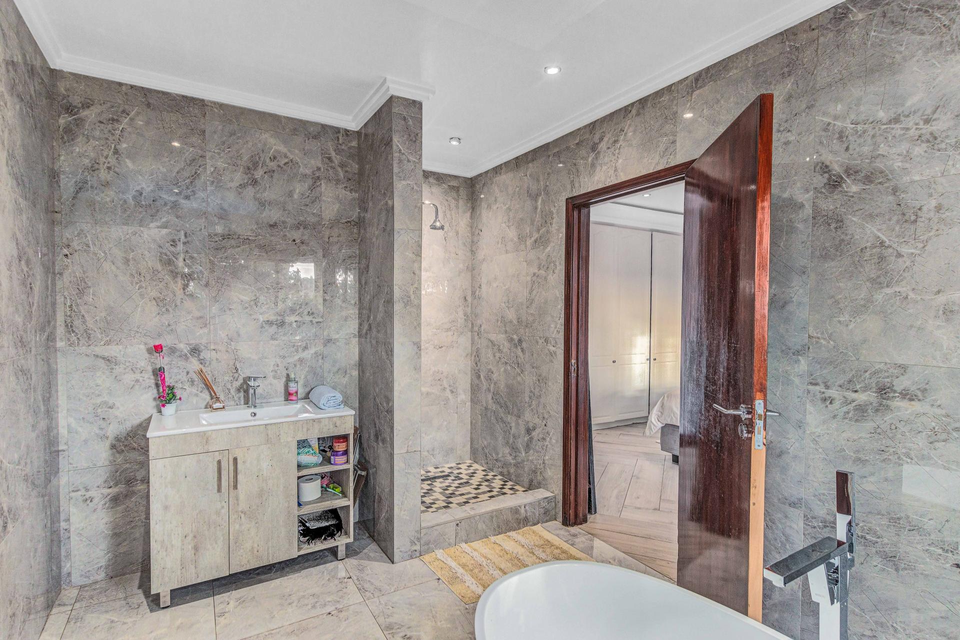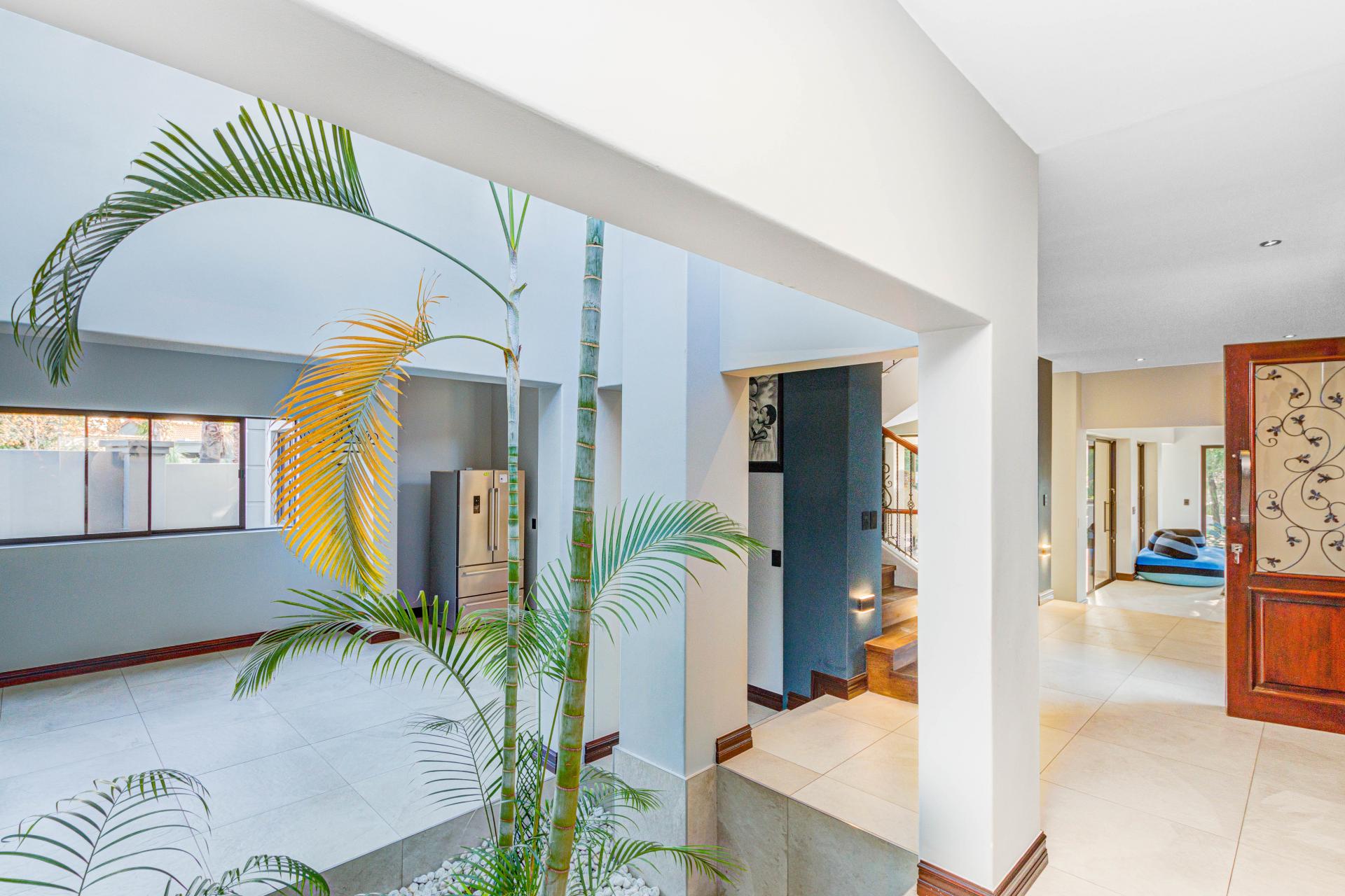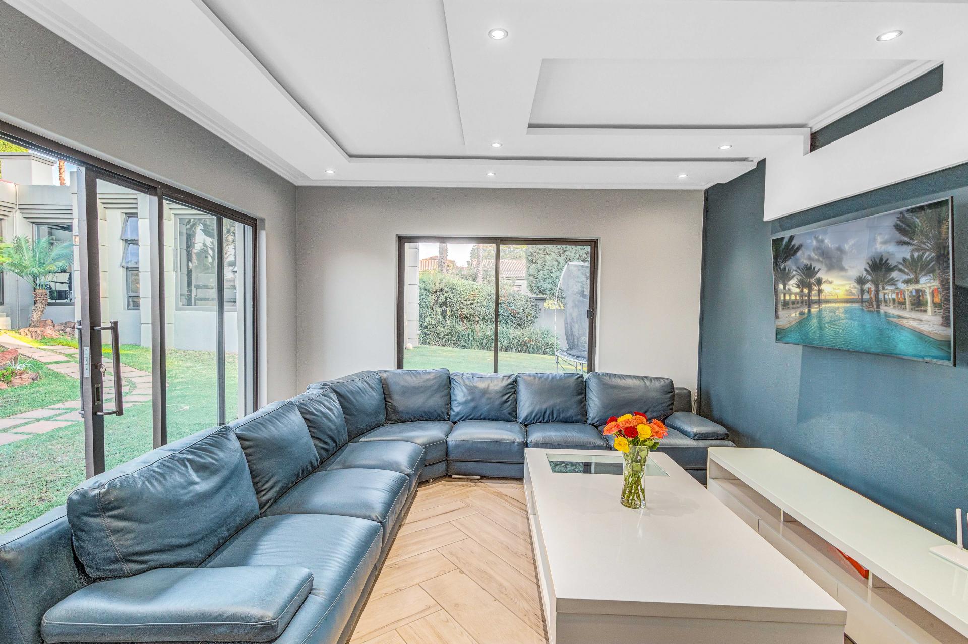 The standout main suite is a true sanctuary, offering panoramic views of Dainfern Ridge, a grand ensuite bathroom, a walk-in dressing room, and a private balcony, double staff accommodation, 3 car automated garage and backup power.