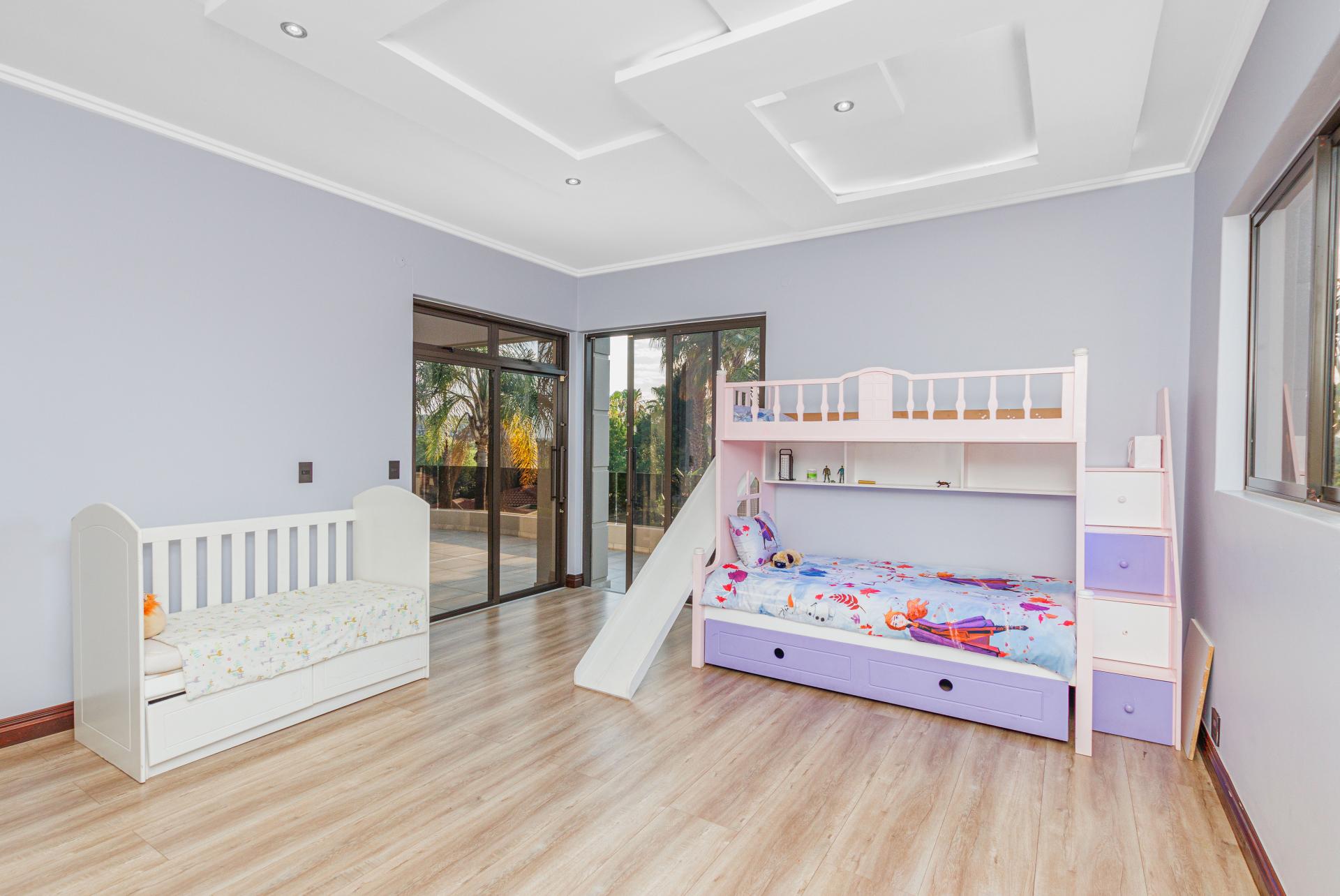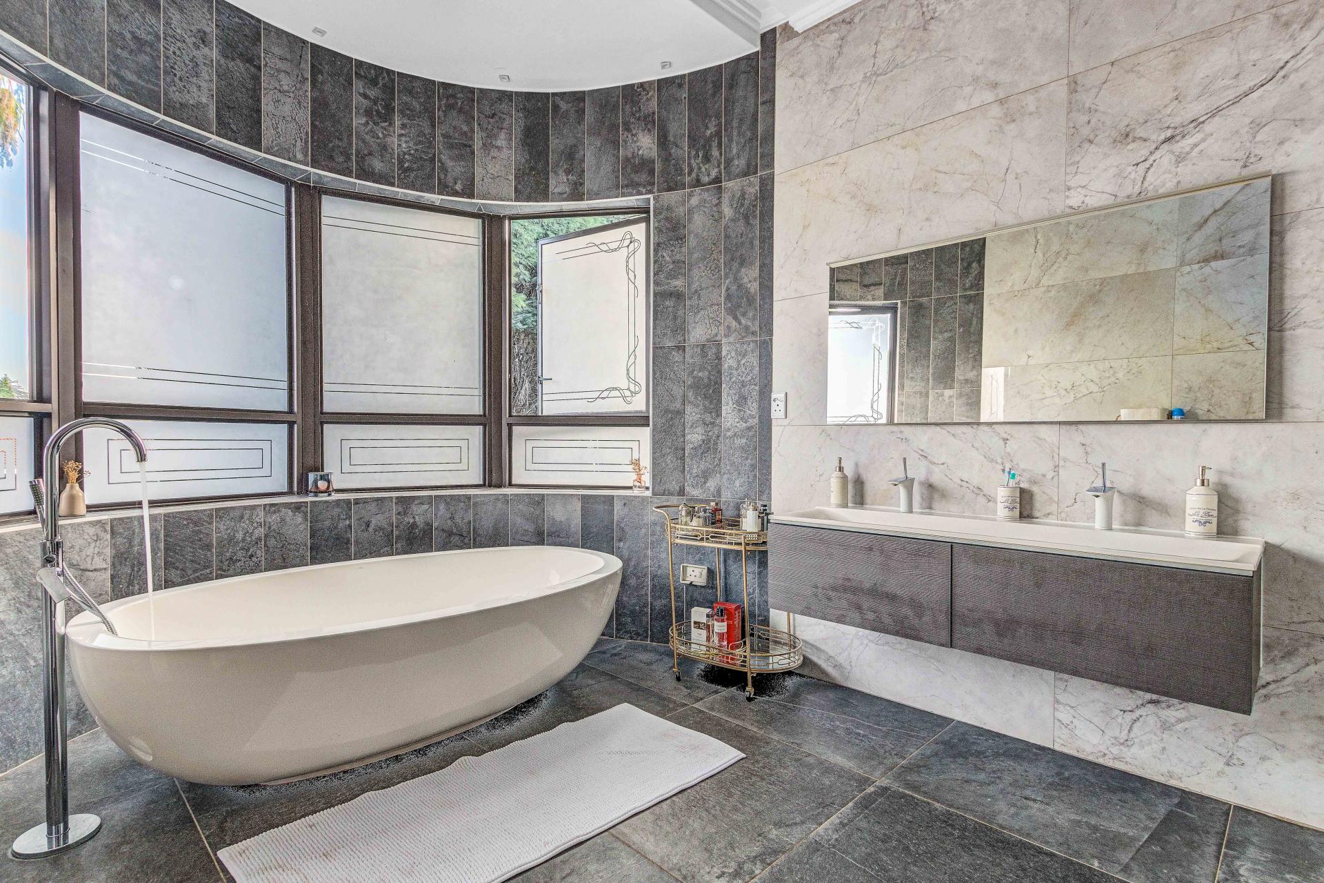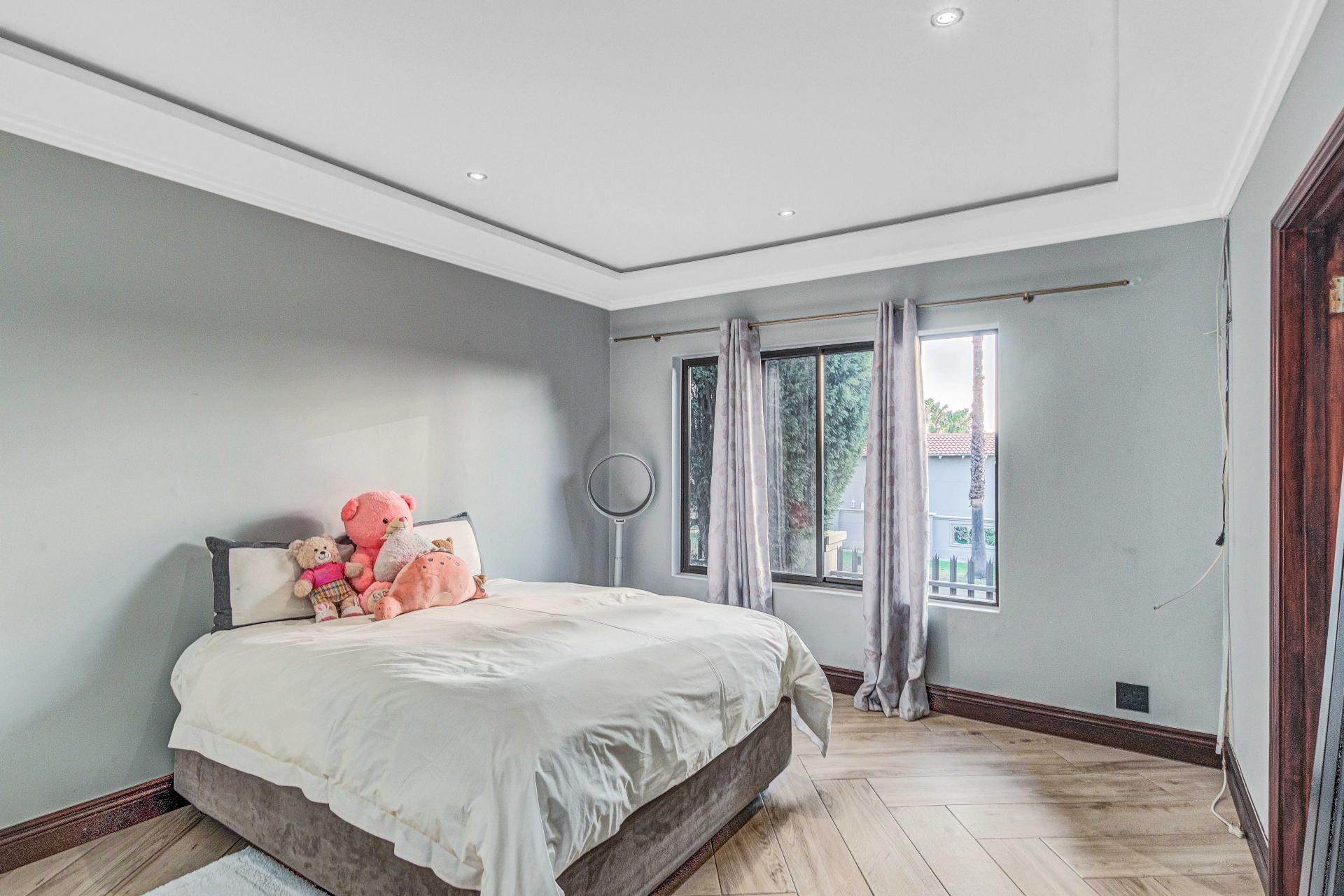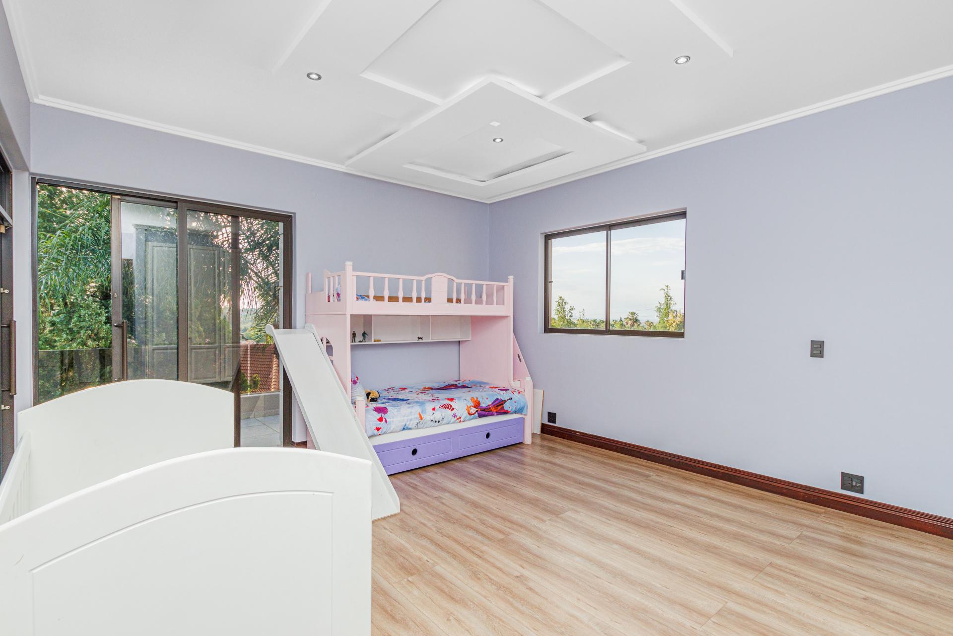 The standout main suite is a true sanctuary, offering panoramic views of Dainfern Ridge, a grand ensuite bathroom, a walk-in dressing room, and a private balcony, double staff accommodation, 3 car automated garage and backup power.